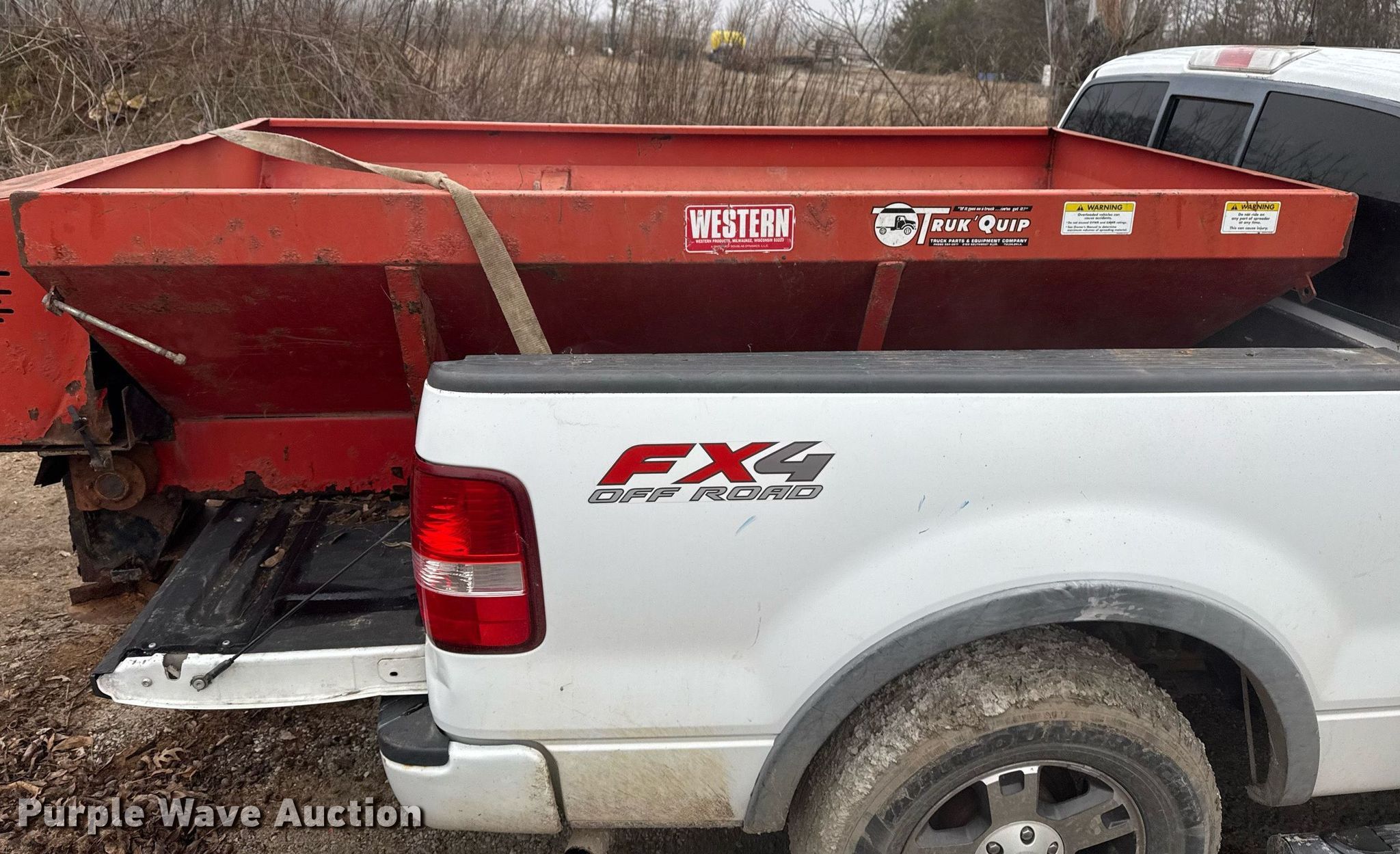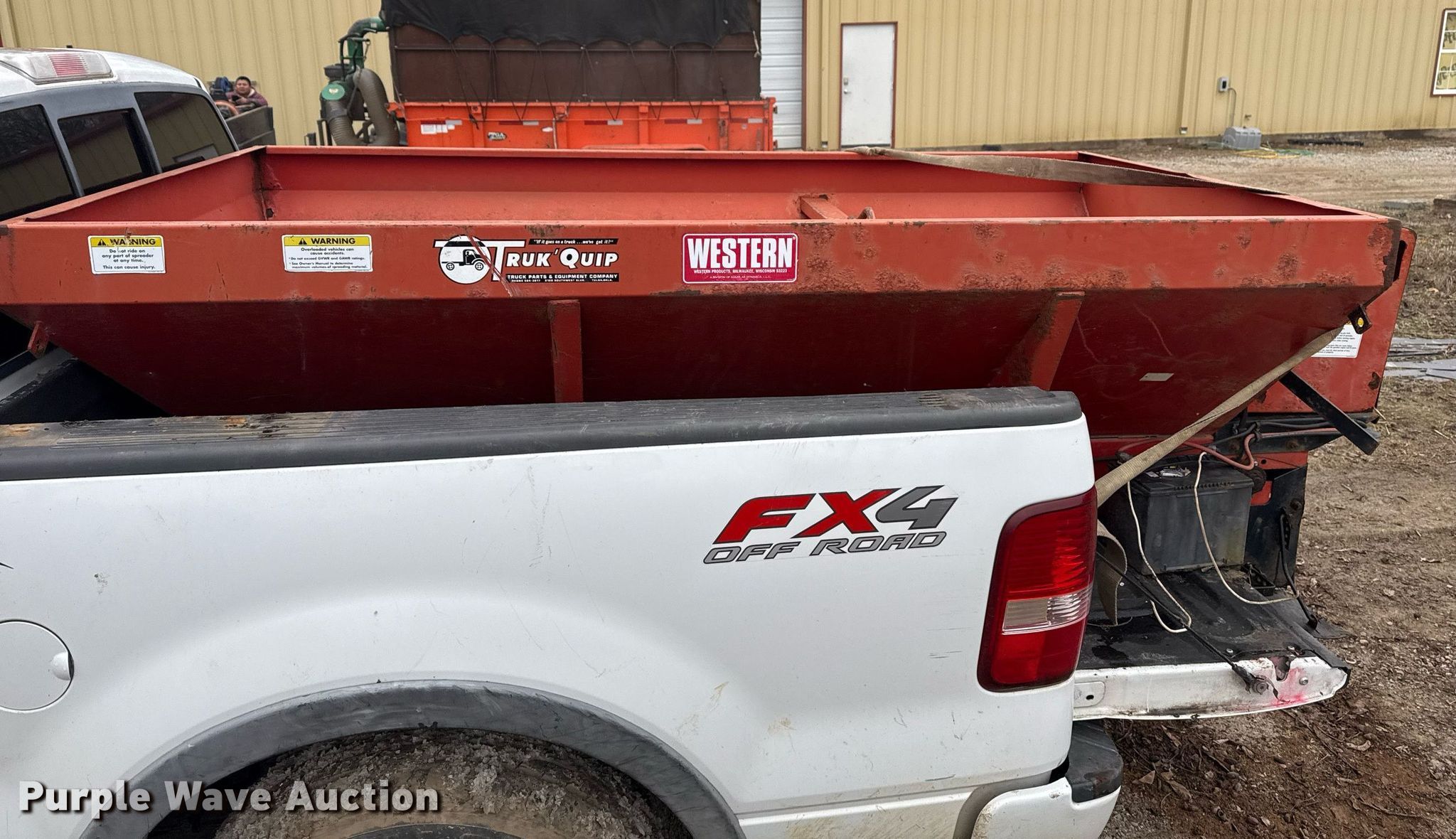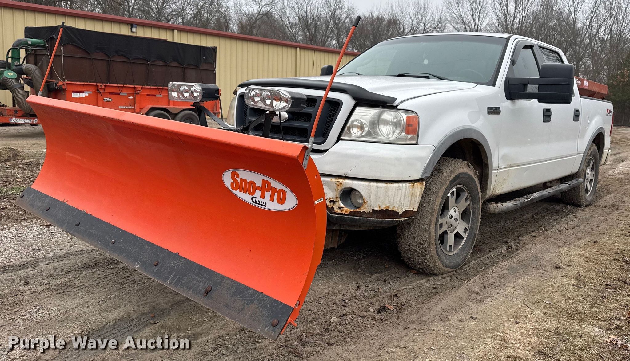 2008 Ford F150 SuperCrew pickup truck. Miles: 238,393 on odometer, VIN: 1FTPW14538FA17523. Engine Displacement: 5.4L V8, Cylinders: 8, Fuel type: Gas. Transmission Automatic, Four wheel drive. Interior AC, Power windows, Power locks, Cruise control. Features Snow plow Curtis Sno-Pro 3000, Width: 96", Spreader Western, Serial: 4344, Diameter: 8' L x 50" W, Cylinders: 1, Fuel type: Gas. Tires Size: LT275/70R18. Notes Windshield chipped or cracked, Exhaust issue, possible leak. Oklahoma title. Title distribution may be delayed up to 14 days from verification of funds. Dreamscapes Of Tulsa. Bixby, OK 74008