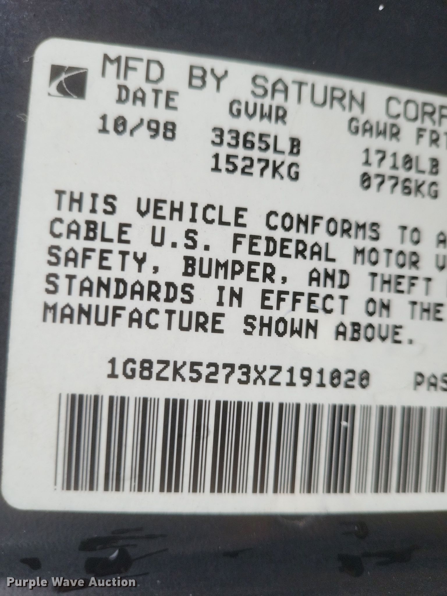 Purple Wave is selling a used Passenger Vehicle in Missouri. This item is a 1999 Saturn SL with the following: Miles: 144,411 on odometer, VIN: 1G8ZK5273XZ191020
