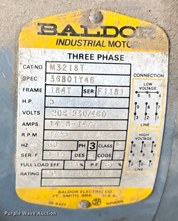 Hotsy Tub parts washer. Hours: 1,036 on meter. Electric Motor Blamdpr M3218T, HP: 5, Volts: 208-230/460, Phase: Three. Features Water heater. Notes Unknown operating condition unit, Detergent included. Rite Environmental, Inc.. Waterloo, IA 50703