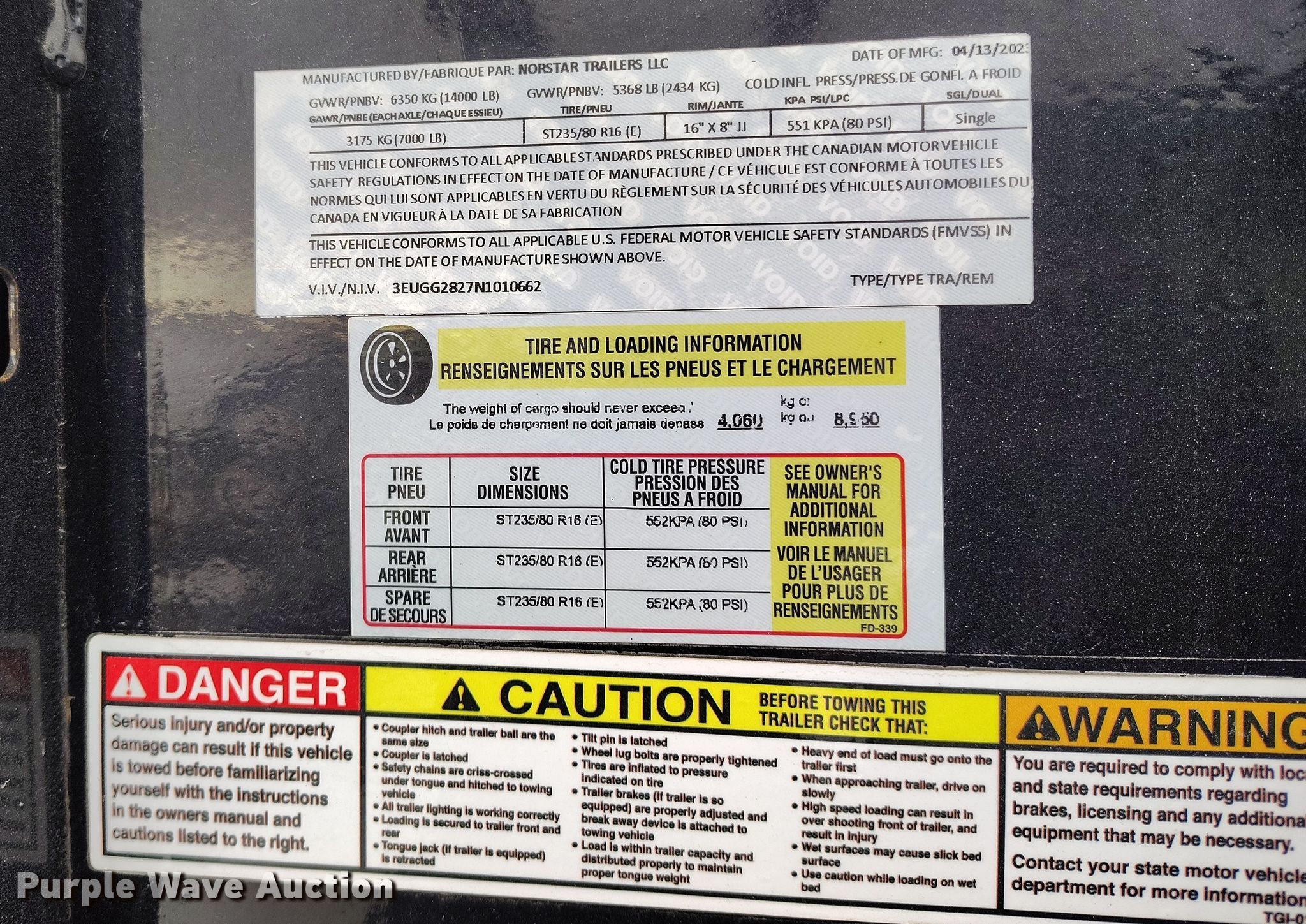 Purple Wave is selling a used Equip. Trailer in Colorado. This item is a 2022 Norstar Iron Bull equipment trailer with the following: VIN: 3EUGG2827N1010662