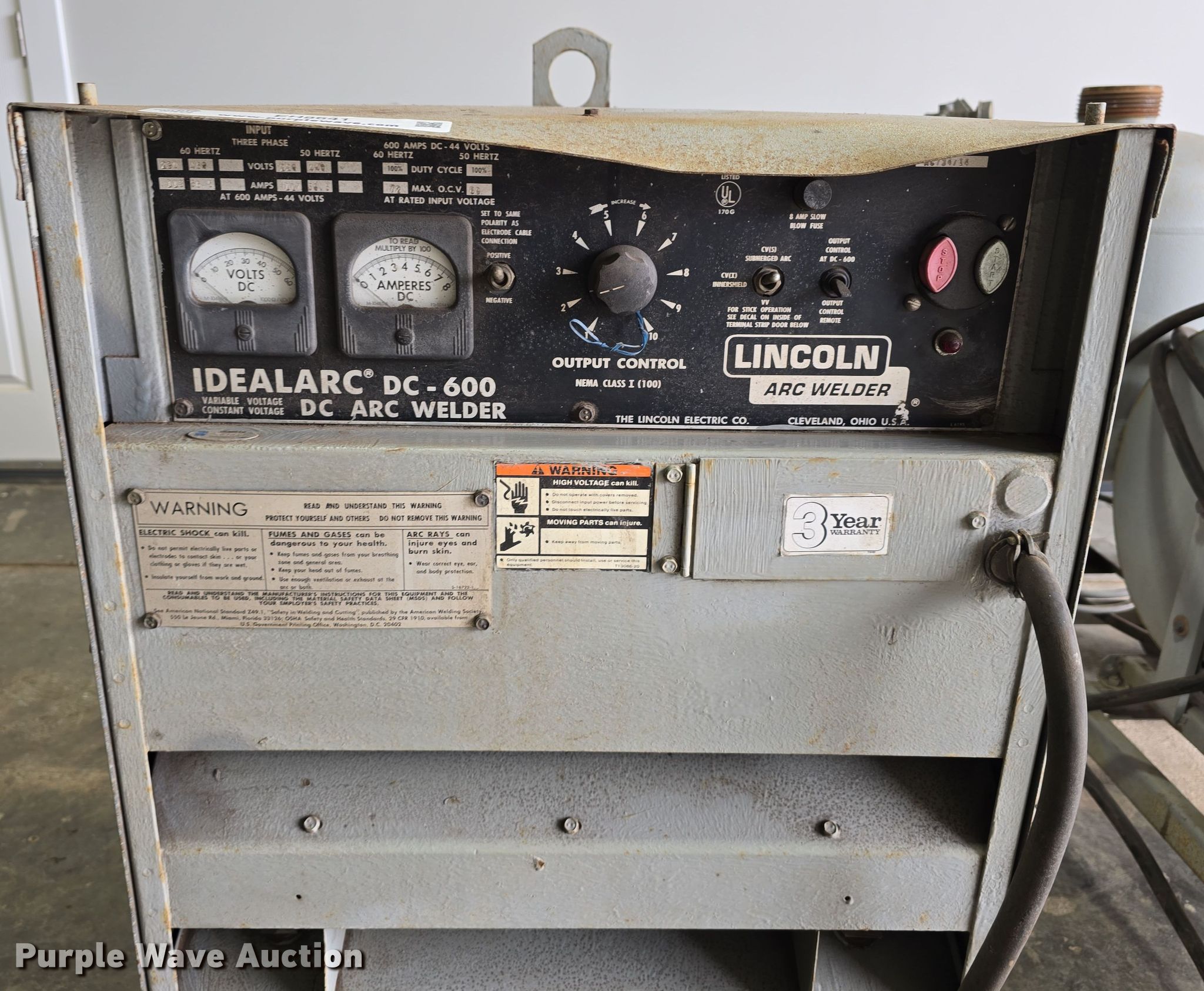 Purple Wave is selling a used Welder (Manual) in Nebraska. This item is a 1974 Lincoln Idealarc DC-600 welder with the following: Serial: AC734714