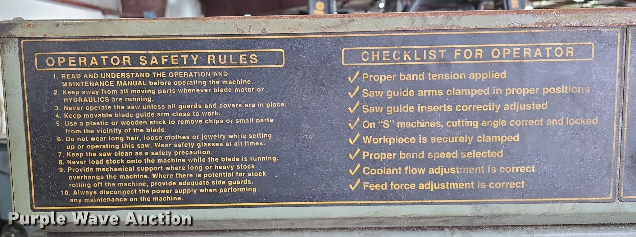 Purple Wave is selling a used Metal Cutting Saw in Nebraska. This item is a Hyd-Mech Engineering S-20A Series II metal cutting saw with the following: Serial: 80700934