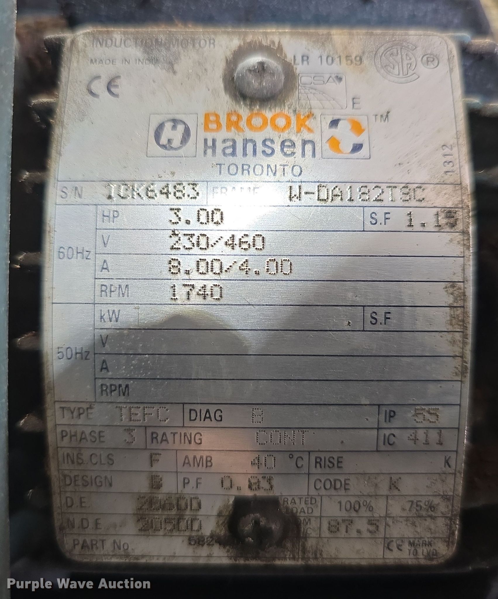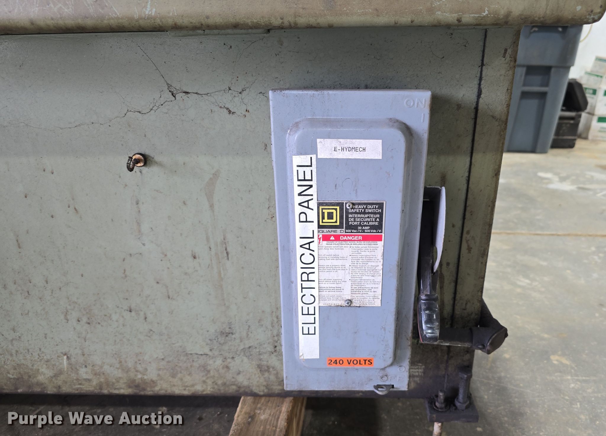 Hyd-Mech Engineering S-20A Series II metal cutting saw. Serial: 80700934. Electric Motor Brook Hansen W-DA182TSC Serial: ICK6483, HP: 3, Volts: 230/460, Phase: Three. Features 9' 6" L x 78" W x 62" H, Cutting width: 20". Notes Unknown operating condition. Midwest Machinery Co.. Omaha, NE 68122