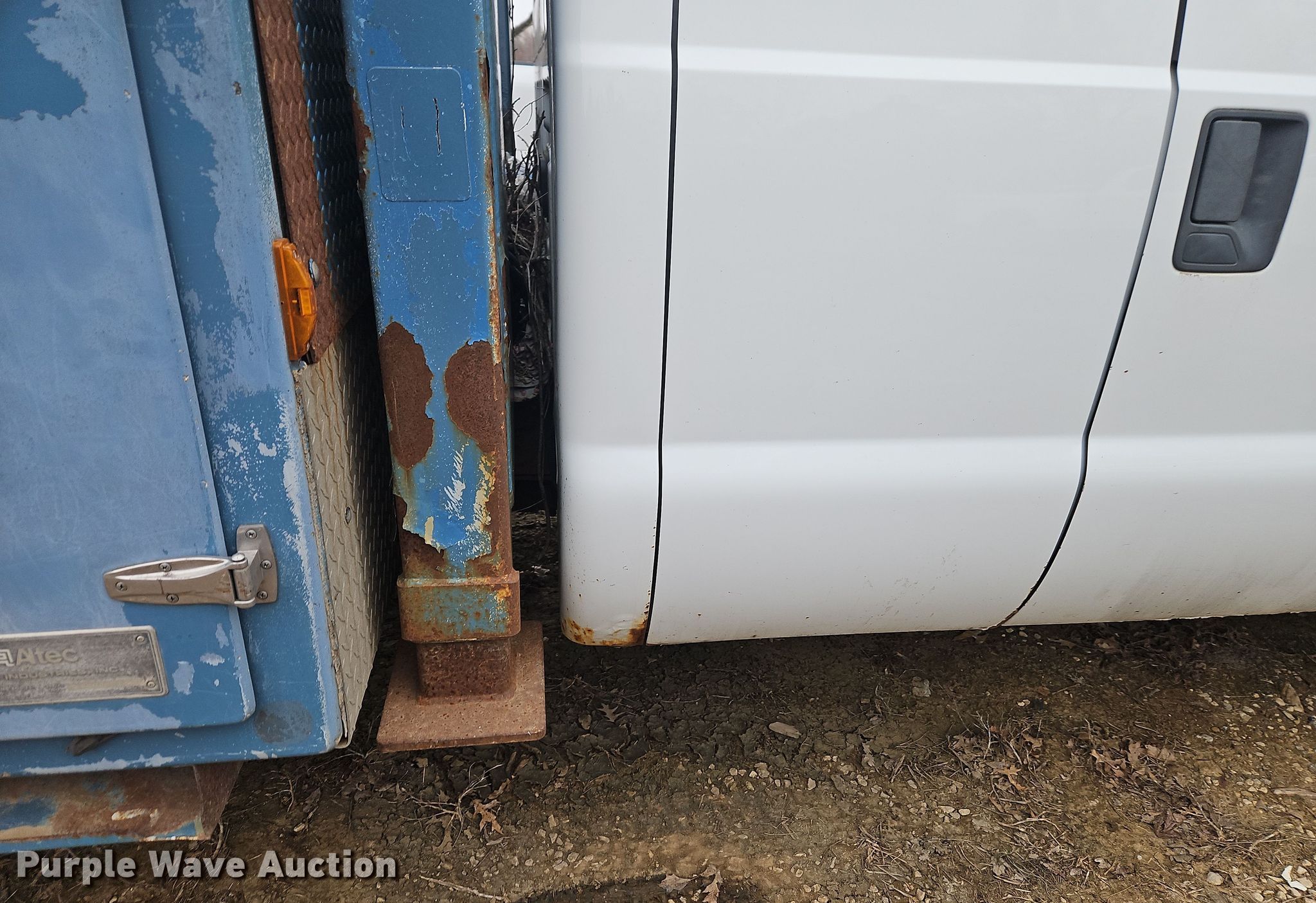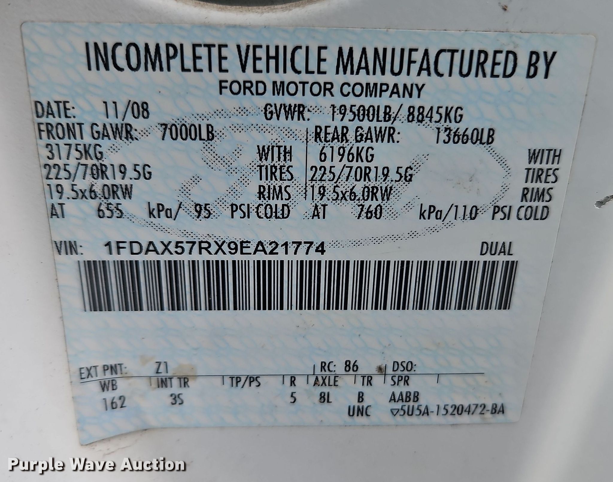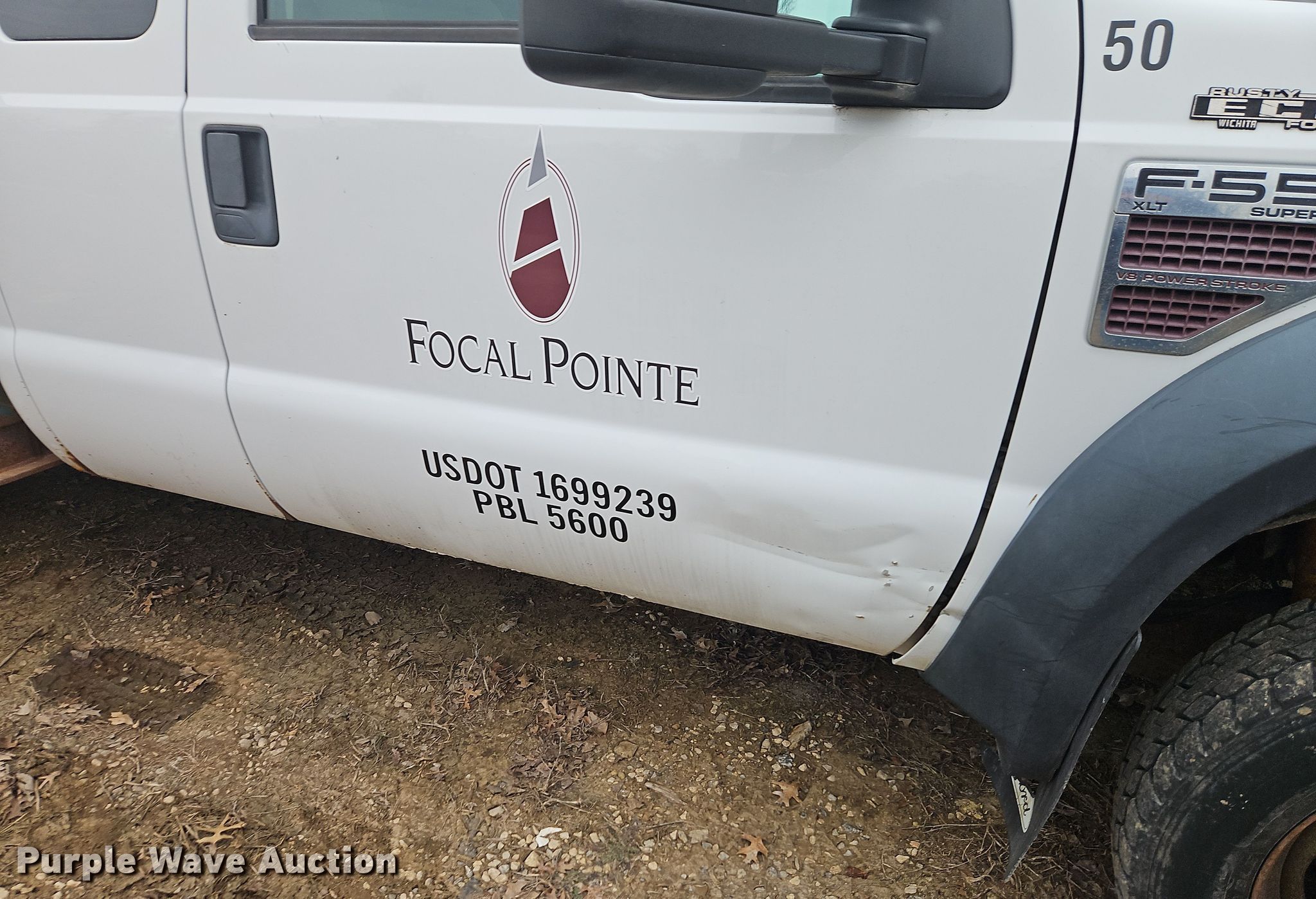 2009 Ford F550 Super Duty XLT bucket truck. Miles: 231,719 on odometer, Hours: 10,160 on meter, VIN: 1FDAX57RX9EA21774, Unit #: 50. Engine Displacement: 6.4L V8 OHV, Cylinders: 8, Fuel type: Diesel. Transmission Automatic. Chassis Four wheel drive, Suspension: Spring, Brakes: Hydraulic, PTO, Wet kit, GVWR: 19,500 lbs, Wheelbase: 162". Interior AC, Heat, Heated mirrors, Power windows, Power locks, Cruise control, Auxiliary controls, Brake controller. Features Bed Altec, Serial: 37-72699, 11' 6" L x 96" W, Boom Altec AT37-G, Serial: 0301DE2149, Maximum lift capacity: 300 lbs, Maximum lift height: 37.5', Boom type: Insulated, Telescopic, Man basket, Boom controls Ground, Platform/ basket.. Tires Size: 225/70R19.5. Notes Hail damage, Dead battery. Kansas title. Title distribution may be delayed up to 14 days from verification of funds. Focal Pointe. Stilwell, KS 66085