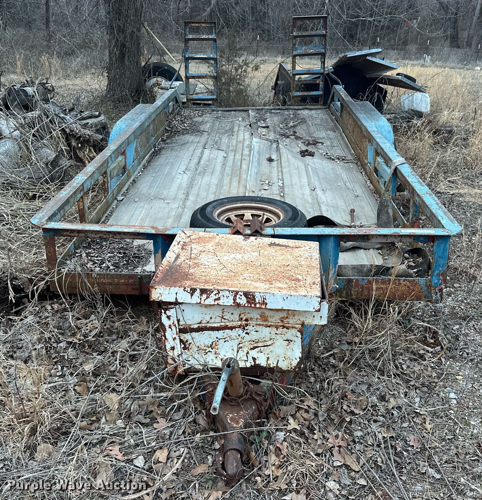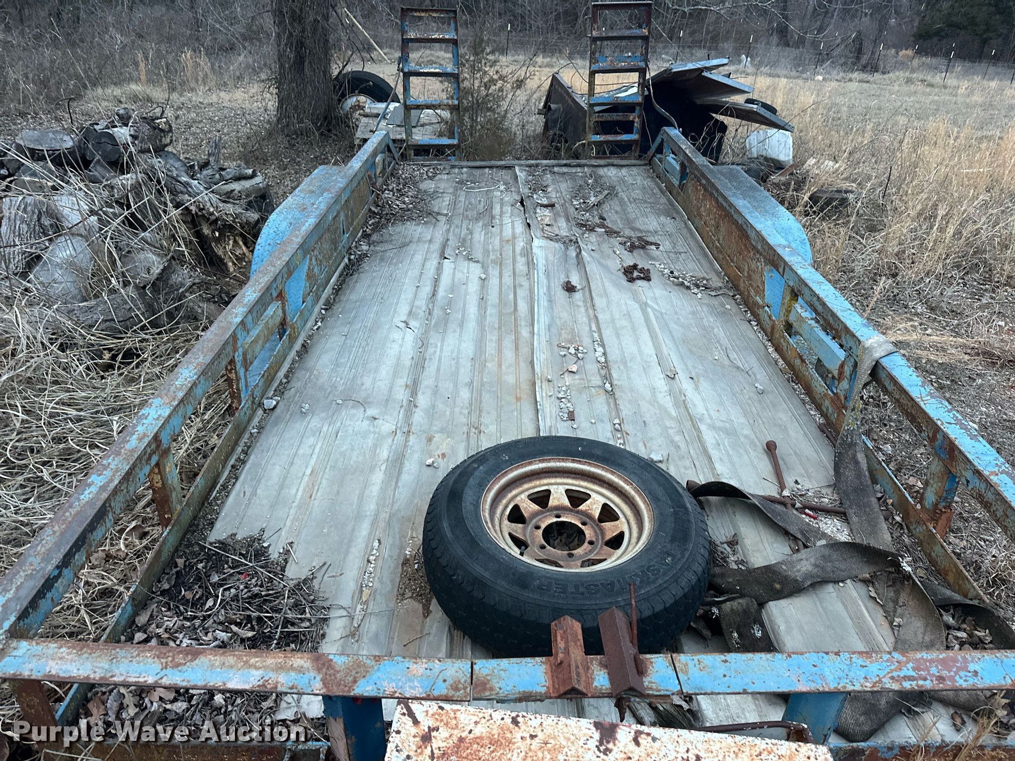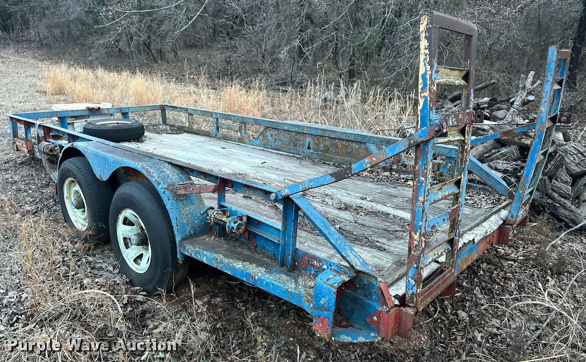 Purple Wave is selling a used Car or Utility Trailer in Oklahoma. This item is a Shop built utility trailer with the following: Overall: 19' 6" L x 96" W, Deck: 16' L x 76" W, Side height: 14", Ramps: Manual, Length: 44"