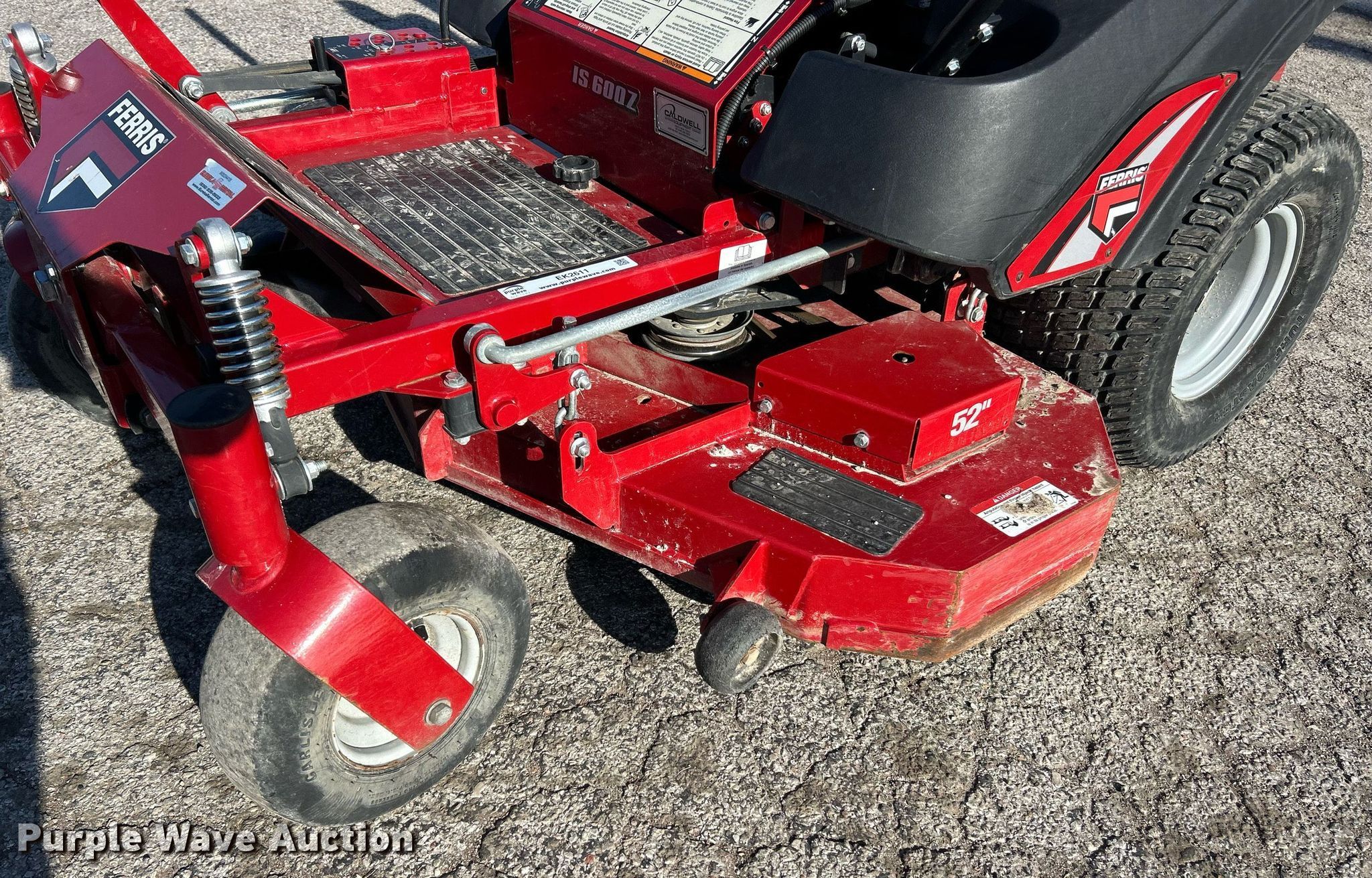 Purple Wave is selling a used Lawn Mower in Missouri. This item is a Ferris IS600Z ZTR lawn mower with the following: Hours: 180 on meter, Cutting width: 52", Serial: 2018021395