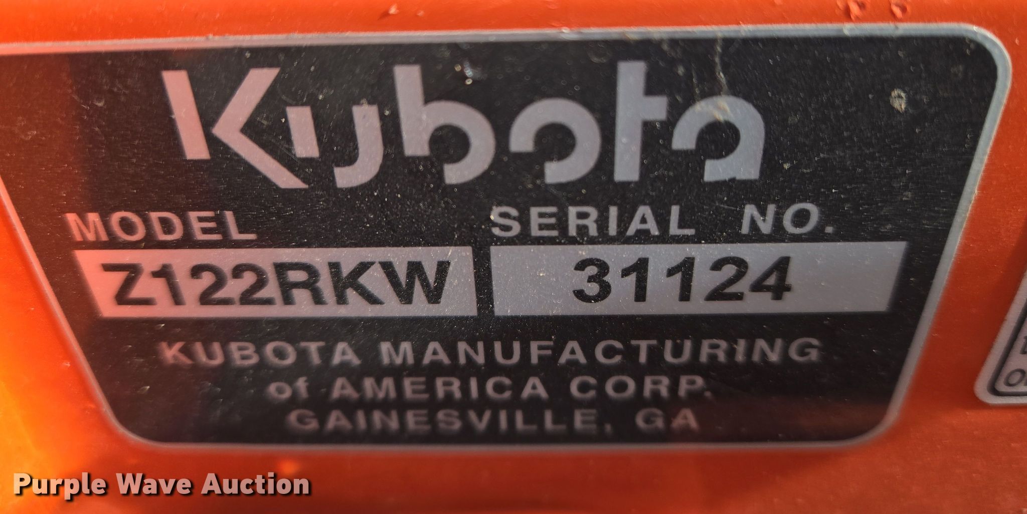Purple Wave is selling a used Lawn Mower in Kansas. This item is a Kubota Kommander Z122R ZTR lawn mower with the following: Hours: 52 on meter, Cutting width: 42", Serial: 31124