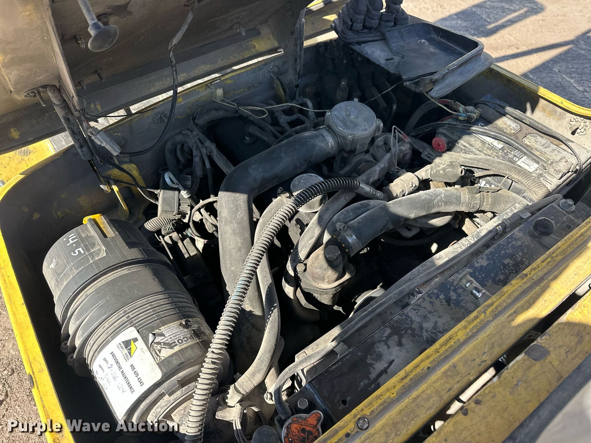 2004 Hyster H60XM forklift. Hours: 3,226 on meter, Serial: H177B54245B, Unit #: F003. Engine Cylinders: 4, Fuel type: LPG LP bottle: Not included. Transmission Powershift. Operators station Canopy. Features Maximum lift capacity: 5,350 lbs, Maximum lift height: 193", Mast stages: 3, Side shift, Mast tilt, Fork length: 47". Tires Front: 28X9-15, Rear: 6.50-10, Solid. Mill Creek lumber & Supply. Oklahoma City, OK 73108