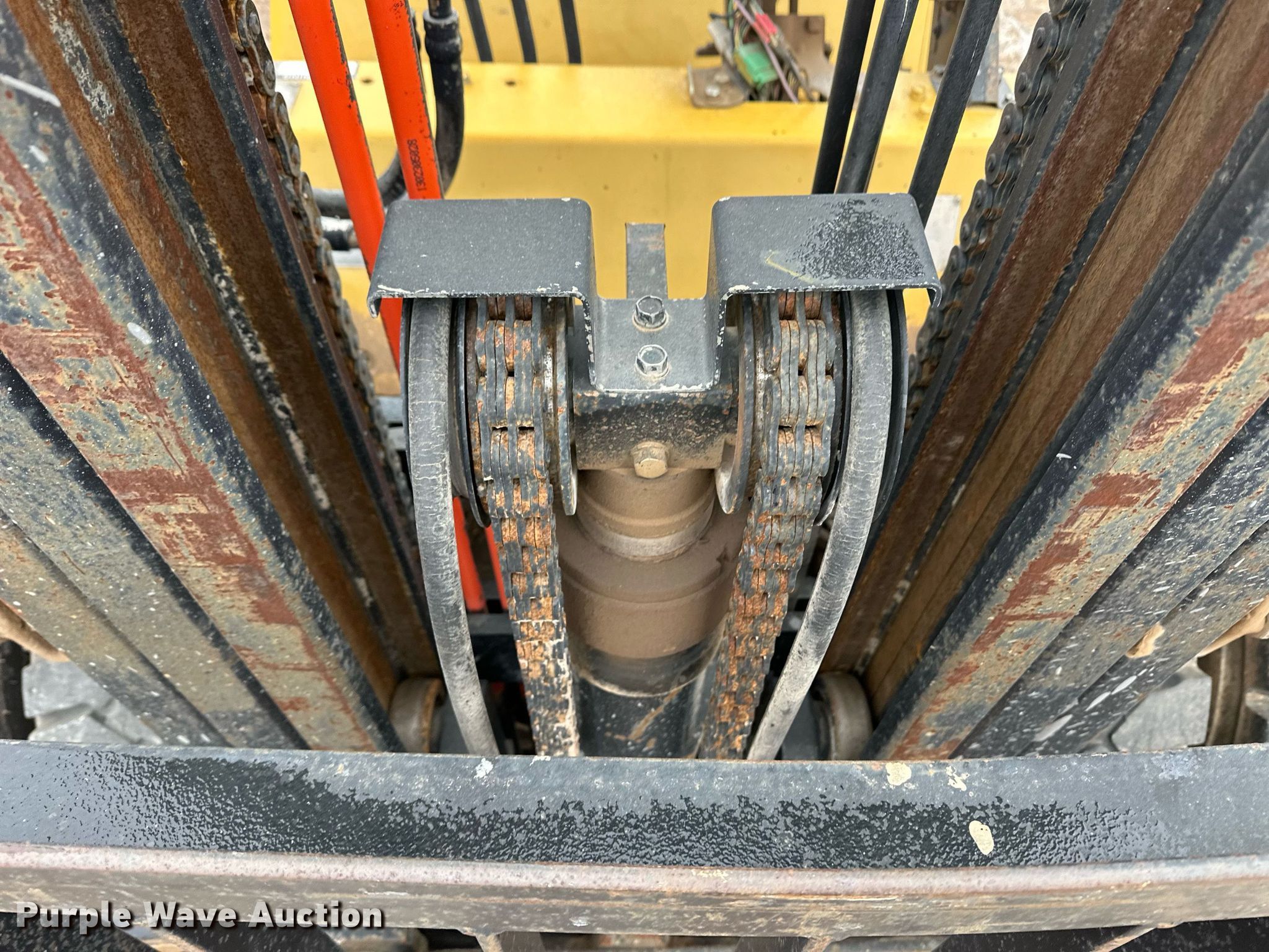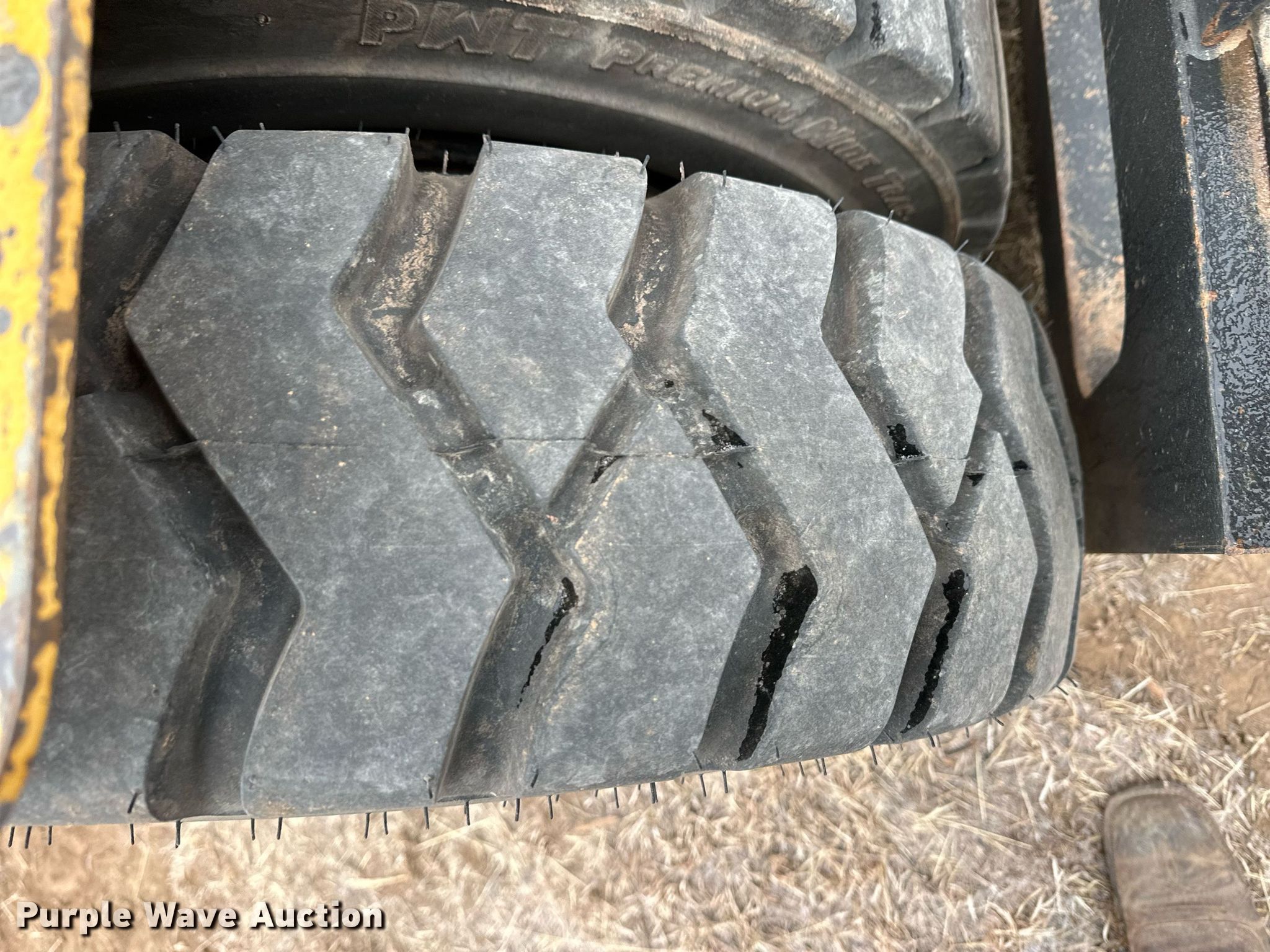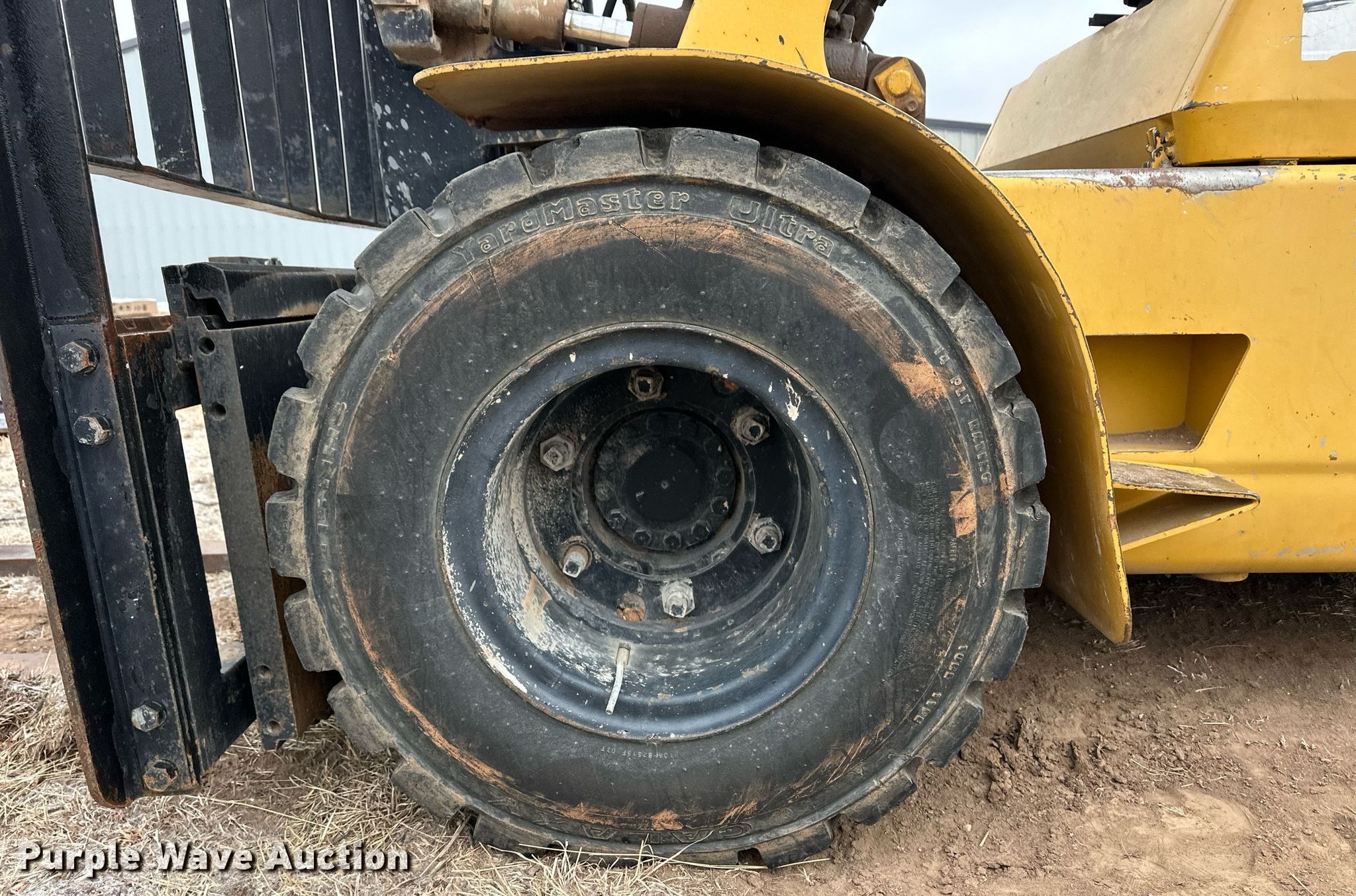 2000 Caterpillar GPL40 forklift. Hours: 9,147 on meter, Serial: AT29A-00141. Engine Cylinders: 6, Fuel type: LPG LP bottle: Included. Transmission Powershift. Operators station Canopy. Features Maximum lift capacity: 9,000 lbs, Maximum lift height: 187", Mast stages: 3, Side shift, Mast tilt, Fork length: 71". Tires Front: 8.25-15, Rear: 7.00-12. Pristine Roofing & Construction. Bushland, TX 79012