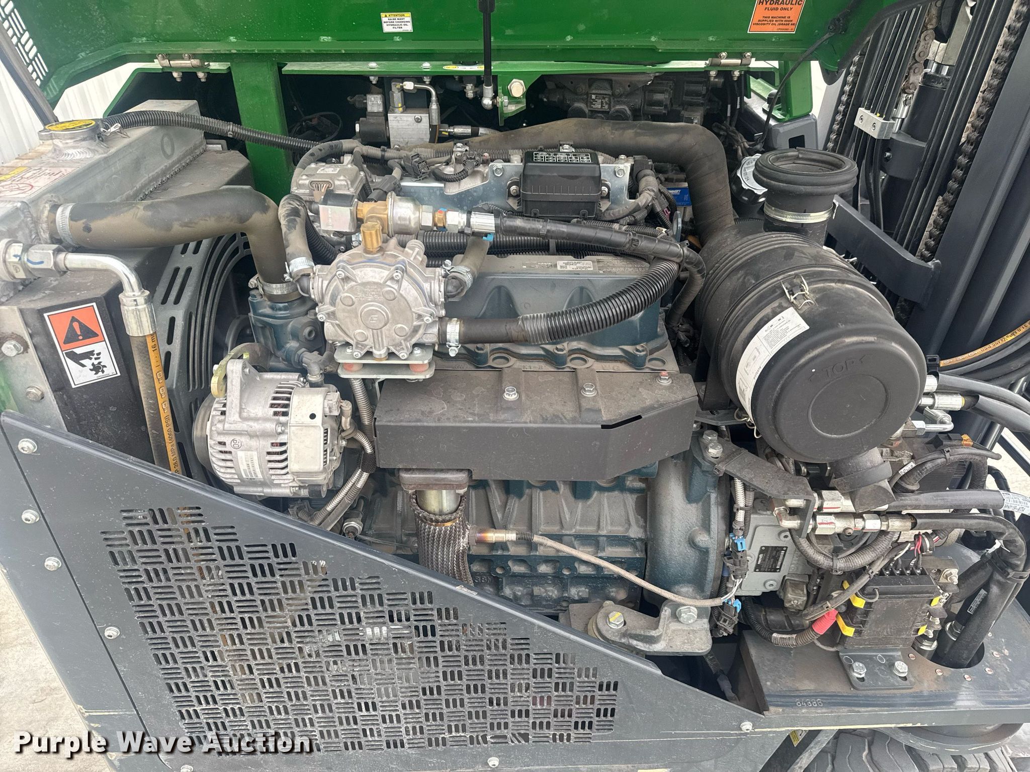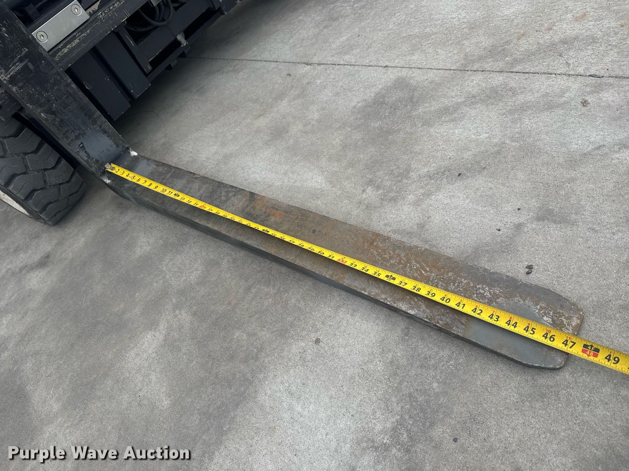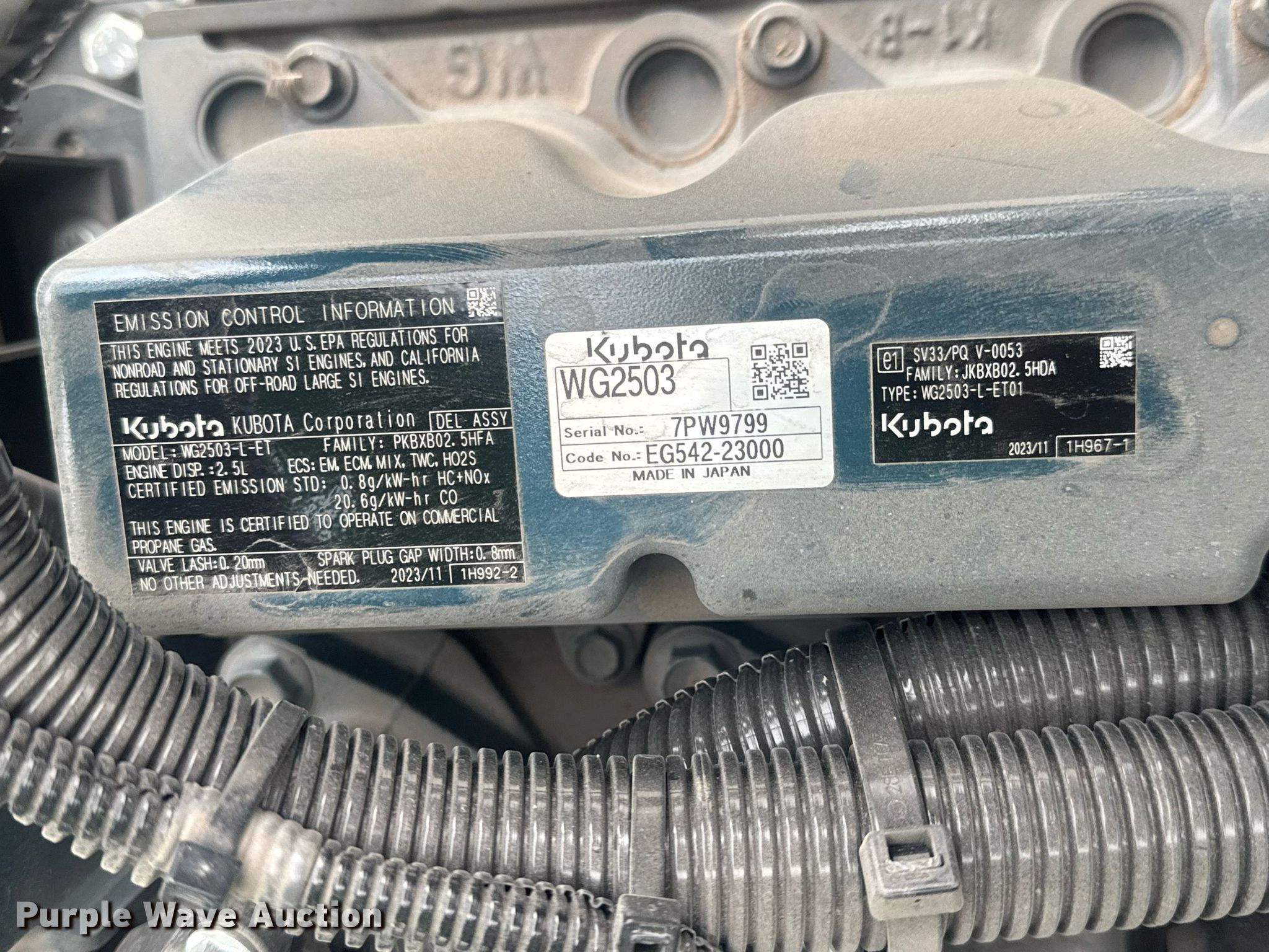 2024 Combilift CB6000 multi-directional forklift. Hours: 223 on meter, Serial: 84886. Engine Kubota WG2503, Serial: 7PW9799, Displacement: 2.5L, Cylinders: 4, Fuel type: LPG LP bottle: Not included. Transmission Hydrostatic. Operators station Canopy. Features Maximum lift capacity: 6,000 lbs, Maximum lift height: 193", Mast stages: 3, Side shift, Mast tilt, Fork length: 47". Tires Front: 16x7x10.5, Rear: 22x10x16, Solid. TL Steel LLC. Burrton, KS 67020