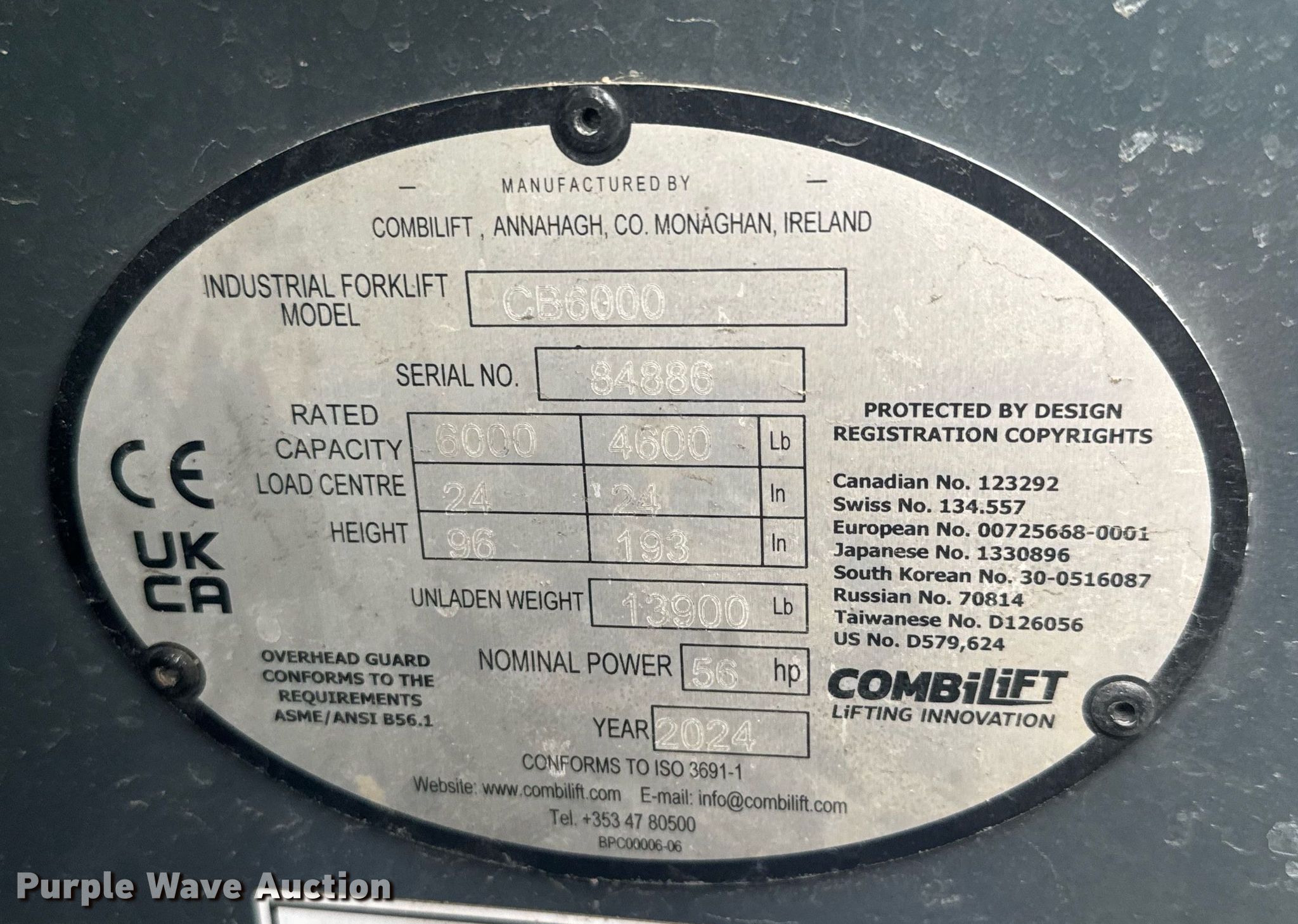 Purple Wave is selling a used Warehouse Forklift in Kansas. This item is a 2024 Combilift CB6000 multi-directional forklift with the following: Hours: 223 on meter, Serial: 84886