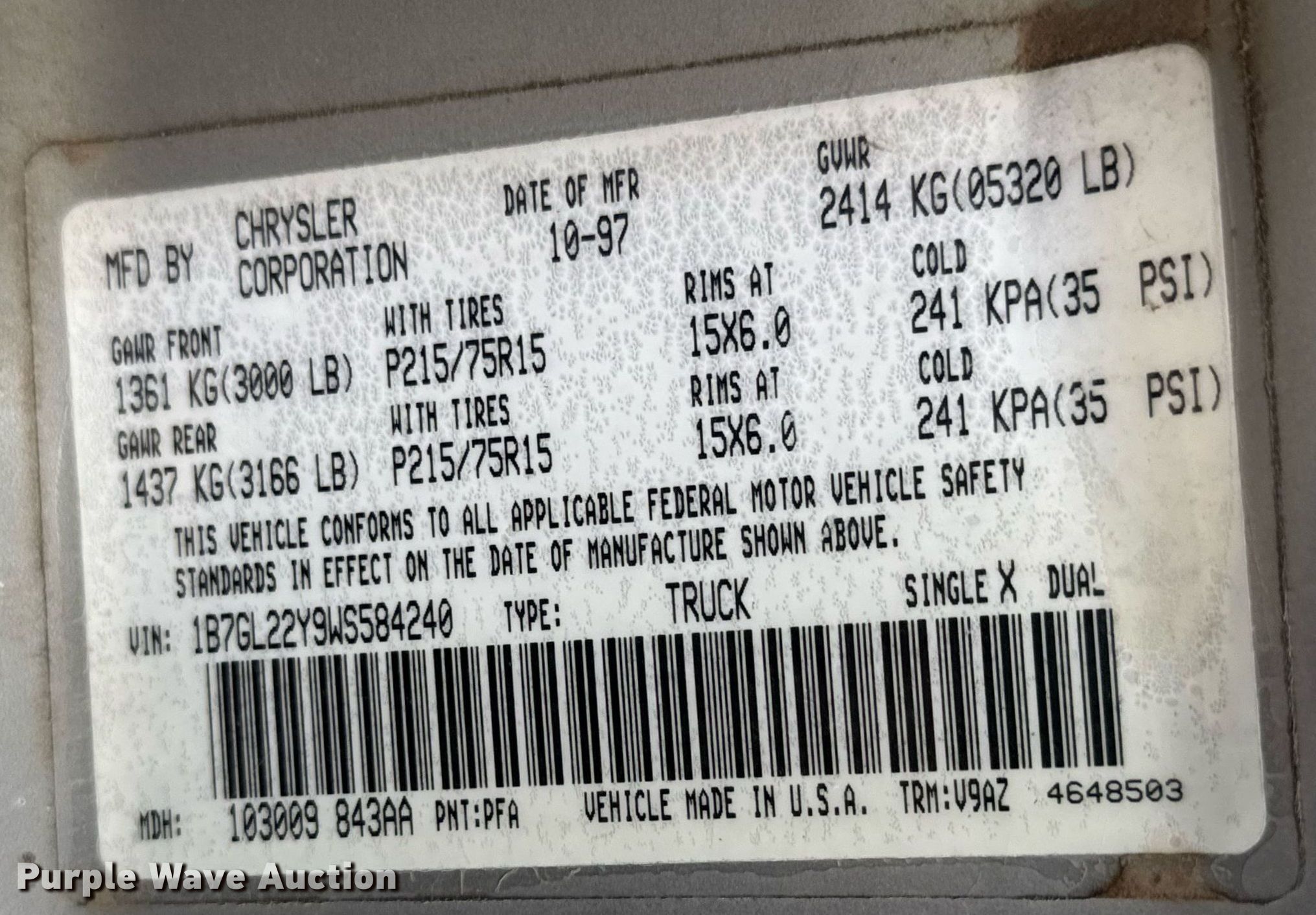 Purple Wave is selling a used Compact Pickup or Van in Kansas. This item is a 1998 Dodge Dakota SLT Club Cab pickup truck with the following: Miles: 172,636 on odometer, VIN: 1B7GL22Y9WS584240