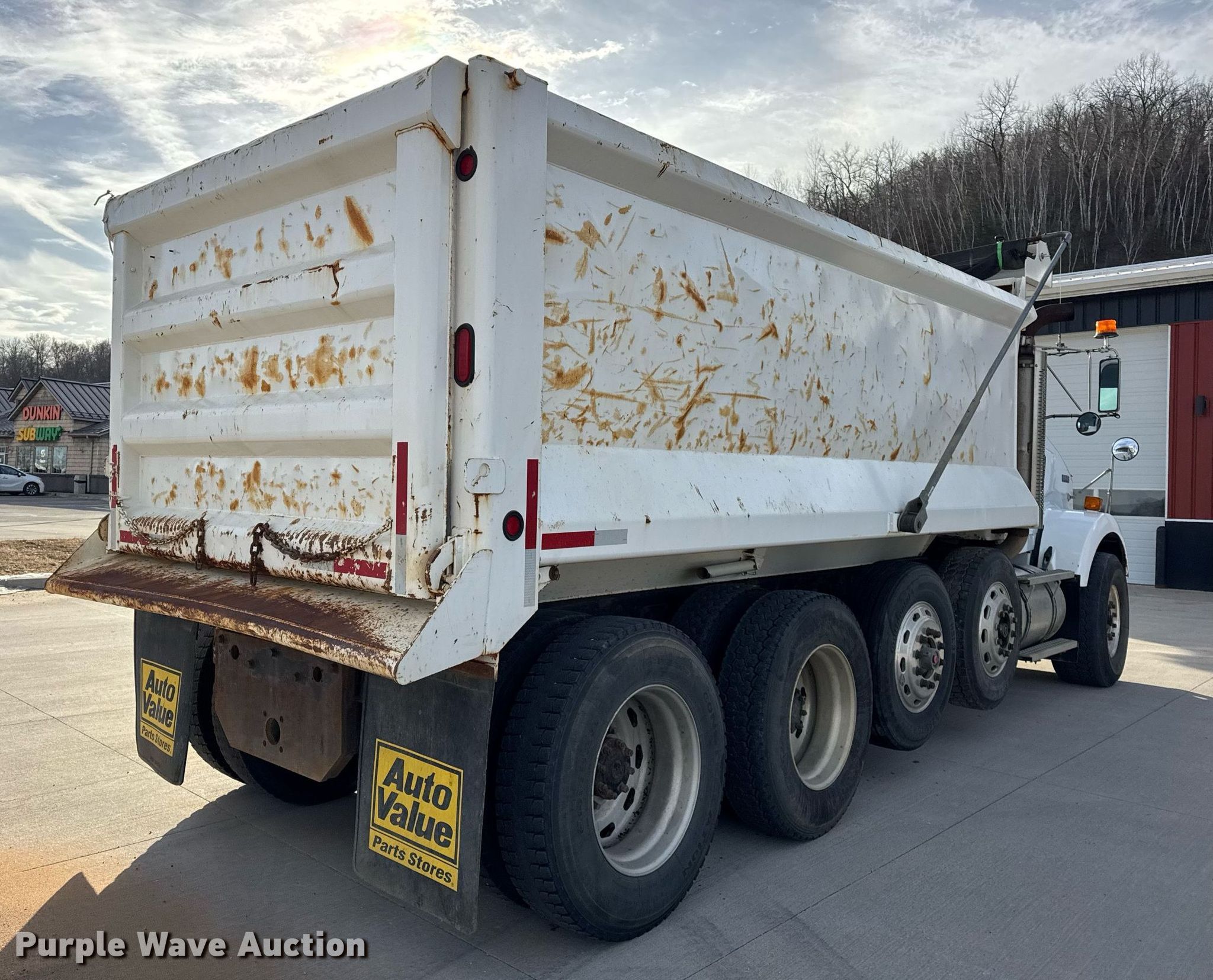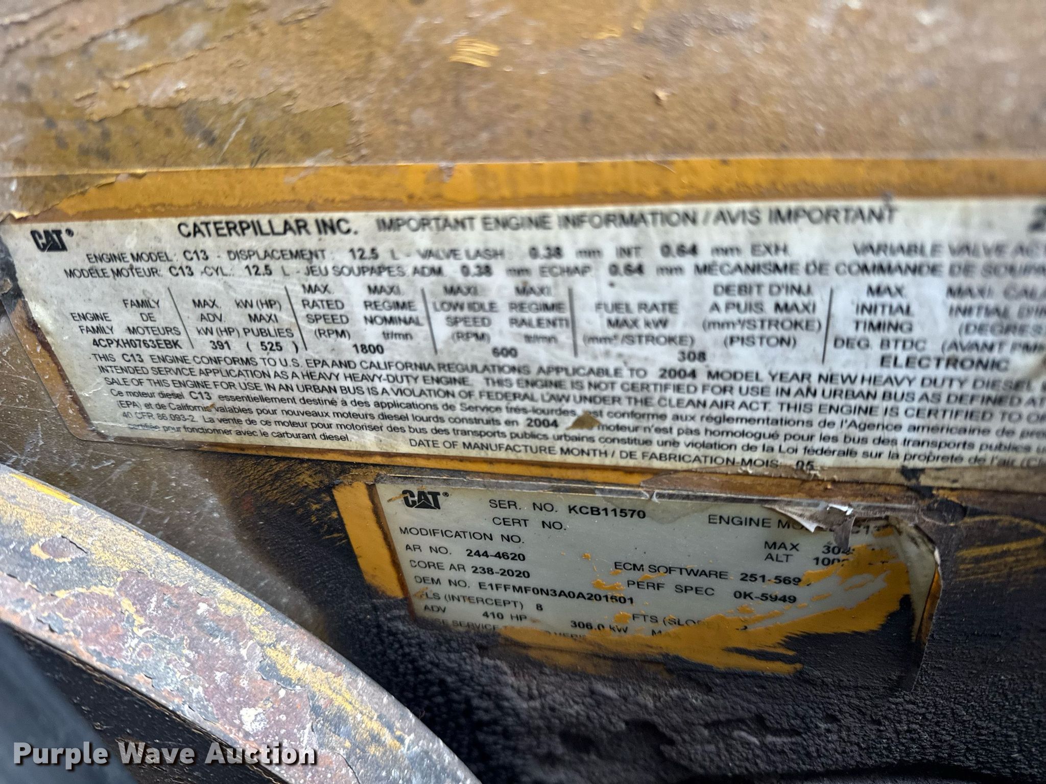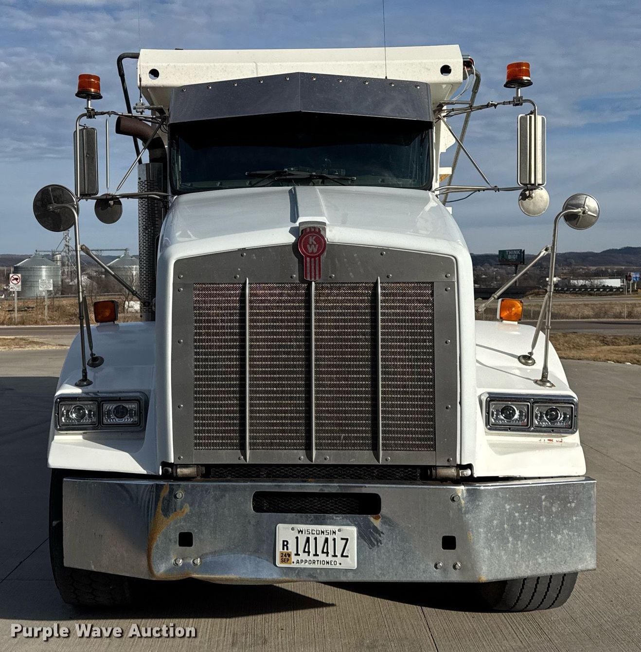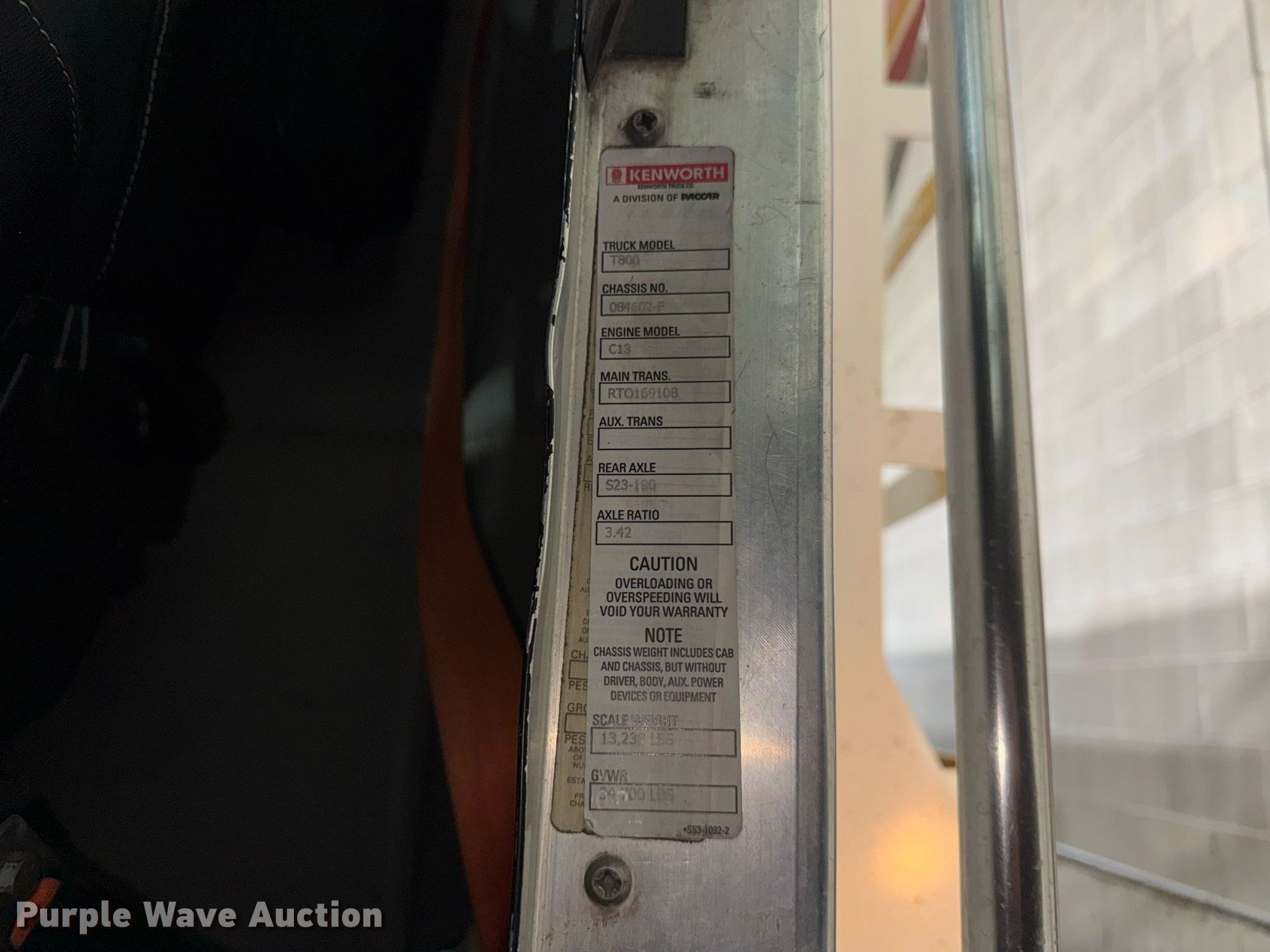 2005 Kenworth T800 dump truck. Miles: 369,322 on odometer, VIN: 3WKDAU8X45F084602. Engine Caterpillar C13, Displacement: 12.0L, Fuel type: Diesel, Engine brake. Transmission Eaton Fuller, Automated manual. Chassis Double frame, Axles: 4, Pusher axle, Suspension: Spring over walking beam, Brakes: Air, PTO, GVWR: 34,700 lbs FAWR: 12,000 lbs, RAWR: 22,700 lbs. Interior AC, Heat, Cruise control. Features Dump bed 17' x 96" W, Side board height: 60", Bed type: Steel, Bed vibrator, Roll tarp, Ram: Single, End gate: Air operated. Tires Front: 425/65R22.5, Rear: 11R24.5, Lift axle: 295/75R22.5. Notes Non-operational roll tarp. Wisconsin title. Title distribution may be delayed up to 30 days from verification of funds. Concrete Solutions. West Salem, WI 54669