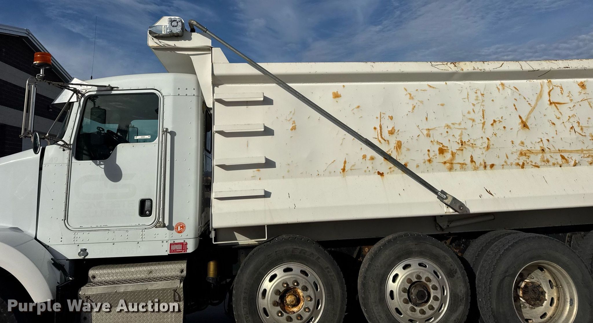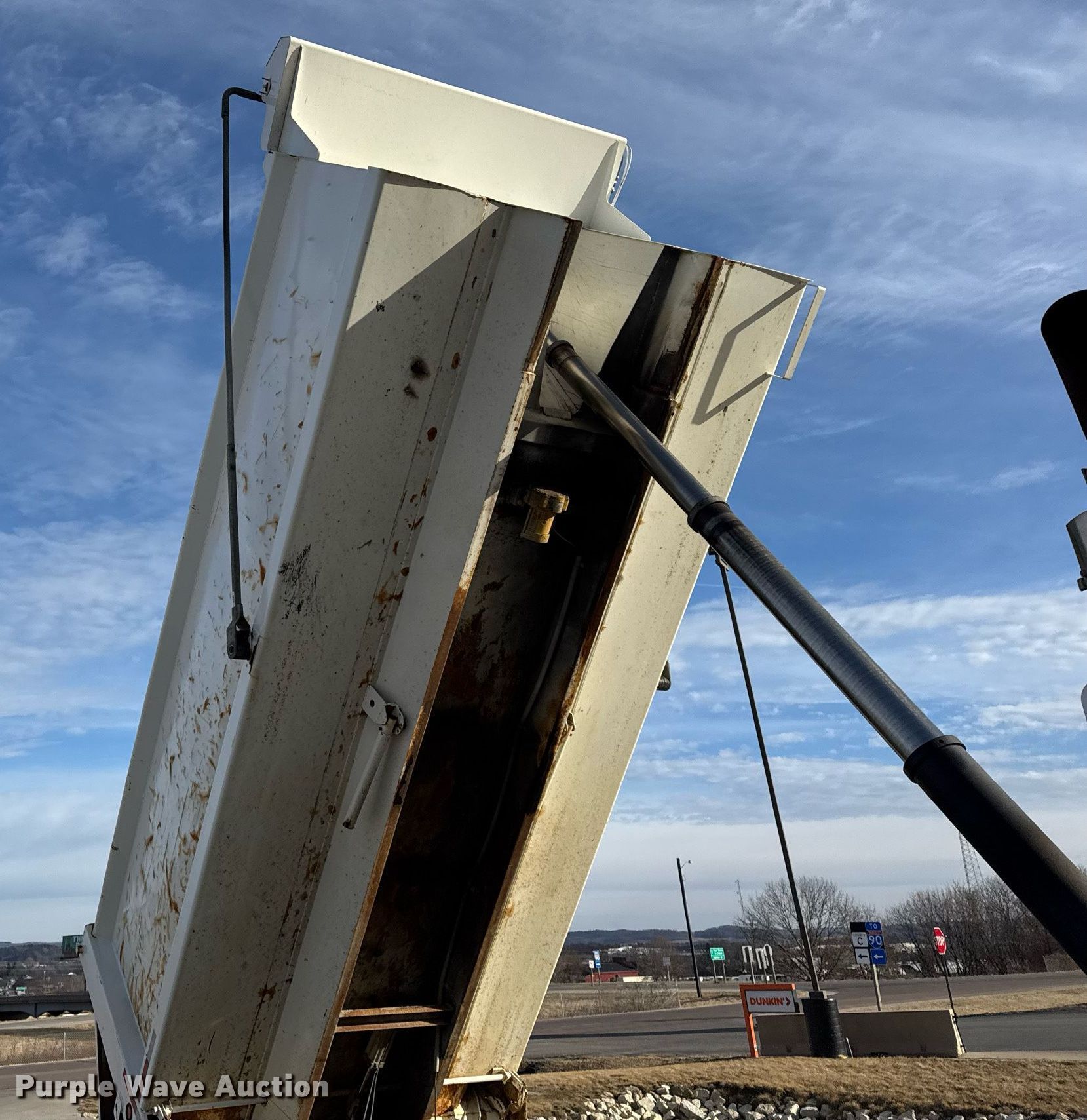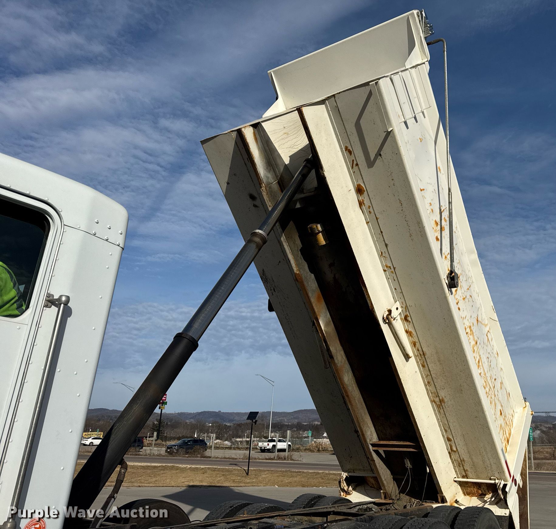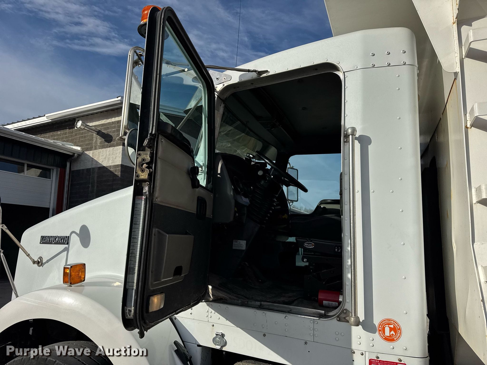 2005 Kenworth T800 dump truck. Miles: 369,322 on odometer, VIN: 3WKDAU8X45F084602. Engine Caterpillar C13, Displacement: 12.0L, Fuel type: Diesel, Engine brake. Transmission Eaton Fuller, Automated manual. Chassis Double frame, Axles: 4, Pusher axle, Suspension: Spring over walking beam, Brakes: Air, PTO, GVWR: 34,700 lbs FAWR: 12,000 lbs, RAWR: 22,700 lbs. Interior AC, Heat, Cruise control. Features Dump bed 17' x 96" W, Side board height: 60", Bed type: Steel, Bed vibrator, Roll tarp, Ram: Single, End gate: Air operated. Tires Front: 425/65R22.5, Rear: 11R24.5, Lift axle: 295/75R22.5. Notes Non-operational roll tarp. Wisconsin title. Title distribution may be delayed up to 30 days from verification of funds. Concrete Solutions. West Salem, WI 54669