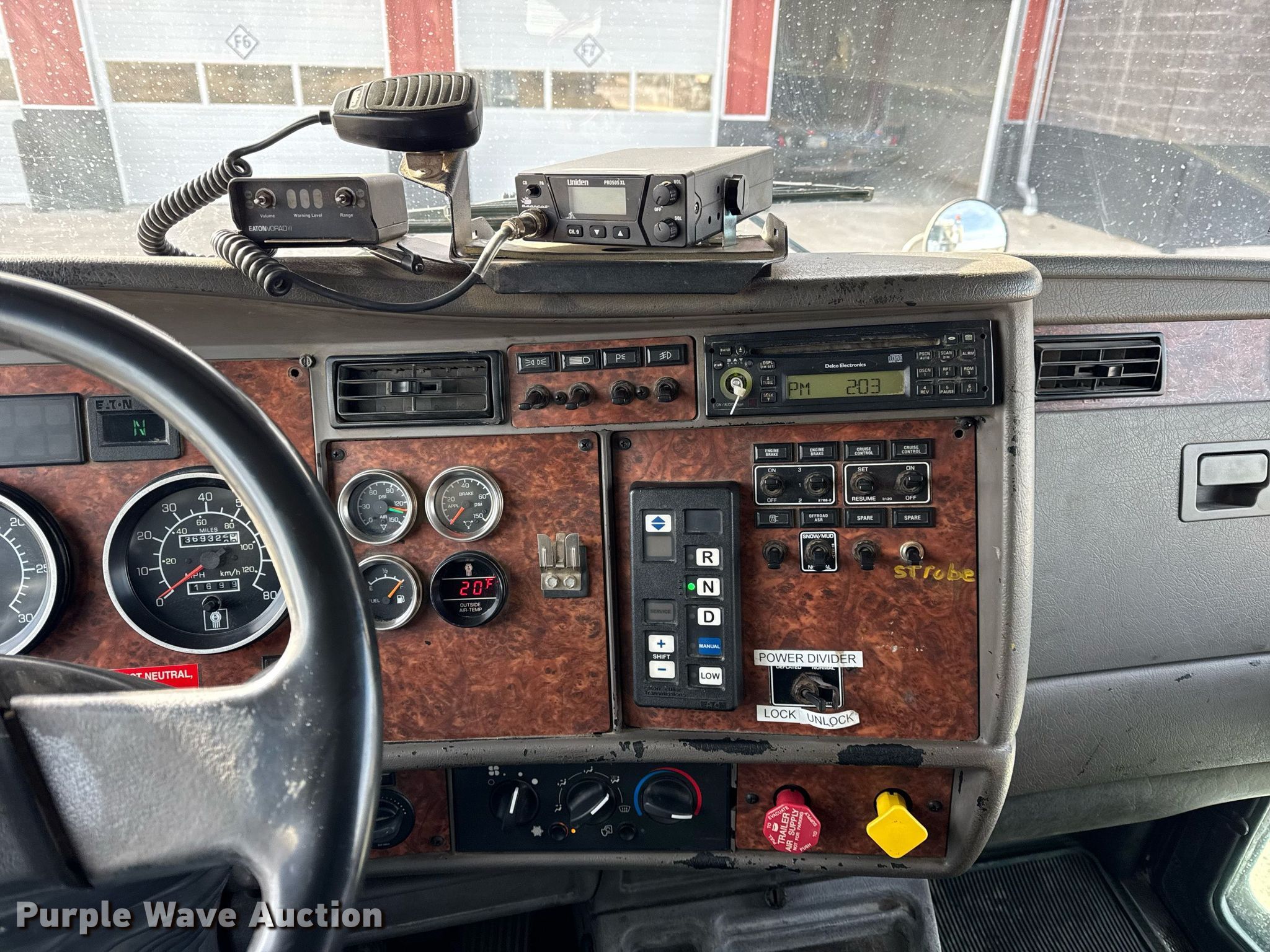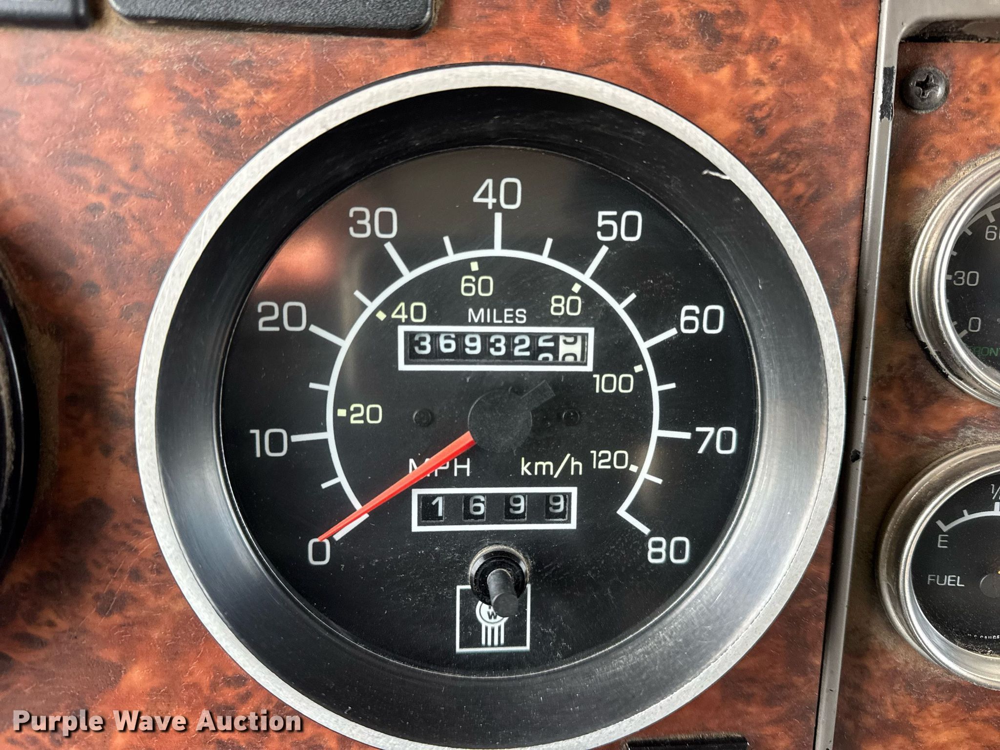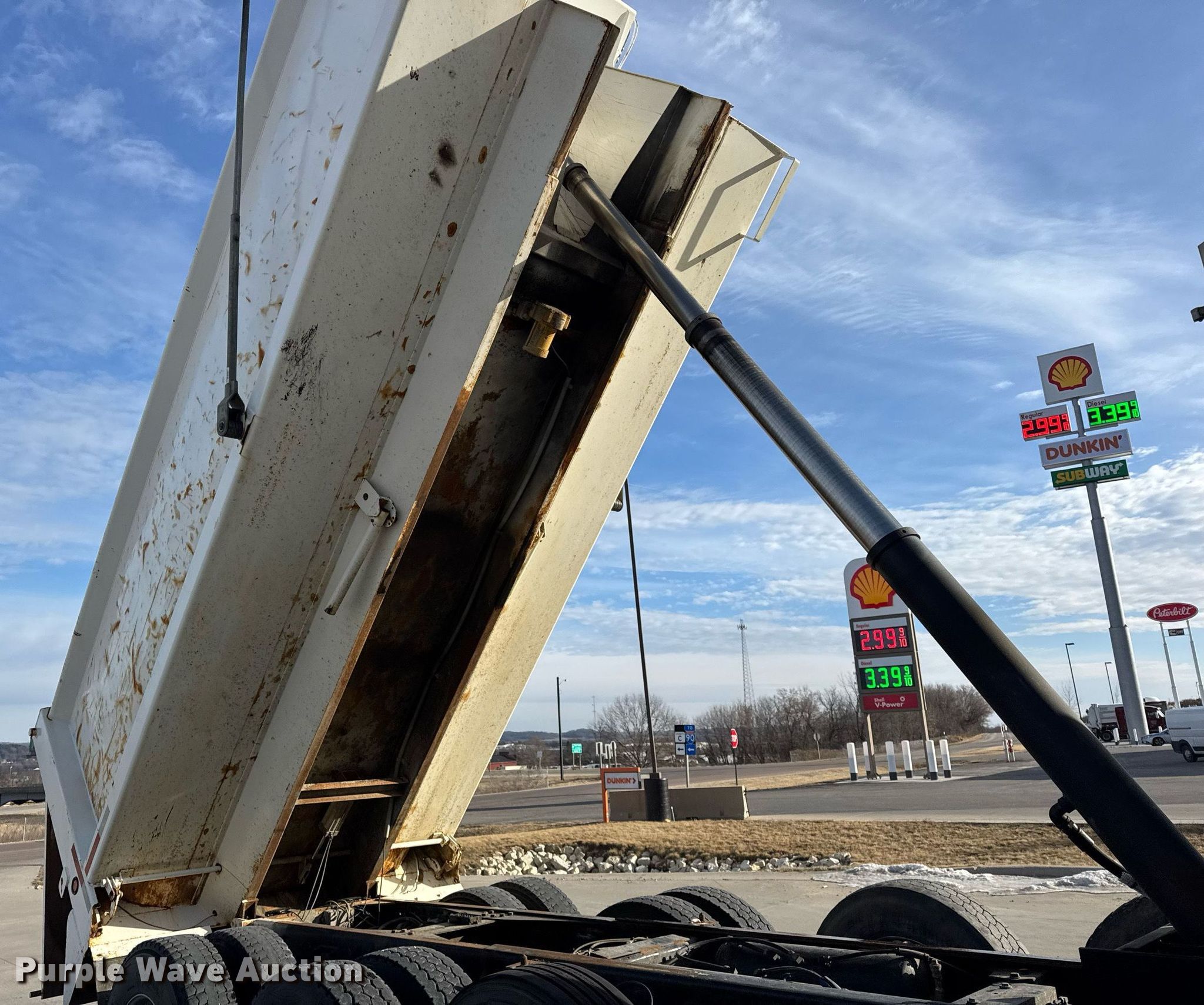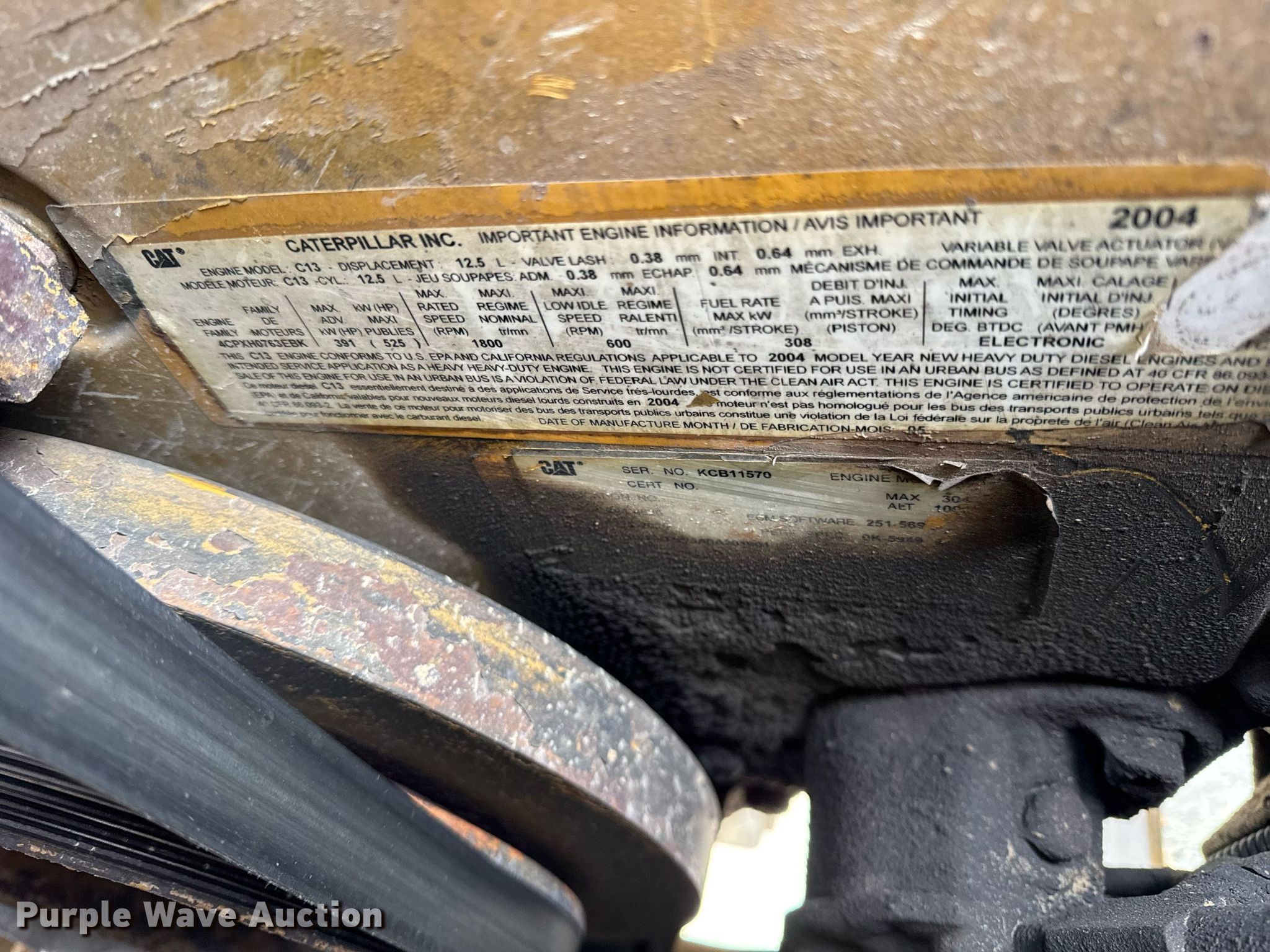 2005 Kenworth T800 dump truck. Miles: 369,322 on odometer, VIN: 3WKDAU8X45F084602. Engine Caterpillar C13, Displacement: 12.0L, Fuel type: Diesel, Engine brake. Transmission Eaton Fuller, Automated manual. Chassis Double frame, Axles: 4, Pusher axle, Suspension: Spring over walking beam, Brakes: Air, PTO, GVWR: 34,700 lbs FAWR: 12,000 lbs, RAWR: 22,700 lbs. Interior AC, Heat, Cruise control. Features Dump bed 17' x 96" W, Side board height: 60", Bed type: Steel, Bed vibrator, Roll tarp, Ram: Single, End gate: Air operated. Tires Front: 425/65R22.5, Rear: 11R24.5, Lift axle: 295/75R22.5. Notes Non-operational roll tarp. Wisconsin title. Title distribution may be delayed up to 30 days from verification of funds. Concrete Solutions. West Salem, WI 54669