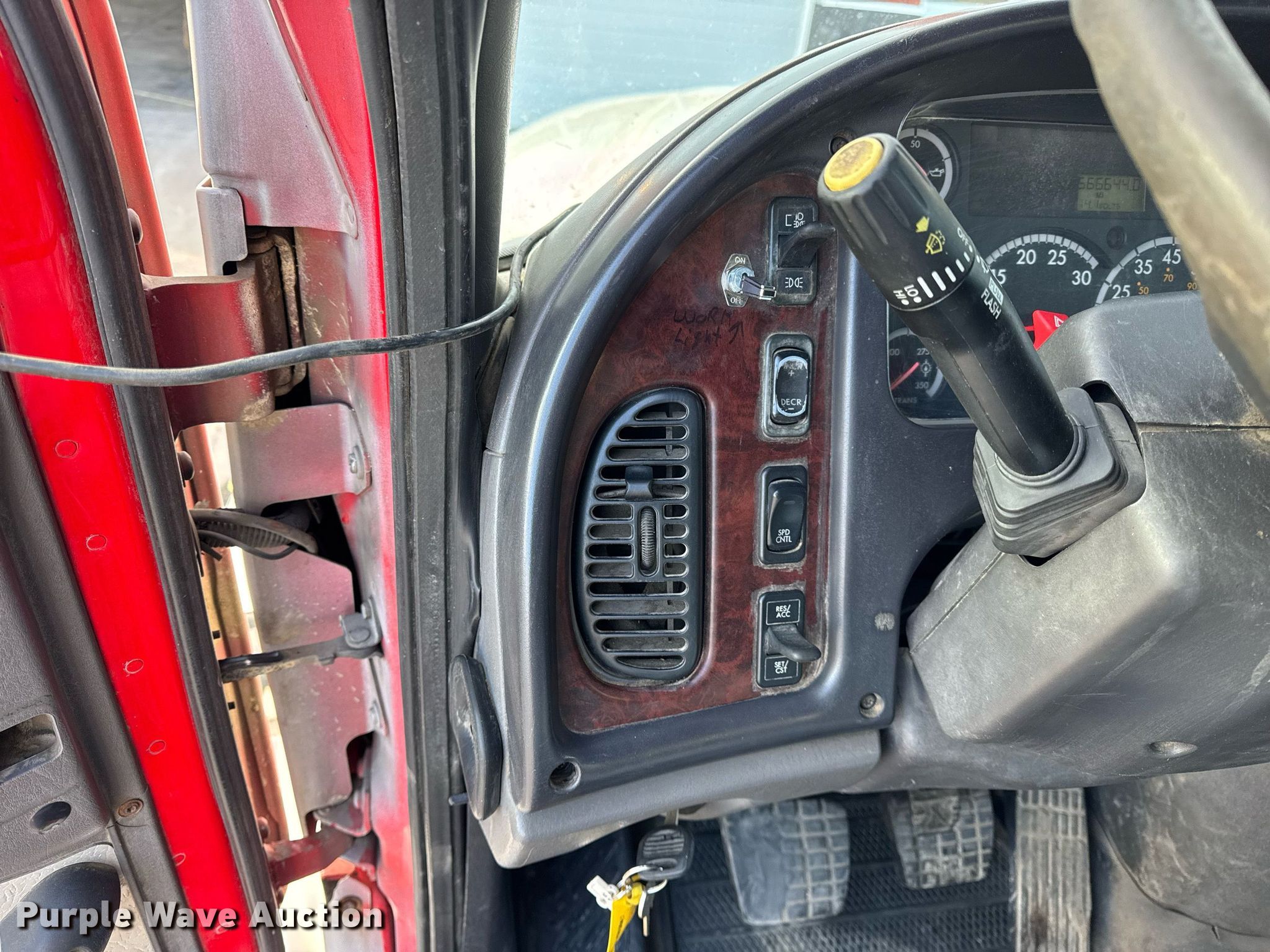 2005 Freightliner M2 dump truck. Miles: 566,644 on odometer, Hours: 13,586 on meter, VIN: 1FVSC5DE65HU23987, Unit #: 48. Engine Caterpillar C13, Displacement: 12.5L, Fuel type: Diesel. Transmission Freightliner, Manual, Speed: 10. Chassis Axles: 4, Pusher axle, Differential lock: Inter-axle, Suspension: Air Dump valves, Brakes: Air, PTO, GVWR: 88,040 lbs FAWR: 20,000 lbs, IAWR: 23,000 lbs, RAWR: 23,000 lbs, Lift axle GAWR: 11,020 lbs. Interior AC, Heat, Heated mirrors, Power windows, Cruise control. Features Dump bed Beau roc, 17' 6" L x 98" W, Side height: 57", Bed type: Steel, Bed vibrator, Roll tarp, Ram: Single, End gate: Air operated. Tires Front: 425/65R22.5, Rear: 11R22.5, Lift axle: 255/70R22.5. Notes Maintenance records available upon request [email protected], Non-operational roll tarp. Wisconsin title. Title distribution may be delayed up to 30 days from verification of funds. Concrete Solutions. West Salem, WI 54669