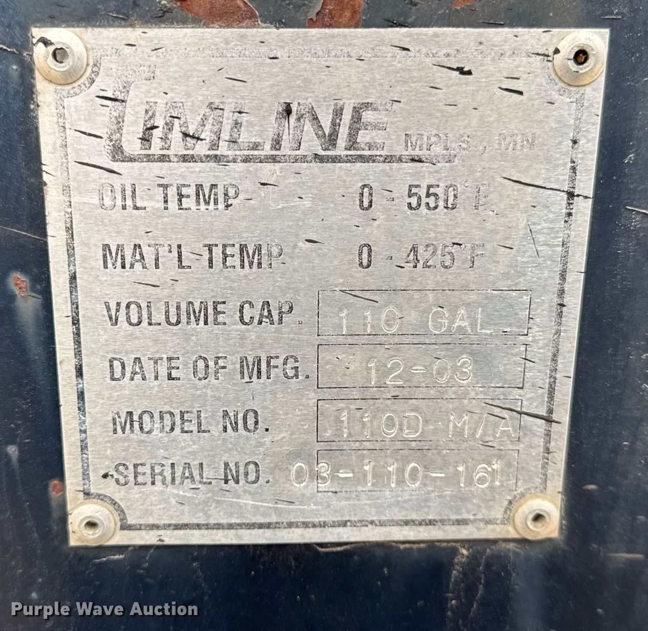 Cimline 110D M/A pothole patcher. Serial: 03110161. Engine Cylinders: 3, Fuel type: Diesel. Features Crack filler, Diesel burner. Tires Size: 225/75R15. Notes Dead battery. This is worksite support equipment and will not come with a title. Transfer of ownership documentation will be a bill of sale. Porter Brothers Asphalt. Rock Falls, IL 61081