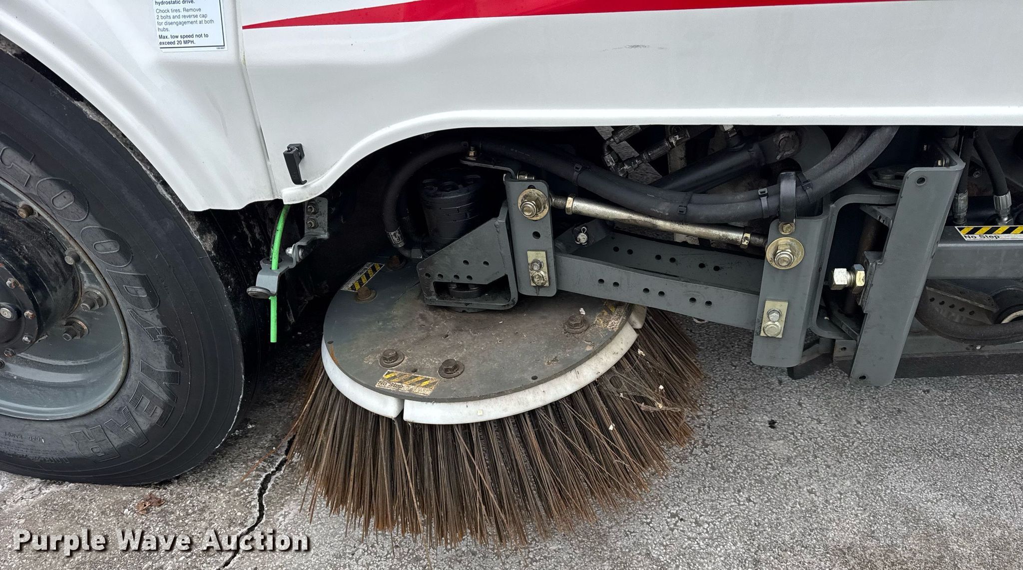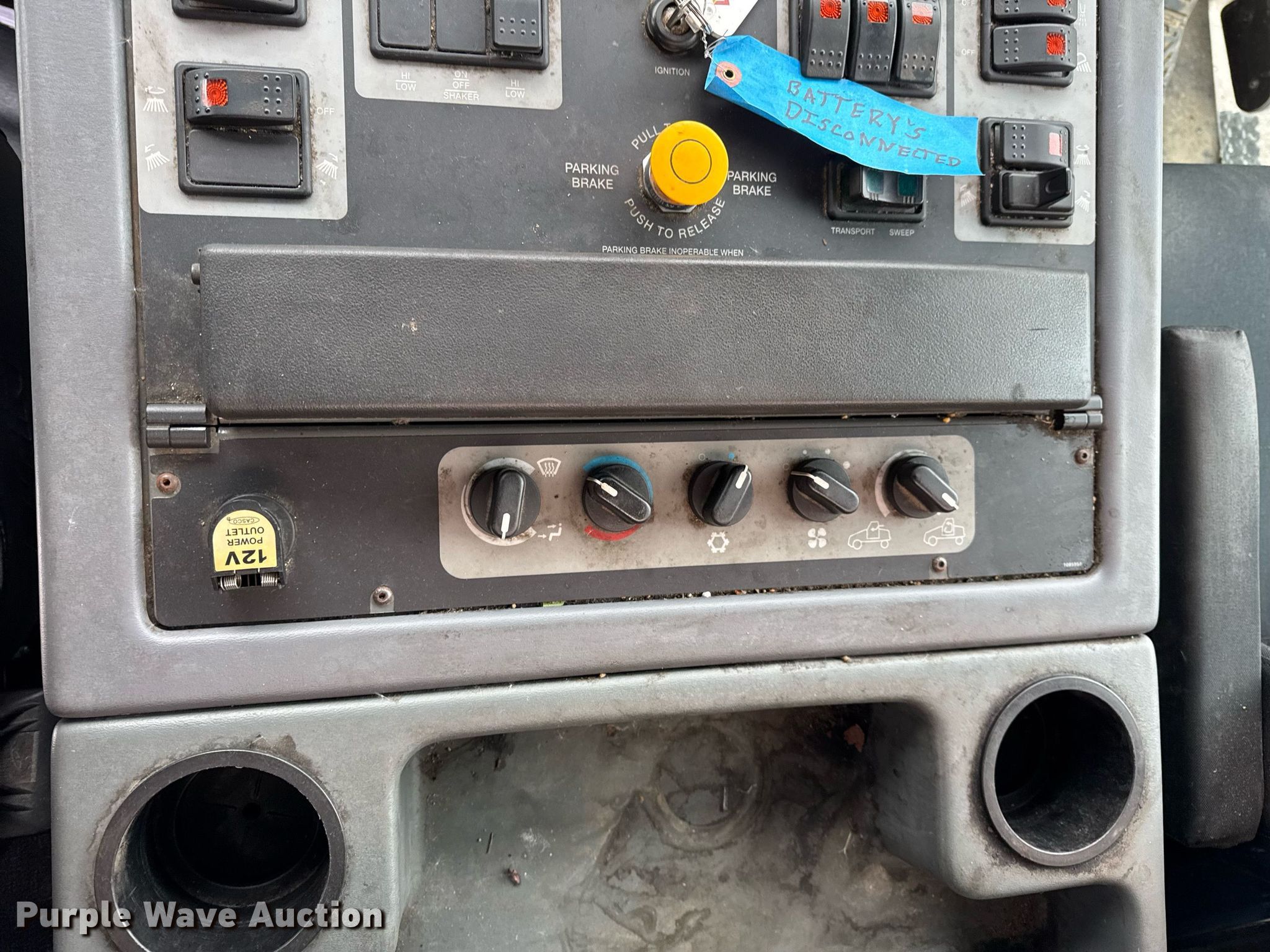 2012 Elgin Pelican sweeper. Miles: 29,407 on odometer, Serial: NP2508D. Engine John Deere, Displacement: 4.5L, Cylinders: 4, Fuel type: Diesel. Transmission Hydrostatic. Chassis Suspension: Spring, Brakes: Hydraulic. Operators station AC, Heat, Dual operating station, Backup camera. Features Water spray system, Sweeper bed Sweeper bed type: Conveyor, Left gutter broom Diameter: 30", Right gutter broom Diameter: 30".. Tires Front: 11R22.5, Rear: 10R17.5. Notes Broom missing, needs replaced. Transfer of ownership documentation will be a bill of sale. MacQueen Equipment. Menomonee Falls, WI 53051