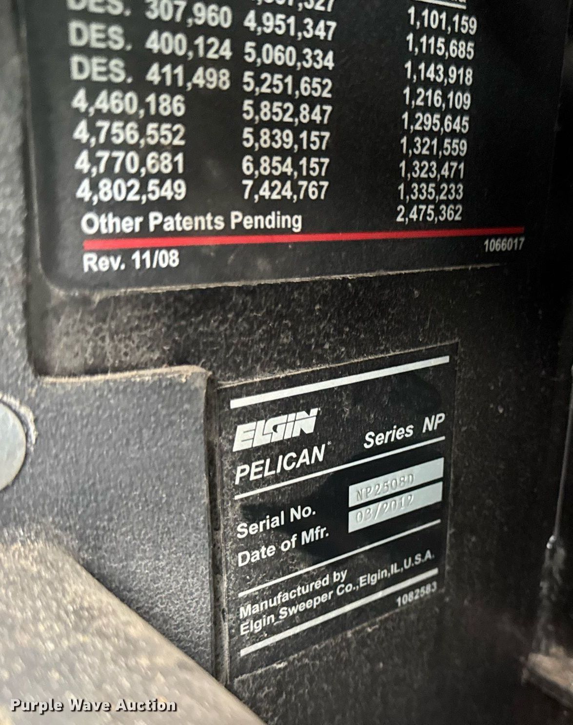 Purple Wave is selling a used Sweeper in Wisconsin. This item is a 2012 Elgin Pelican sweeper with the following: Miles: 29,407 on odometer, Serial: NP2508D