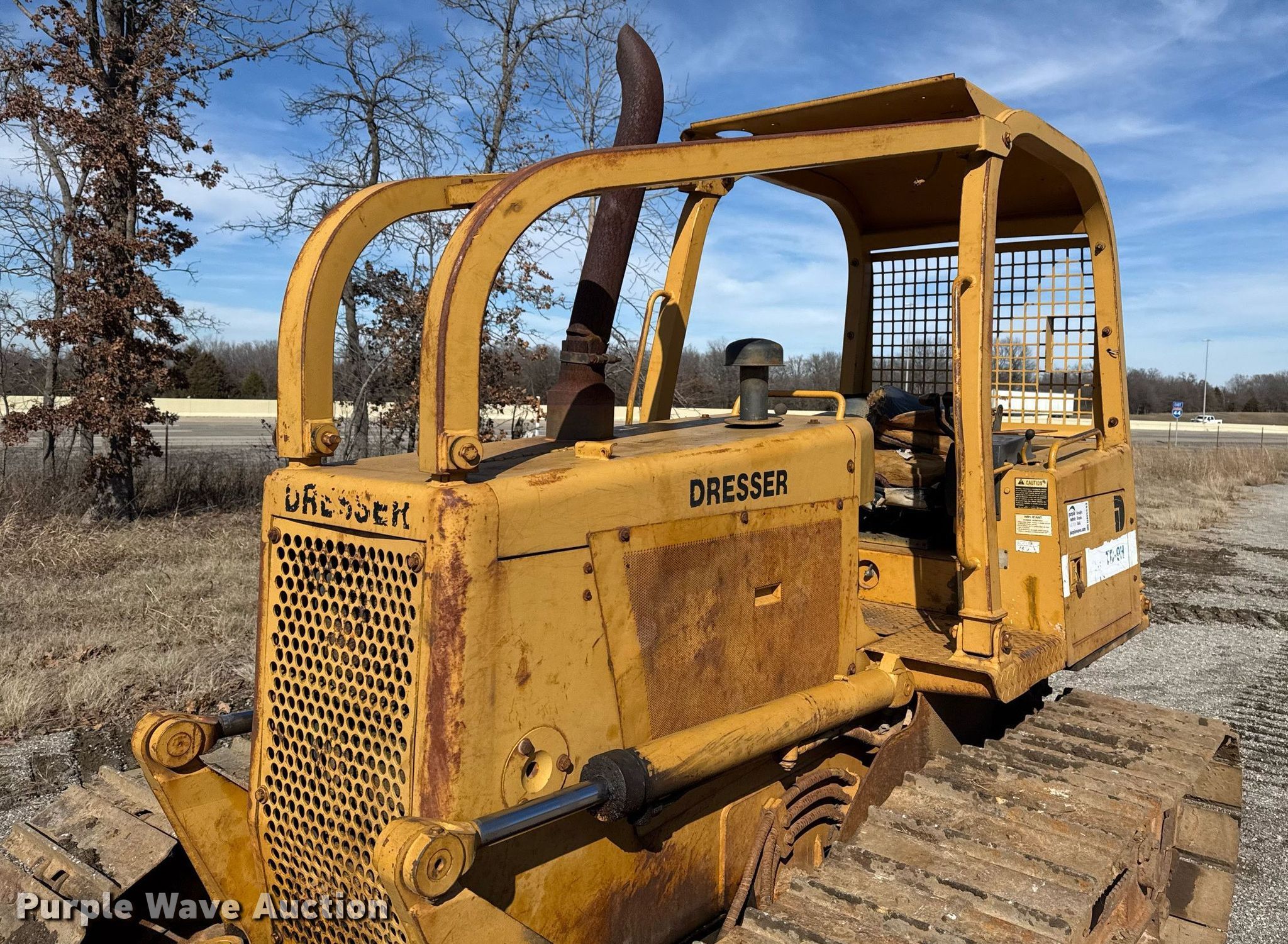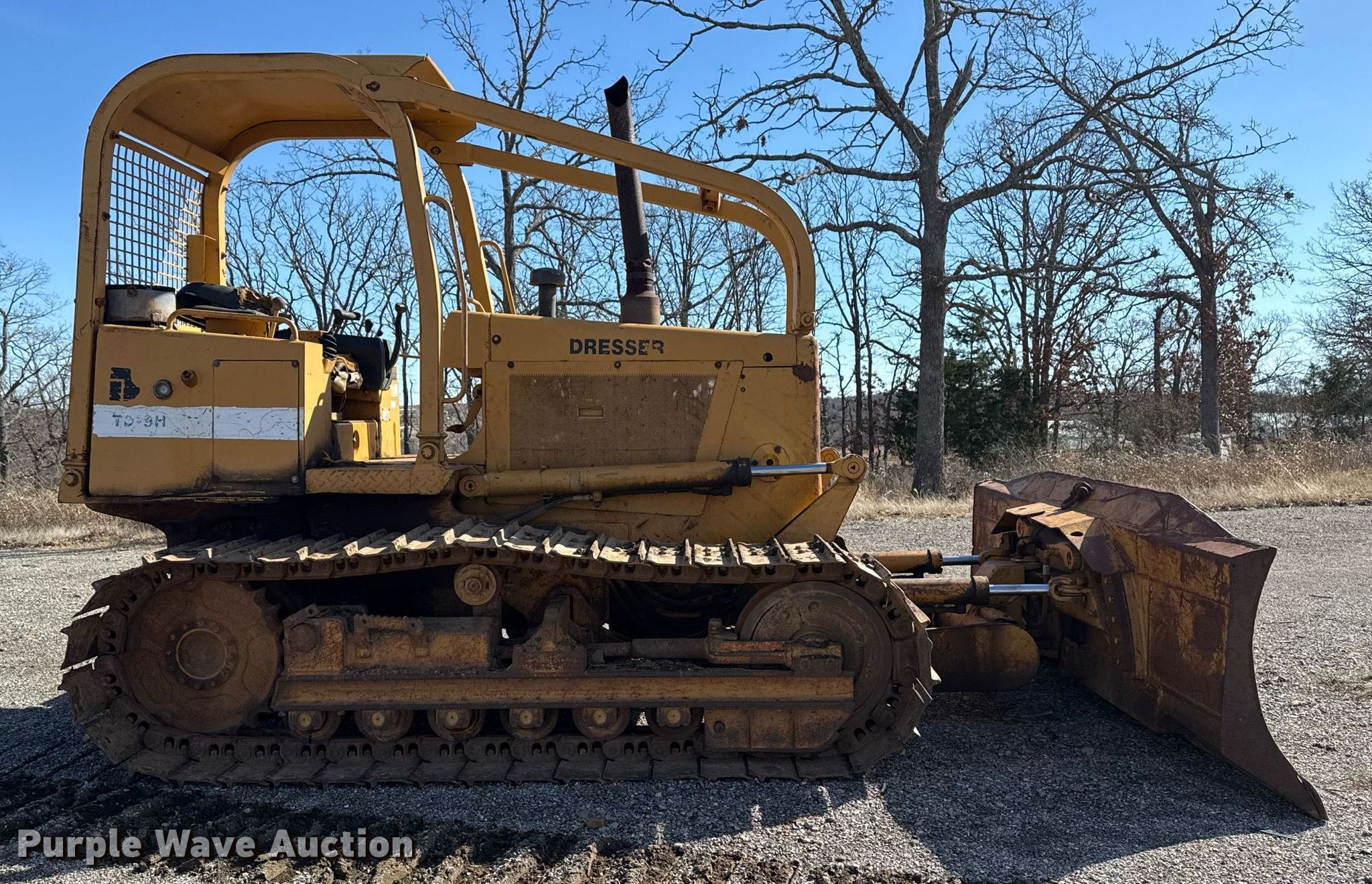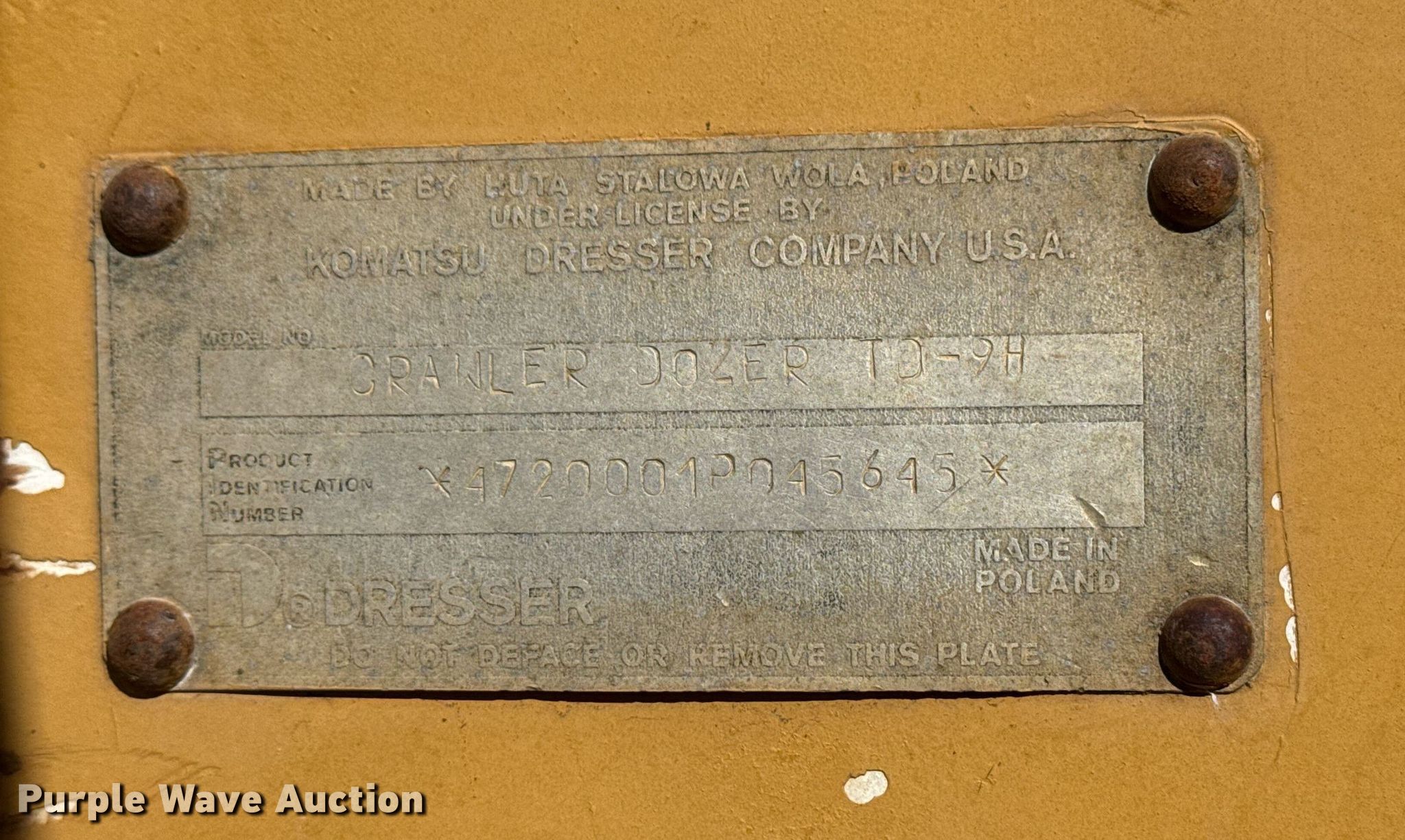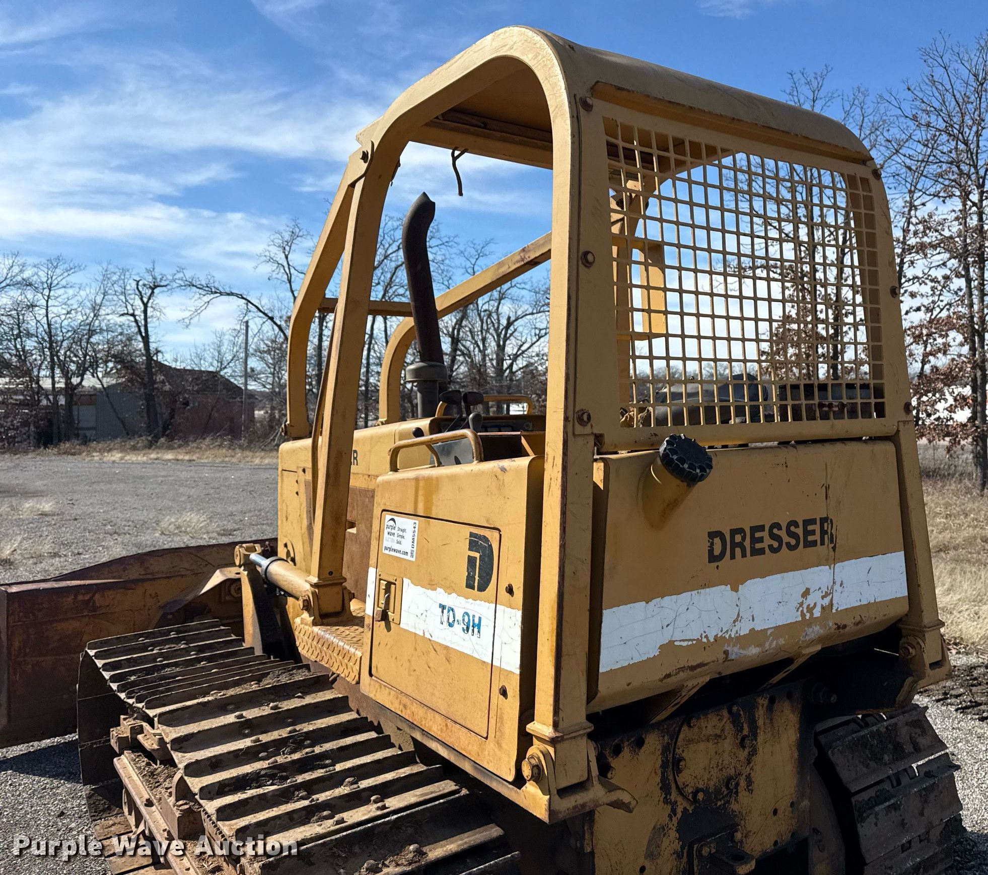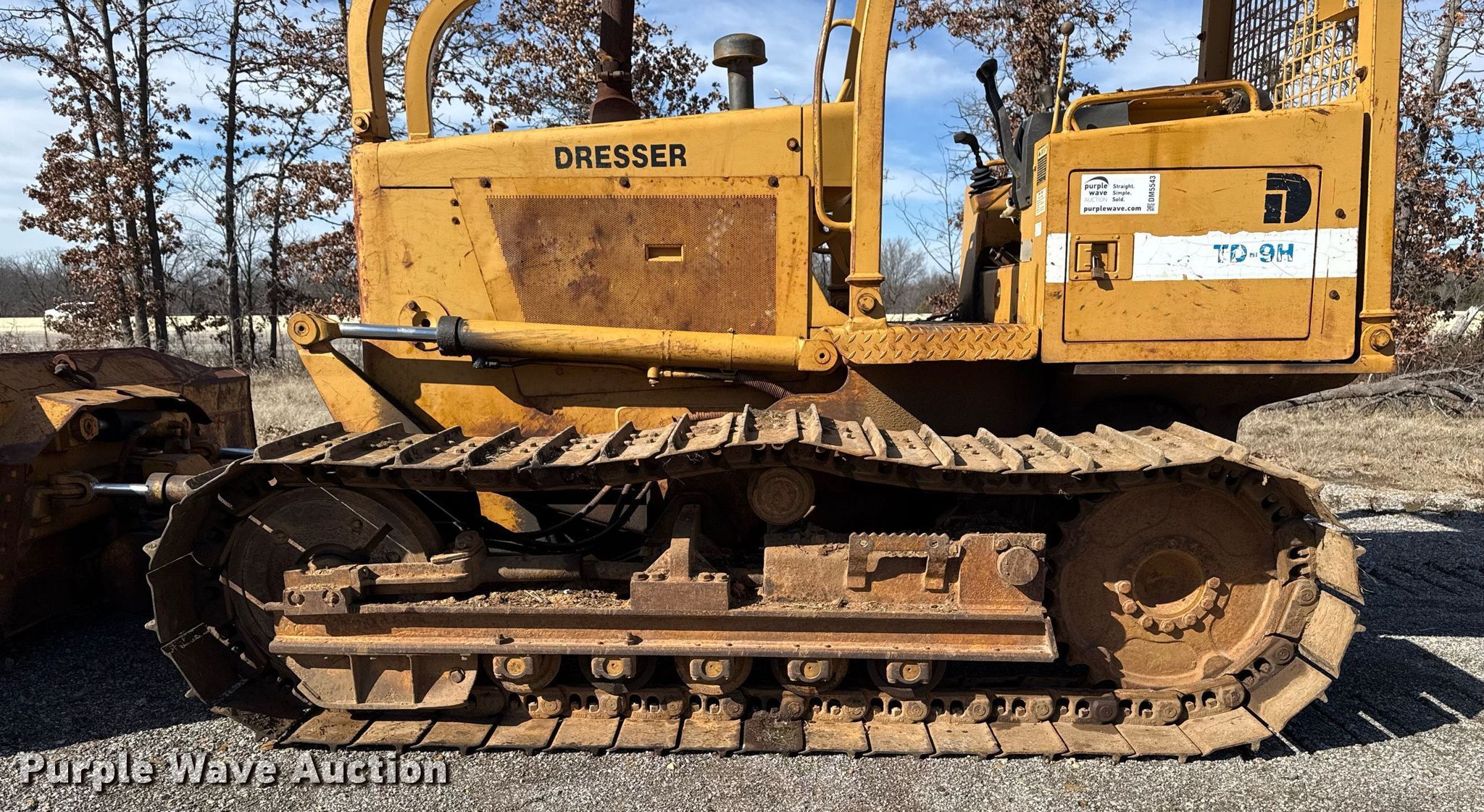 1994 Dresser TD9H dozer. Hours: 8,813 on meter, Serial: 4720001P045645. Engine Fuel type: Diesel. Transmission Powershift, 4F - 4R. Operators station Canopy, Steering: Clutch brake. Features Sweeps, Dozer blade Blade type: 6-way, Blade shape: Straight, Width: 111". Tracks Width: 20", Grouser pads: Single, Bottom rollers: 5. Notes Engine cover issues, will not open. Sapulpa, OK 74066