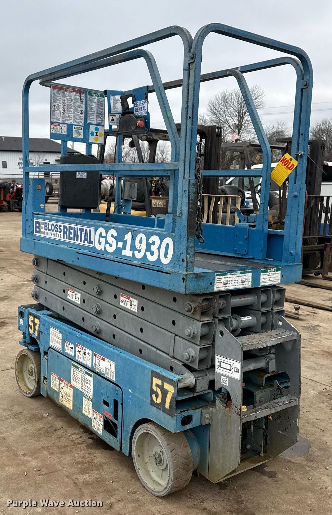 2005 Genie Lift GS-1930 scissor lift. Hours: 621 on meter, Serial: GS3005-72498. Features Maximum lift capacity: 500 lbs, Maximum lift height: 19', Platform: 64" L x 29" W, AC power outlet, Controls: Platform, Ground, Platform extensions: Manual. Tires Tire size: 12x4.5, Solid, Non-marking. Bloss Sales & Rentals. Tulsa, OK 74146