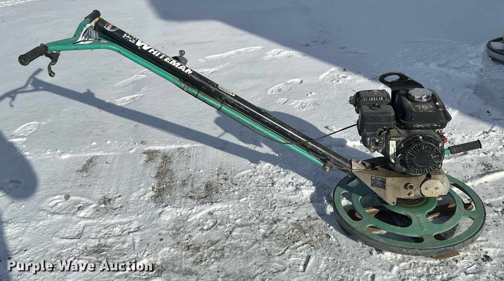 Whiteman CA4HC power trowel. Serial: NK0107341. Engine Honda, Cylinders: 1, Fuel type: Gas. Features Diameter: 24". Double J Concrete. New London, MN 56273
