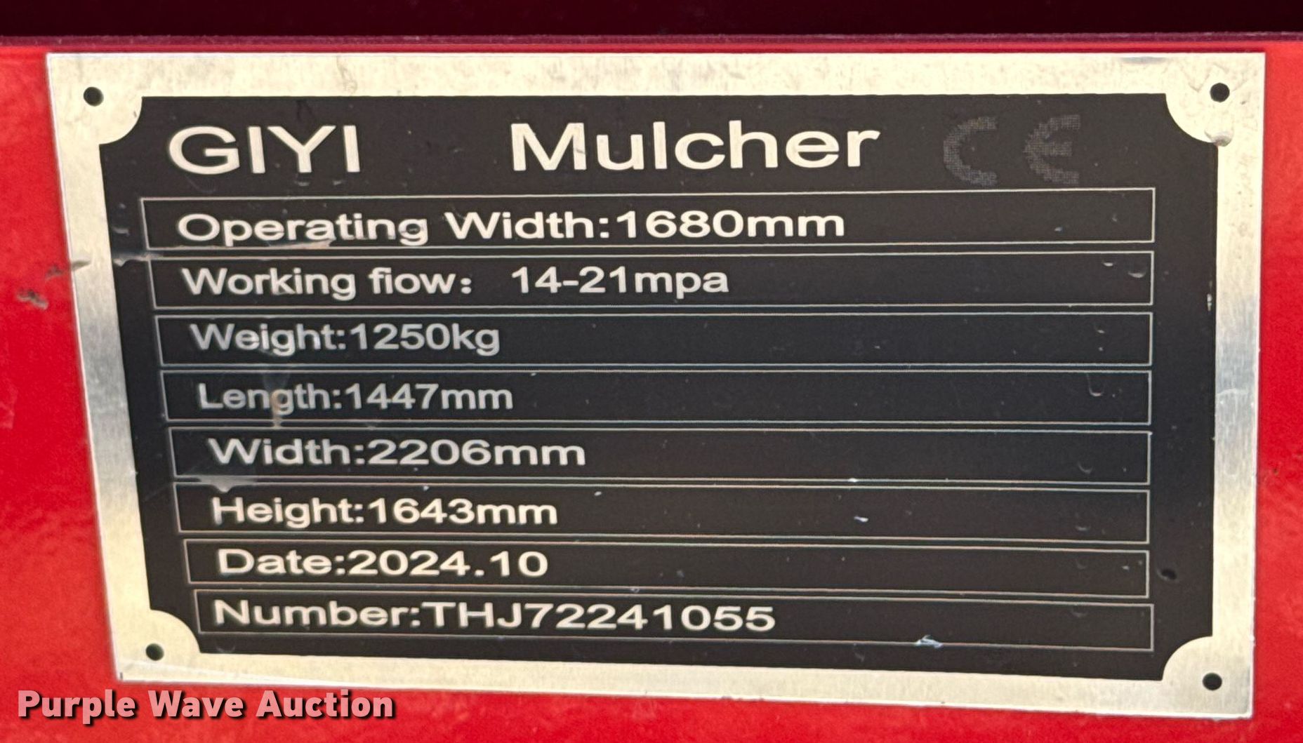 Purple Wave is selling a used Skid Steer Attach. in Kansas. This item is a 2024 GIYI skid steer mulcher with the following: Serial: THJ72241055, Width: 72", Unused