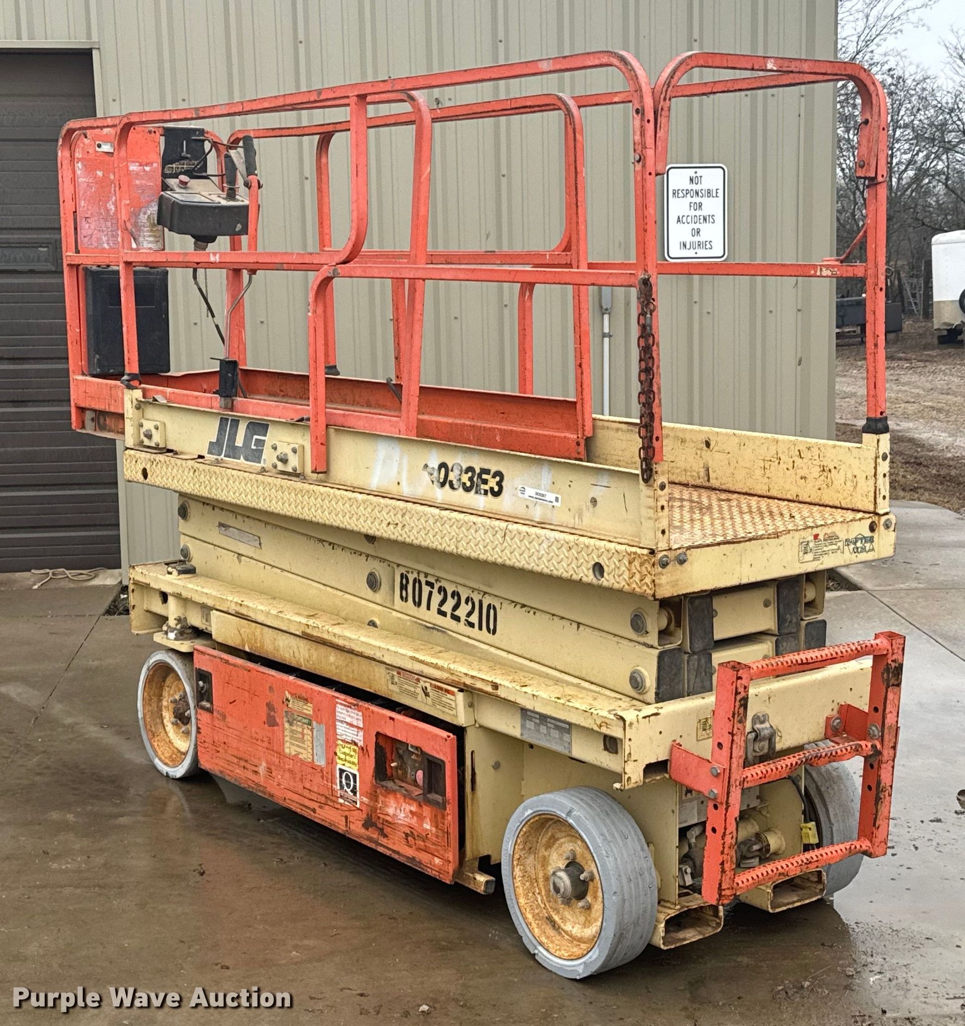 Purple Wave is selling a used Scissor or Vertical Lift in Oklahoma. This item is a JLG 2033E3 scissor lift with the following: Hours: Unknown, Serial: 0200080640
