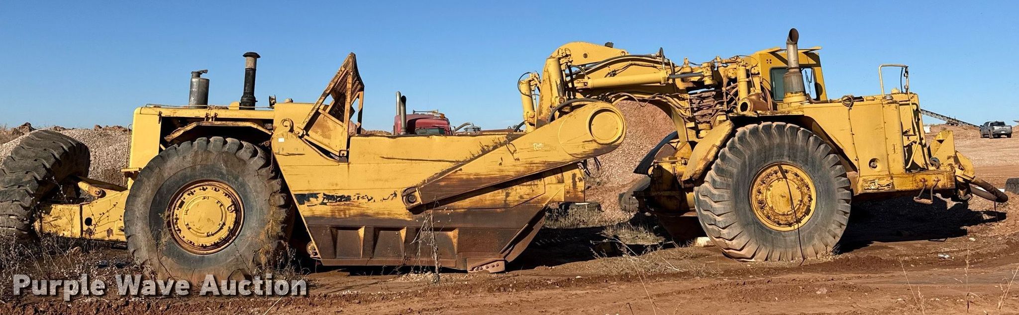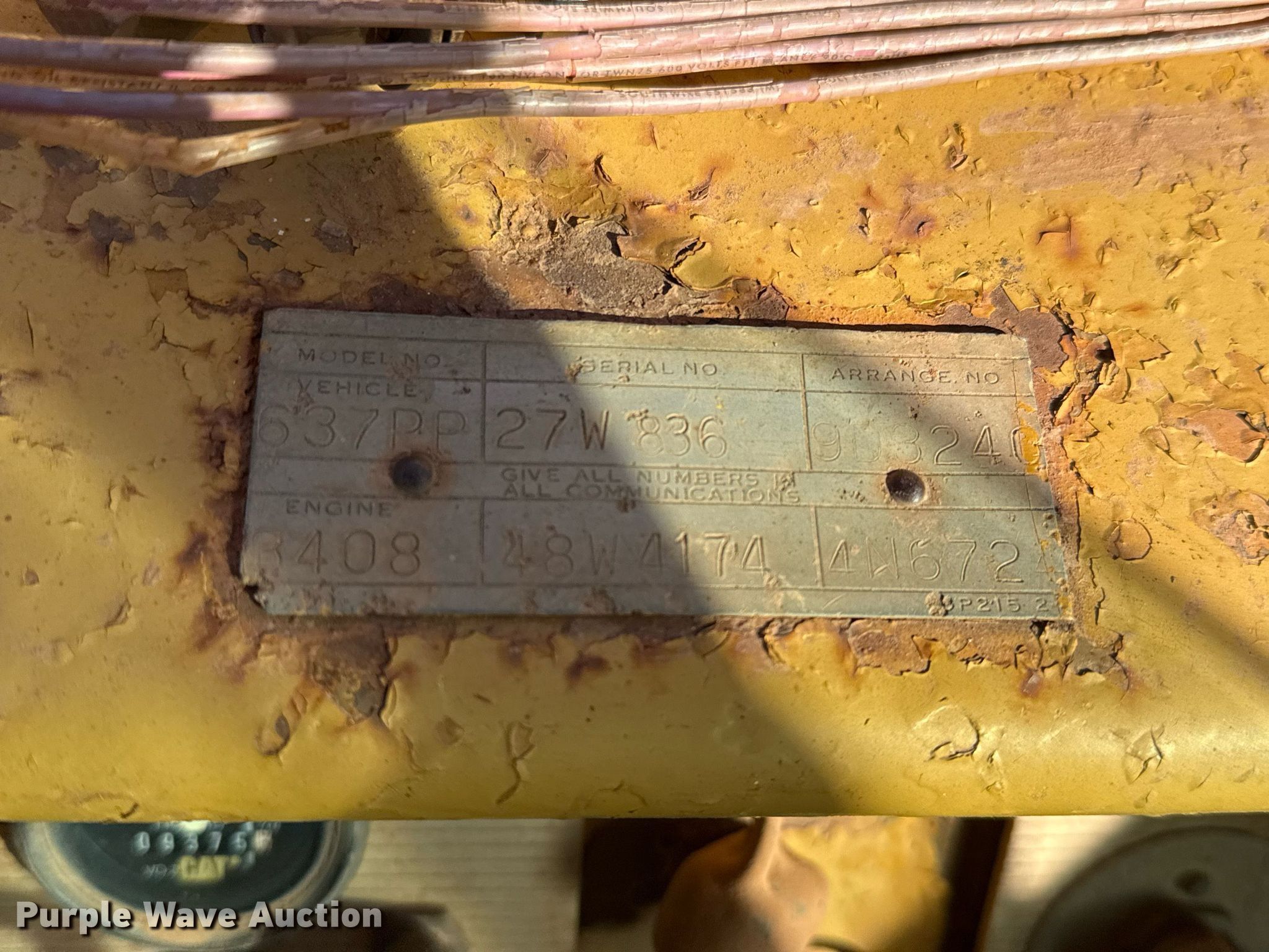Purple Wave is selling a used Conventional Scraper in Texas. This item is a 1977 Caterpillar 637D conventional scraper with the following: Hours: 9,375 on meter, Serial: 27W836
