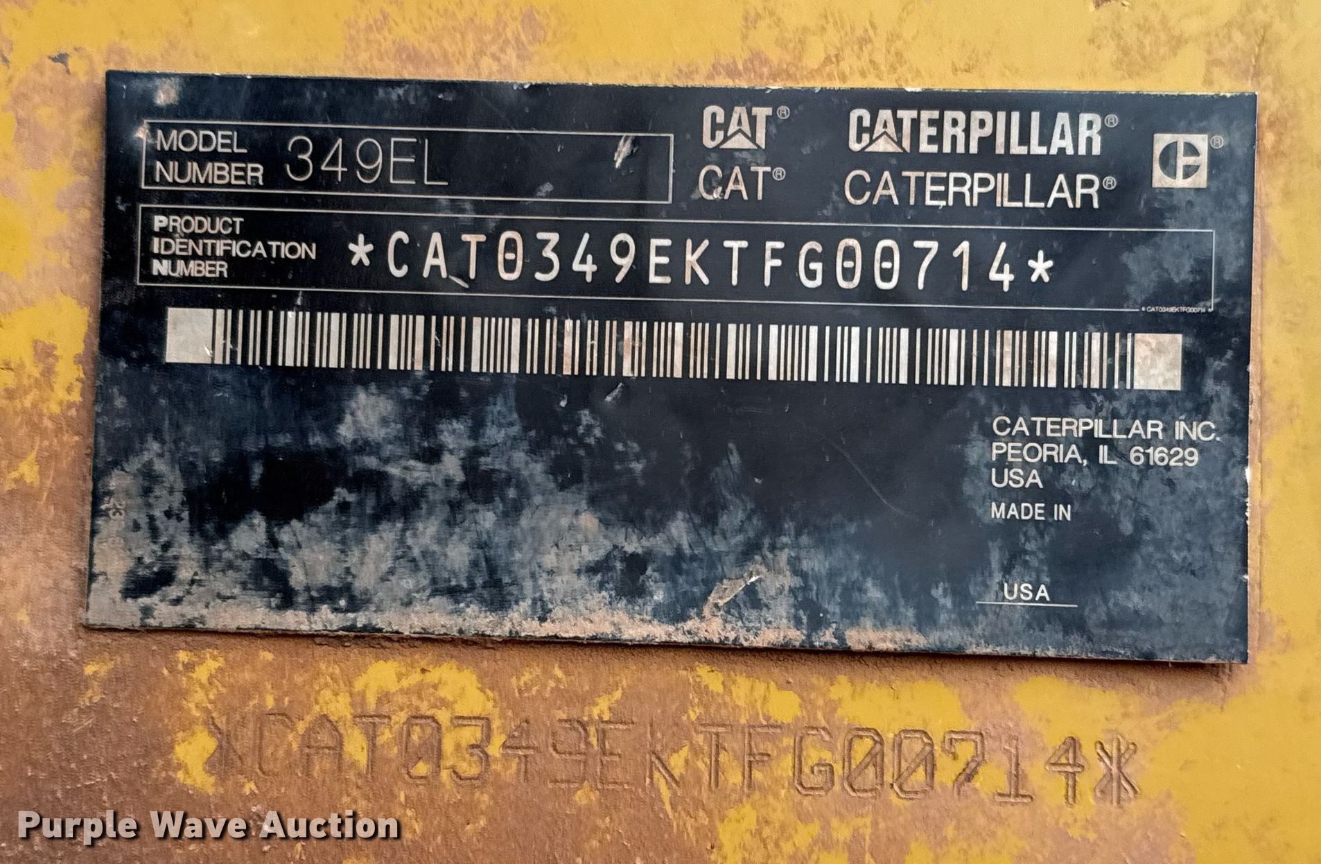 Purple Wave is selling a used Hydraulic Excavator in Texas. This item is a 2012 Caterpillar 349EL excavator with the following: Hours: Unknown, Serial: CAT0349EKTFG00714
