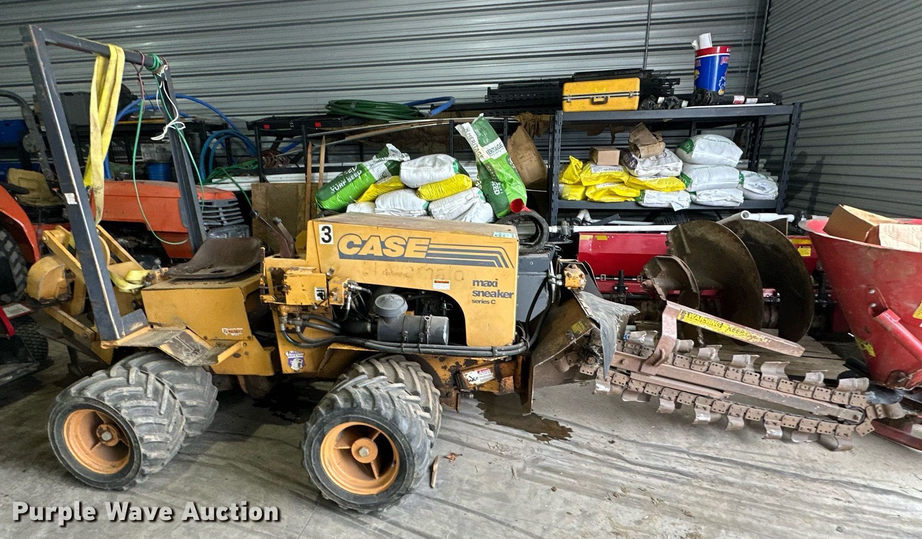 Purple Wave is selling a used Trencher or Rock Saw in Kansas. This item is a 1996 Case Maxi Sneaker C trencher with the following: Hours: 2,411 on meter, Serial: JAF0200059