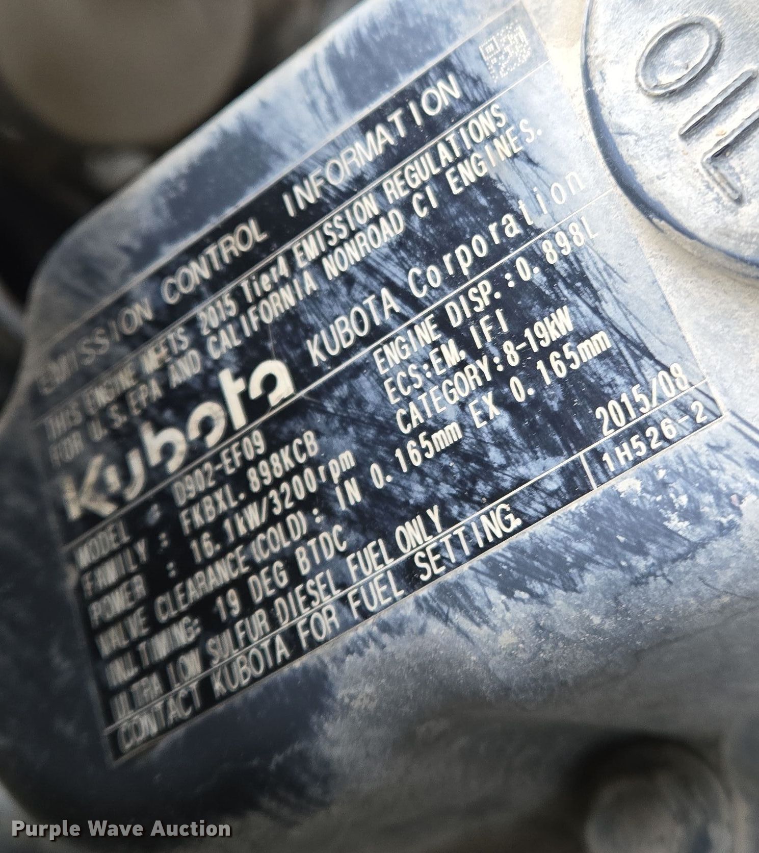 2015 Kubota RTV X900 utility vehicle. Hours: 3,620 on meter, VIN: A5KB2FDBTFG029525, Serial: 29525. Engine Kubota D902-EF09, Displacement: 0.898L, Cylinders: 3, Fuel type: Diesel, kW: 16.1, Electric start. Transmission Automatic. Chassis Four wheel drive/ All wheel drive. Operators station Canopy. Features Grille guard, Receiver hitch, Dump bed 42" L x 58" W, Dump bed type: Manual. Tires Size: 280/65R12. Notes Starting issues, cranks but won't start , Non-operational unit. Transfer of ownership documentation will be a bill of sale. Runyon Industries. Memphis, TN 38127