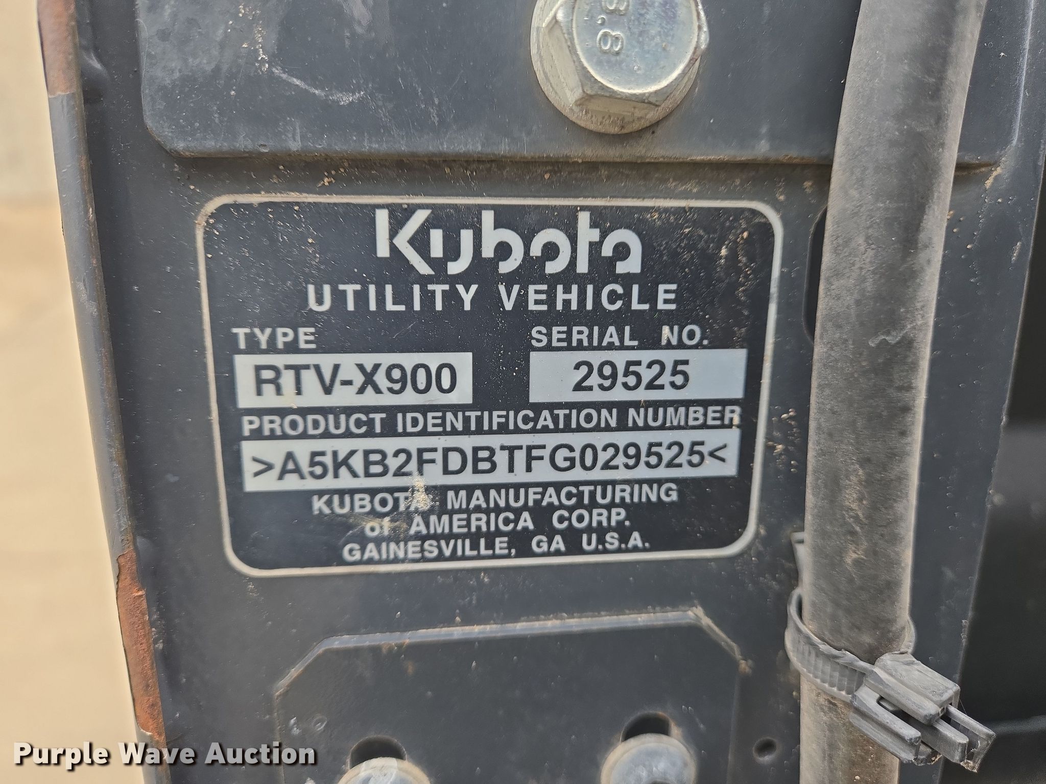 Purple Wave is selling a used Utility Vehicle in Tennessee. This item is a 2015 Kubota RTV X900 utility vehicle with the following: Hours: 3,620 on meter, VIN: A5KB2FDBTFG029525, Serial: 29525