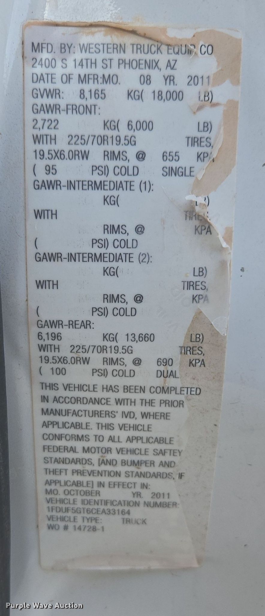 • VIN: 1FDUF5GT6CEA33164