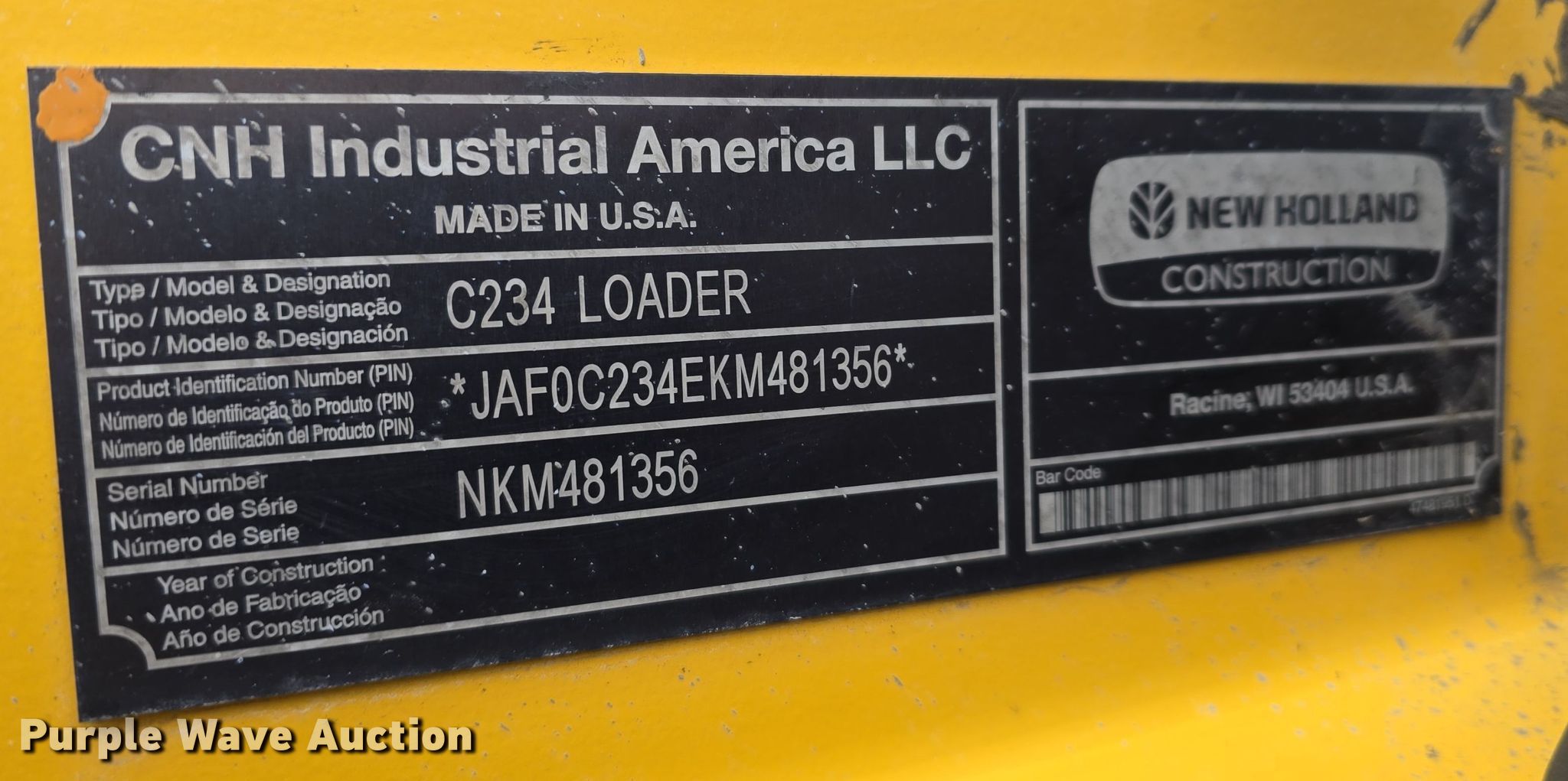 Purple Wave is selling a used Tracked Skid Steer Loader in Nebraska. This item is a 2019 New Holland C234 tracked skid steer loader with the following: Hours: 2,513 on meter, Serial: NKM481356