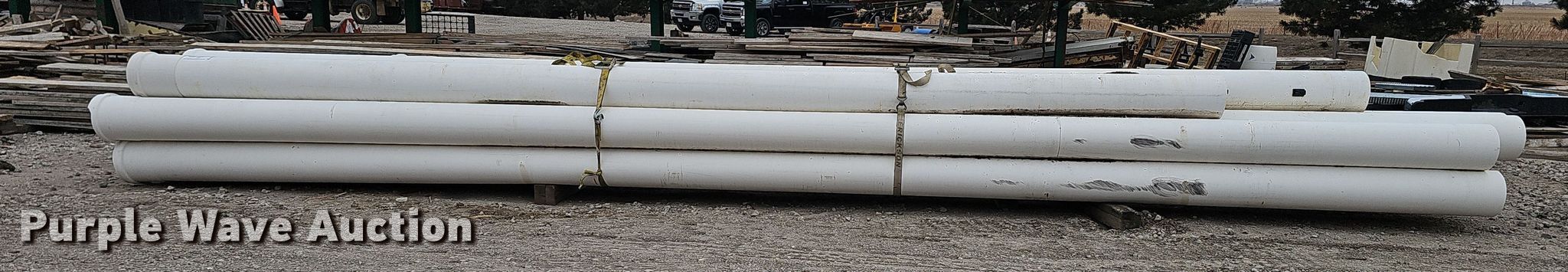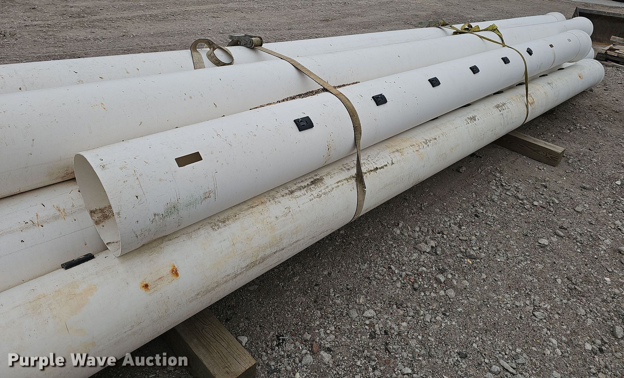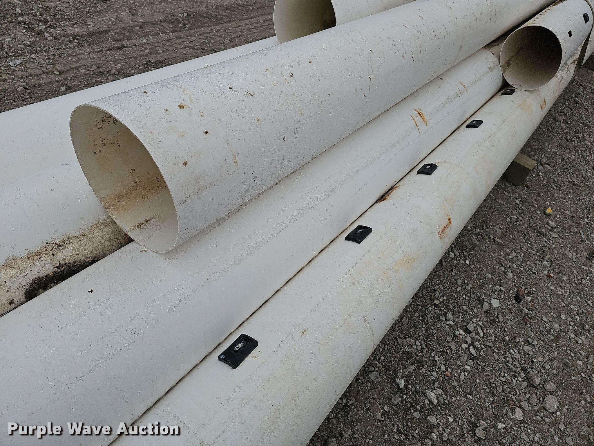 Purple Wave is selling a used Pipe in Nebraska. This item is a (10) PVC pipes with the following: (6) joints of 30' L x 12" diameter, Joint of 15' L x 12" diameter, Joint of 26' L x 12" diameter, Joint of 27.5' L x 12" diameter, Joint of 24.5' L x 12" diameter