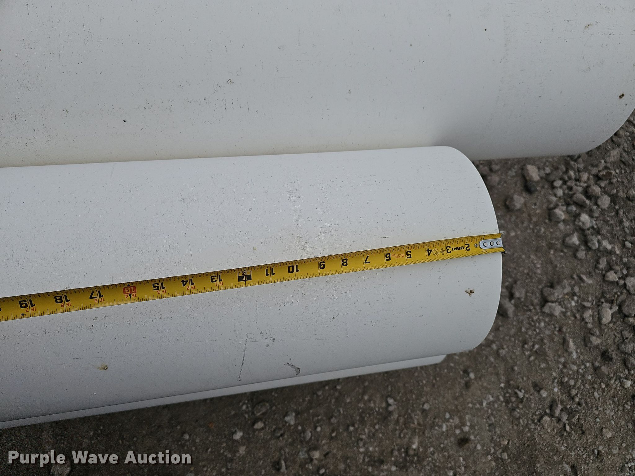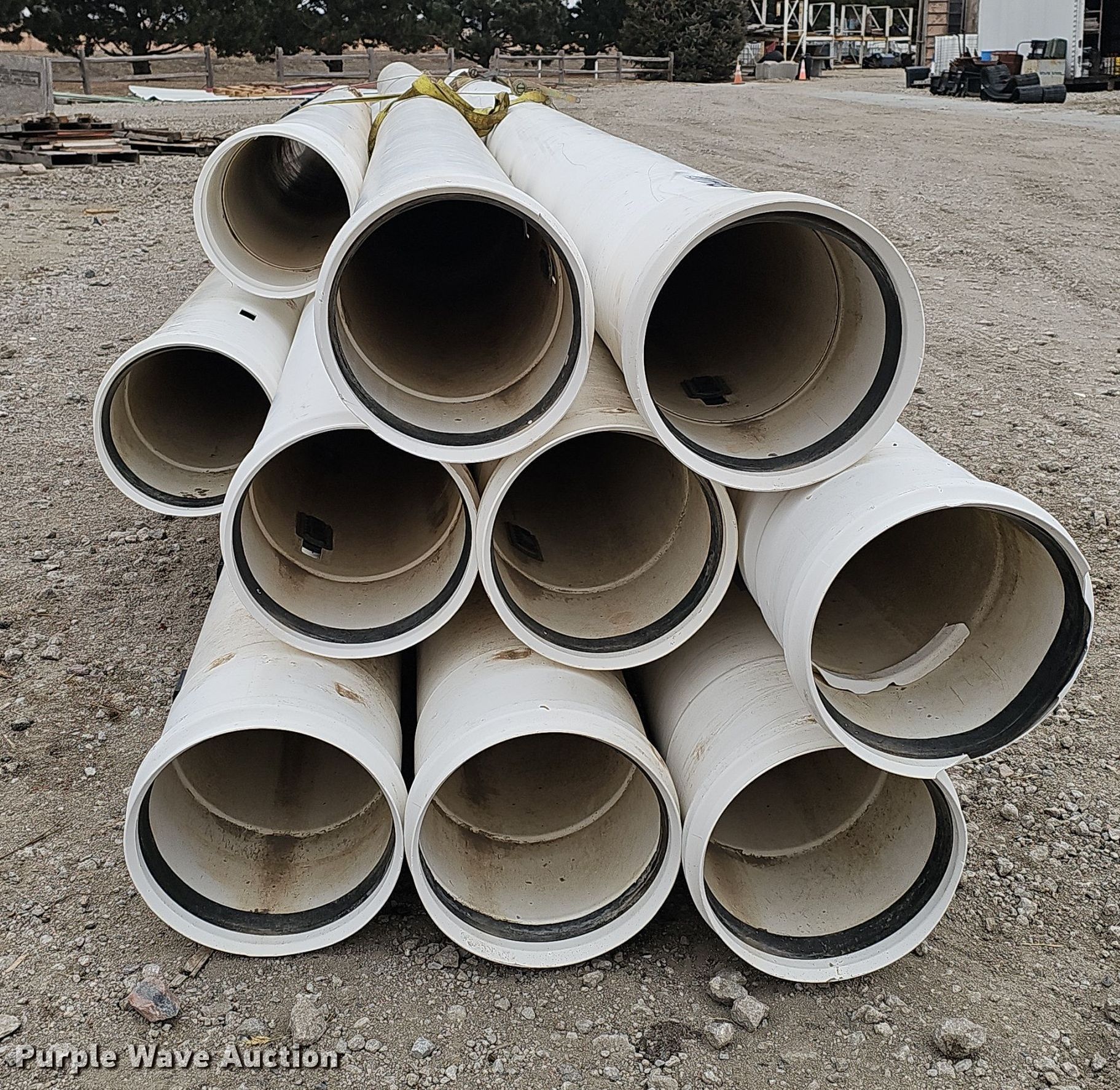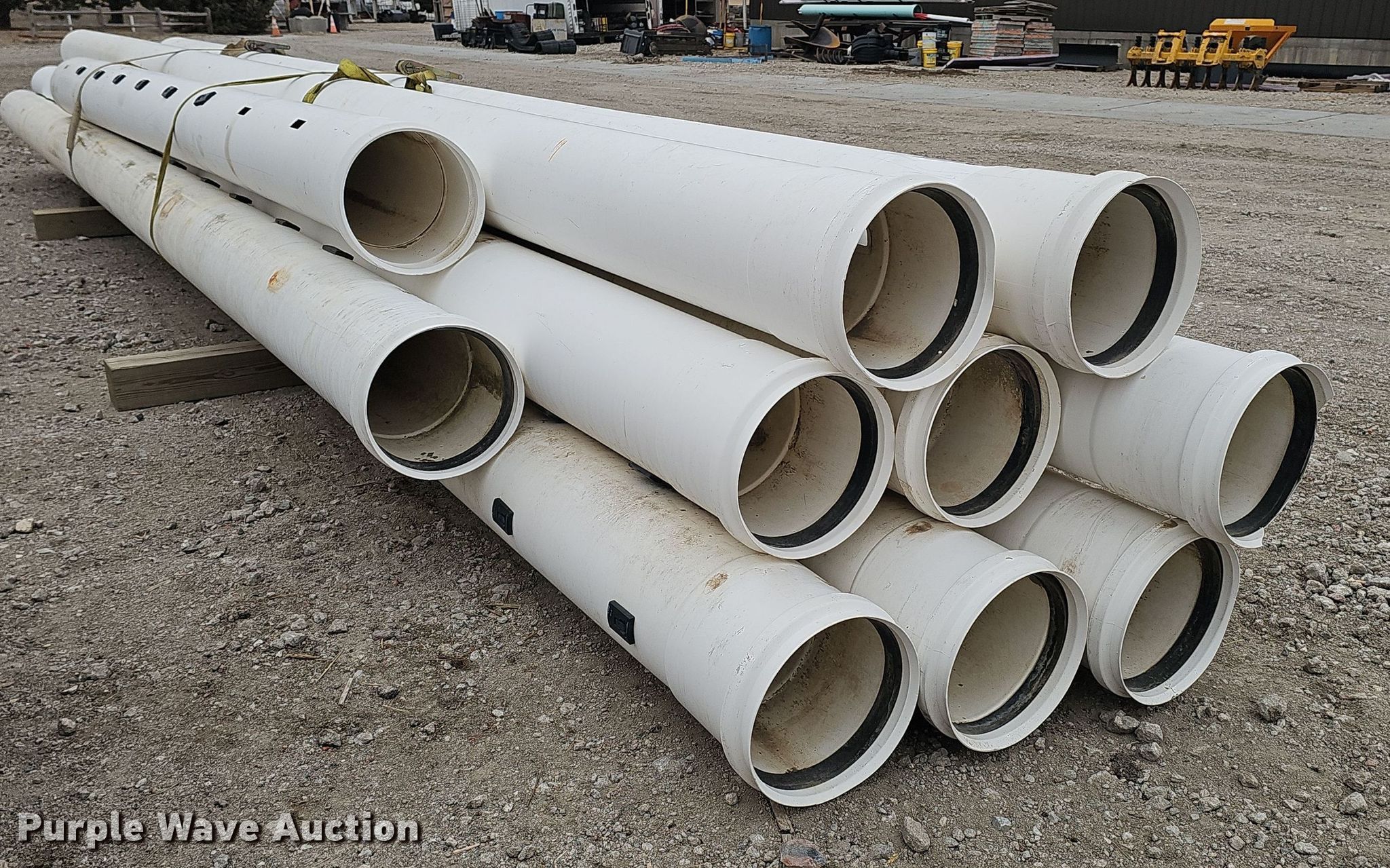 Purple Wave is selling a used Pipe in Nebraska. This item is a (10) PVC pipes with the following: (6) joints of 30' L x 12" diameter, Joint of 15' L x 12" diameter, Joint of 26' L x 12" diameter, Joint of 27.5' L x 12" diameter, Joint of 24.5' L x 12" diameter