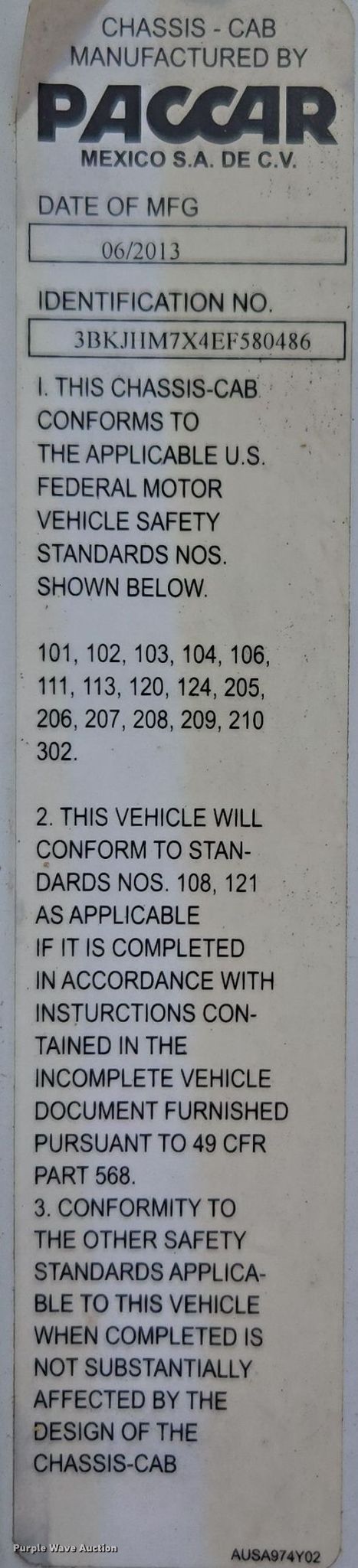 • VIN: 3BKJHM7X4EF580486