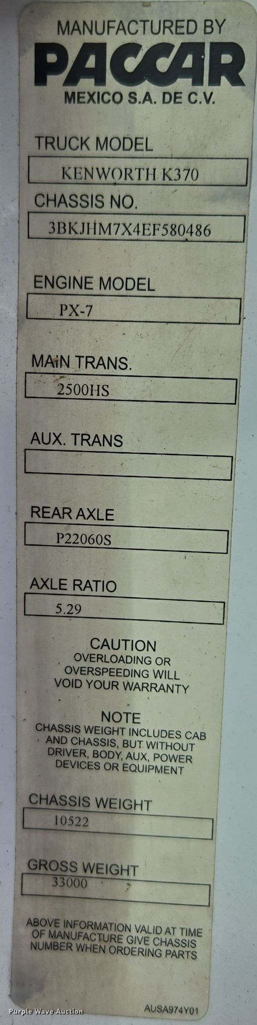 • Decals will be removed prior to auction