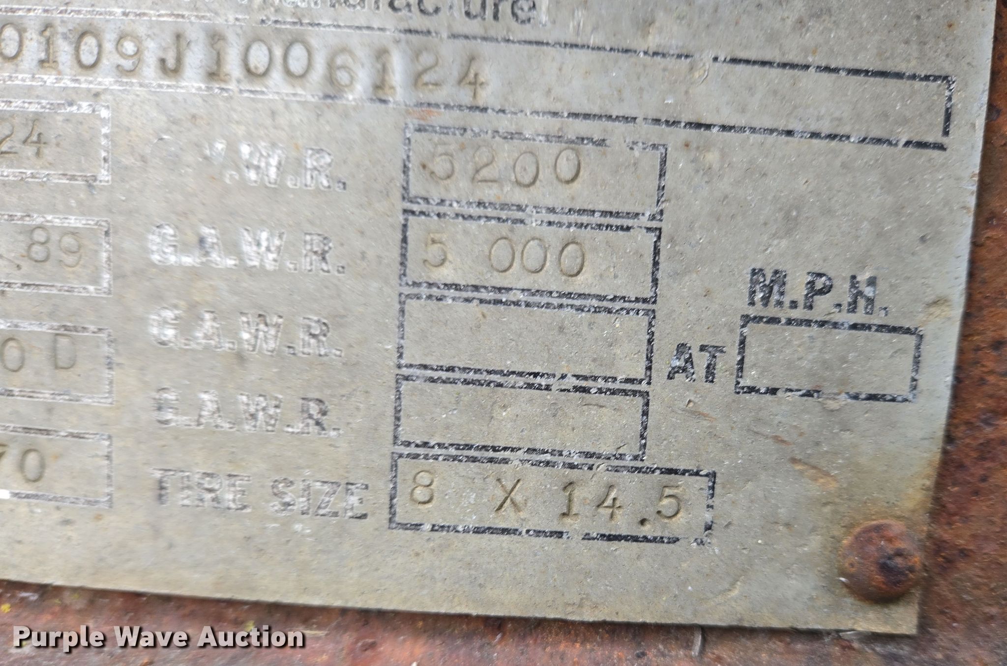 1989 Butler TS 610D utility trailer. VIN: 1BUD10109J1006124, Unit #: 89863. Dimensions Overall: 15' 3" L x 7' 6" W, Deck: 10' x 5' 5" W. Features Deck type: Steel. Chassis Landing gear: Single, Suspension: Spring, GAWR: 5,000 lbs. Tires Steel wheels, Size: 8-14.5. Indiana title. Title distribution may be delayed up to 30 days from verification of funds. Brightspeed. Columbia City, IN 46725