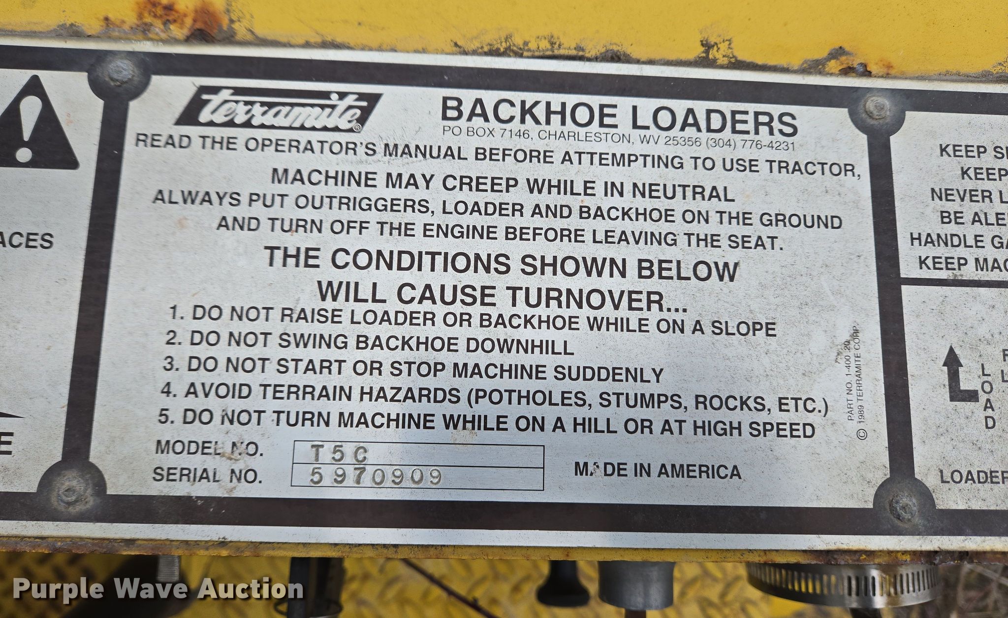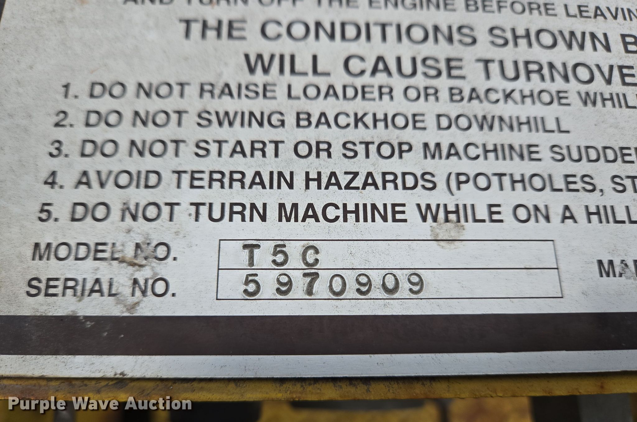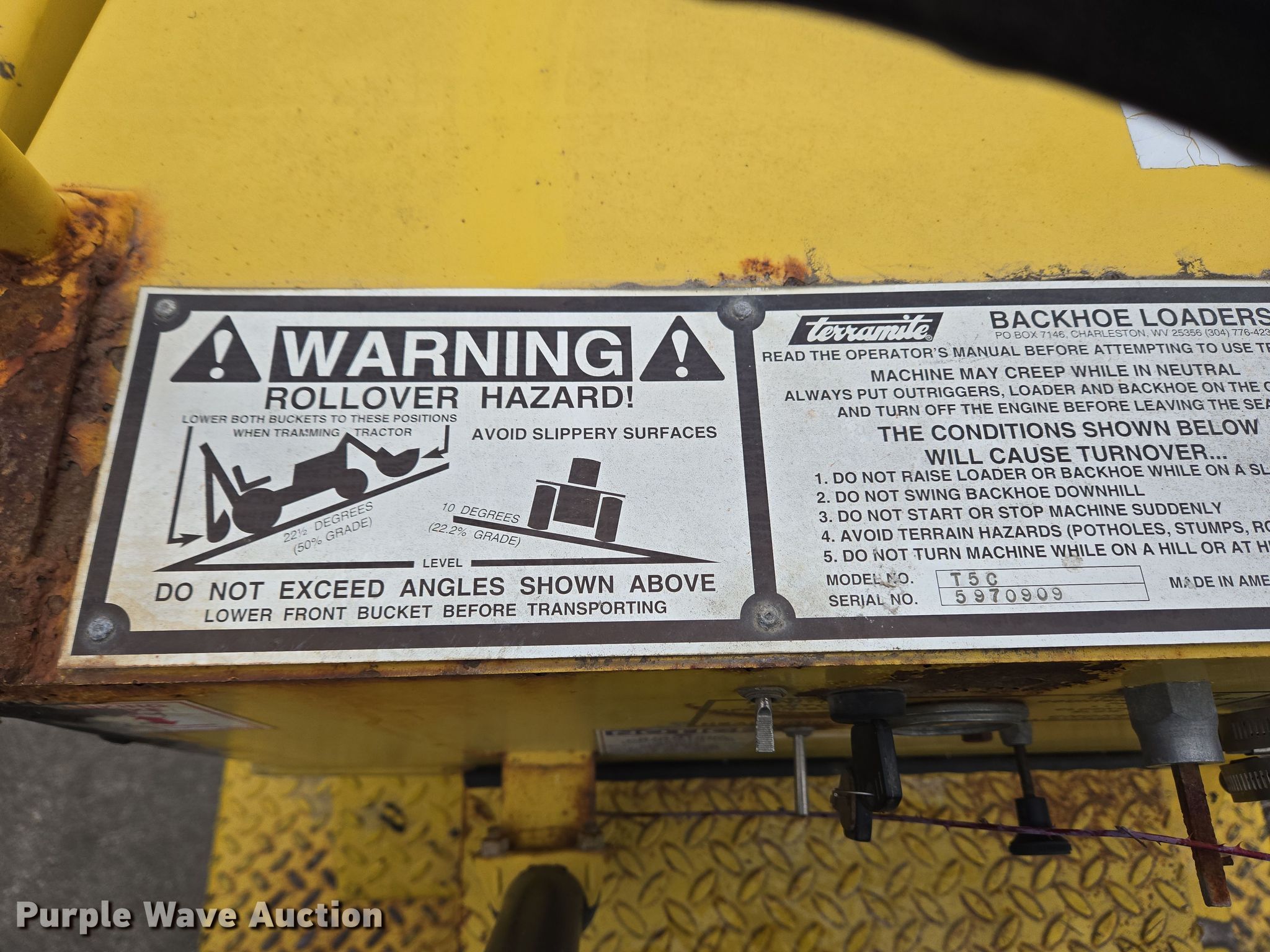 Purple Wave is selling a used Tractor Loader Backhoe in Indiana. This item is a 1997 Terramite T5C backhoe with the following: Hours: 976 on meter, Serial: 5970909, Unit #: 97002