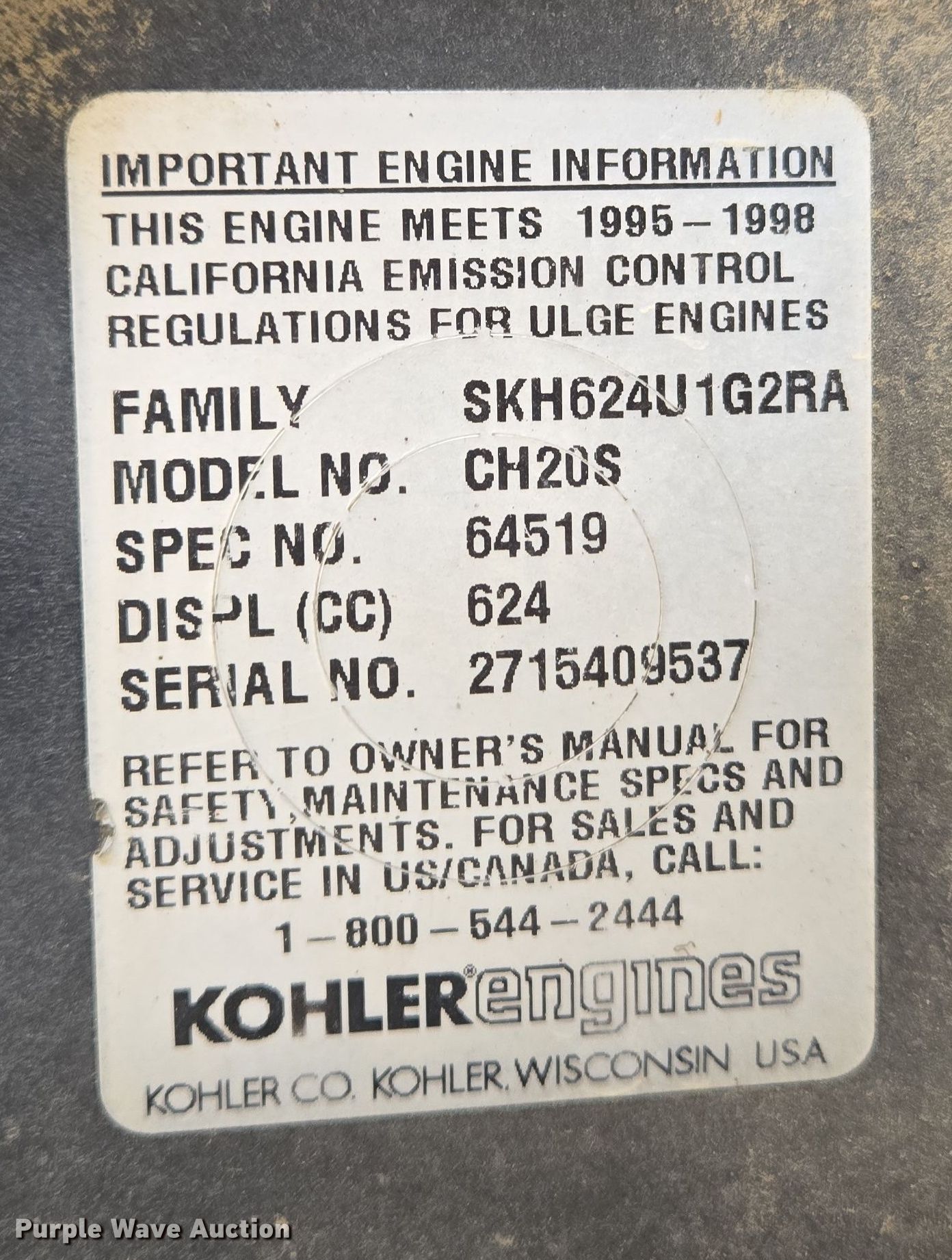 - Kohler CH20S