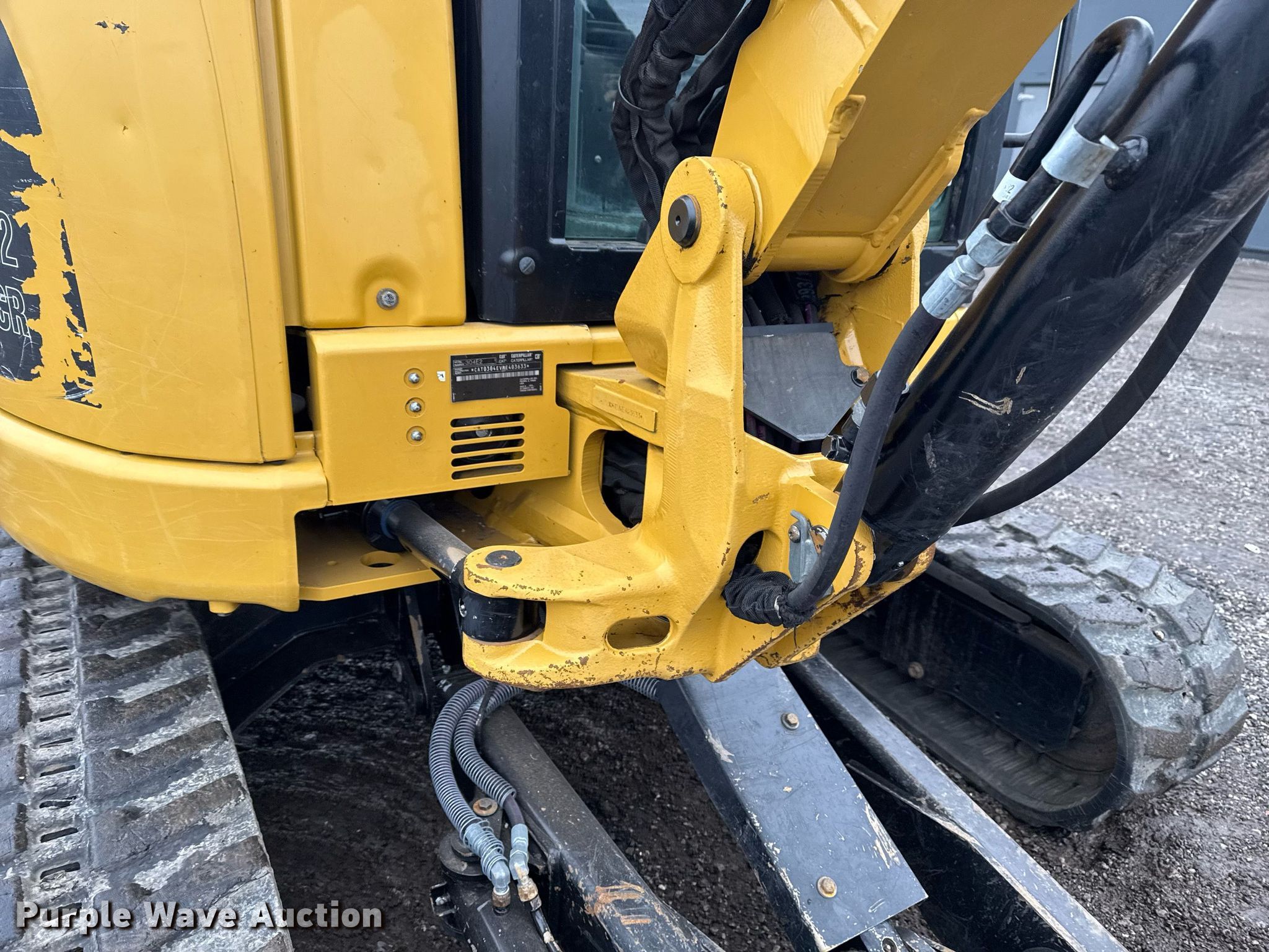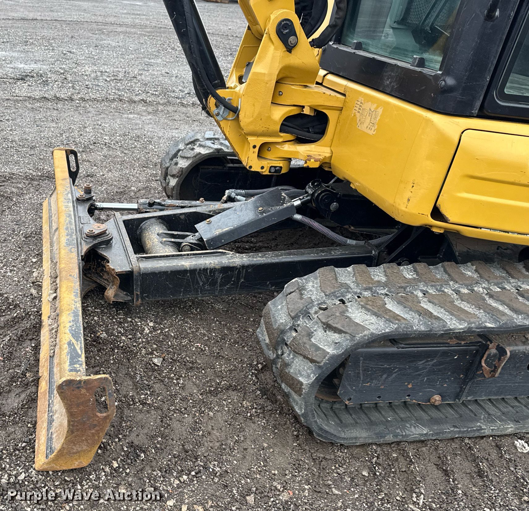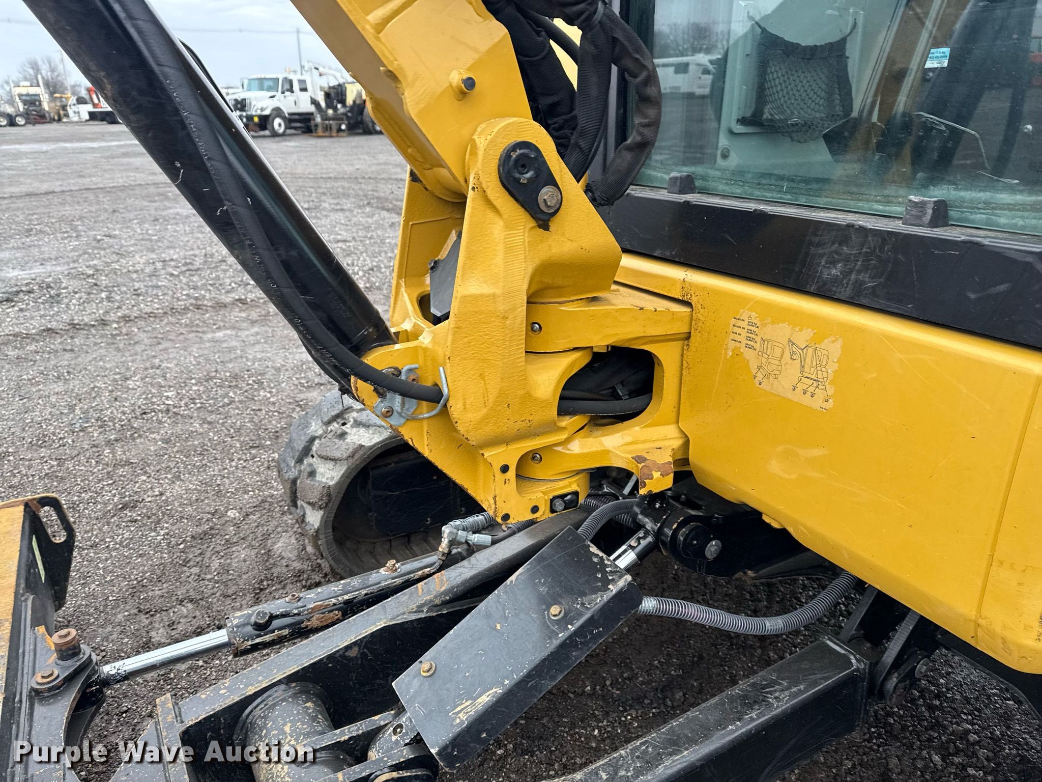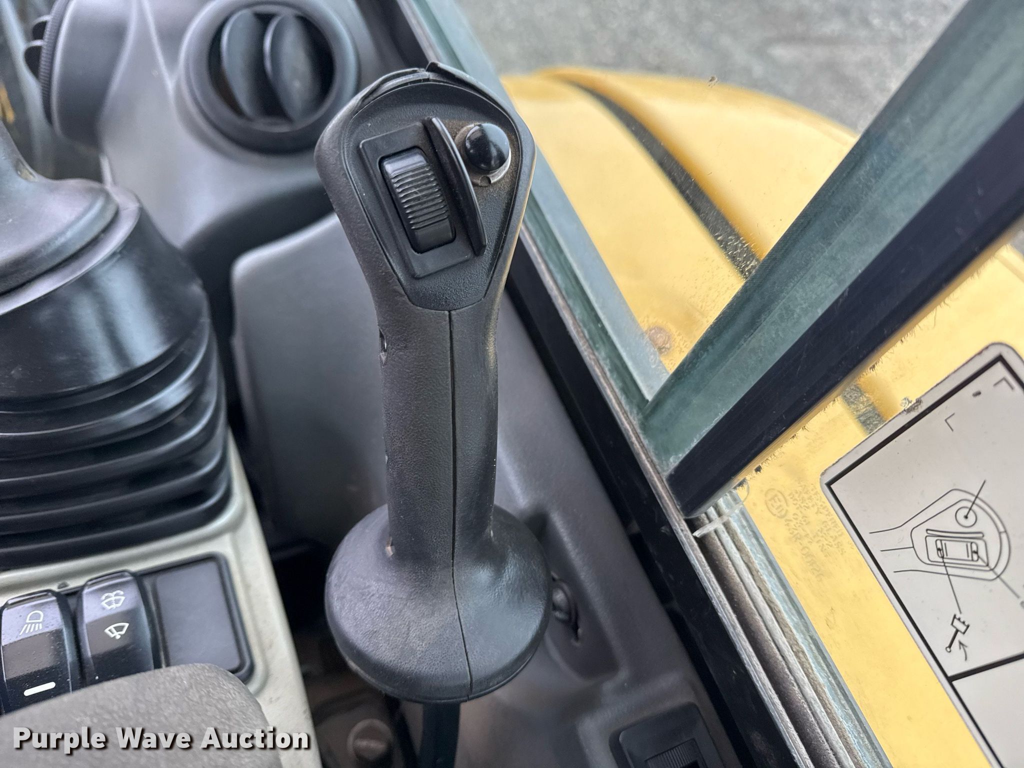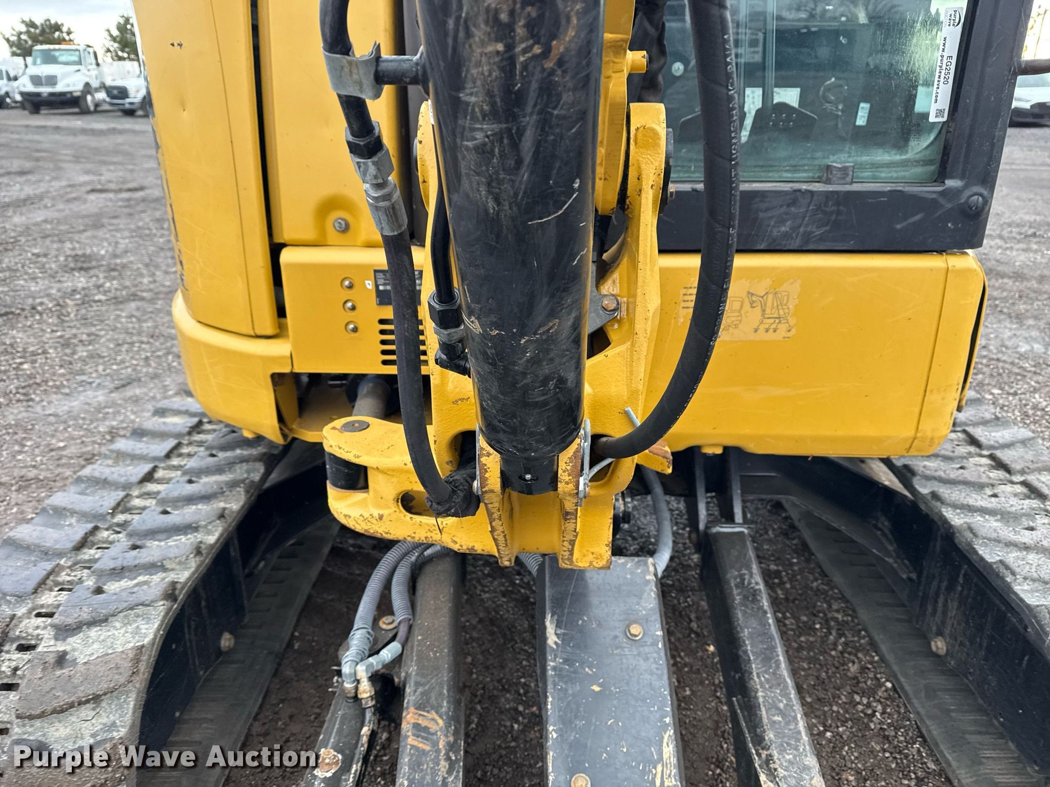 2018 Caterpillar 304E2 CR mini excavator. Hours: 3,123 on meter, Serial: CAT0304EVME403633. Engine Caterpillar, Cylinders: 4, Fuel type: Diesel. Transmission Hydrostatic, Two speed travel. Operators station Enclosed cab, AC, Heat, Backup camera, Pattern changer. Features Auxiliary hydraulics, Backfill blade Width: 77", Boom Swing, Stick Stick length: 65", Quick coupler: Mechanical, Bucket Caterpillar, Width: 17", Teeth: 4. Tracks Width: 14", Rubber. Notes Front glass missing. Collinsville, OK 74021
