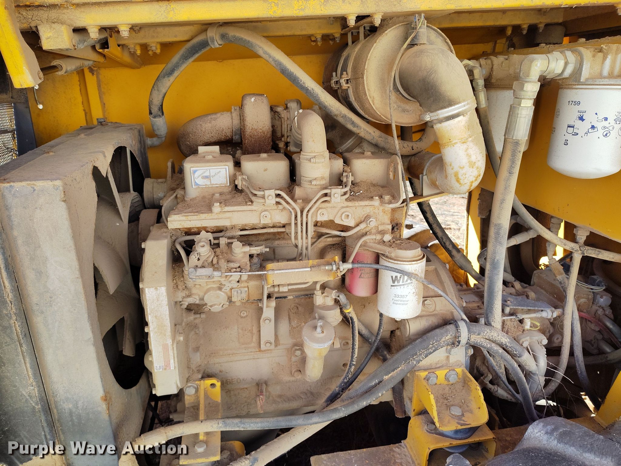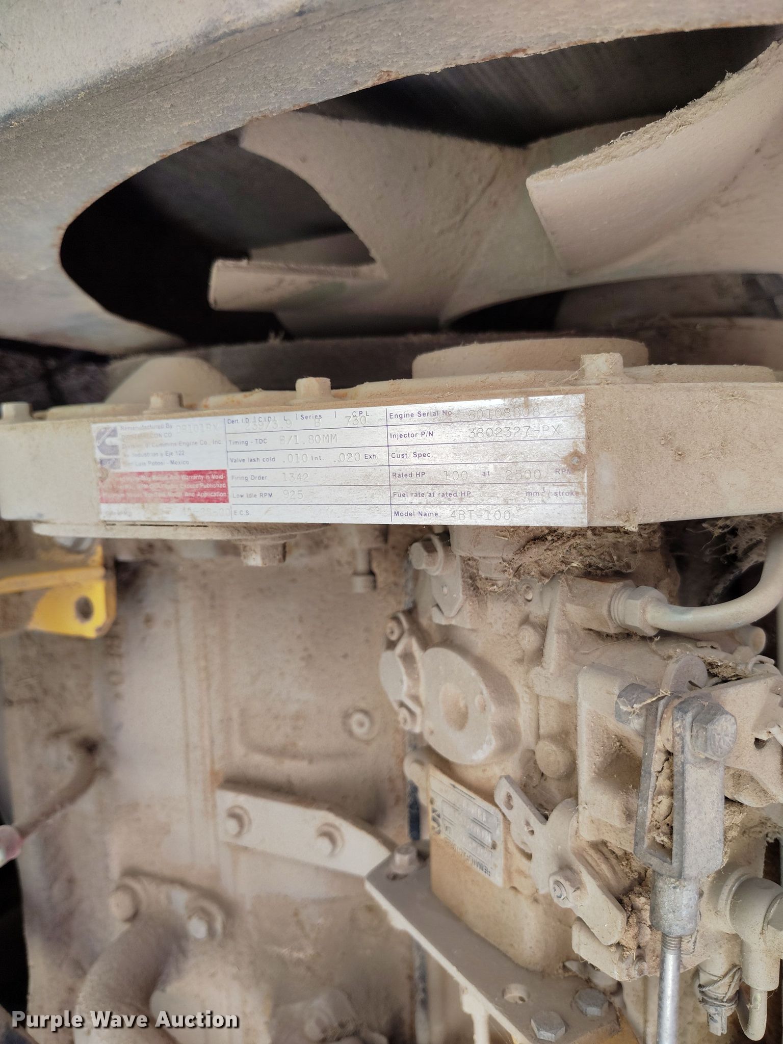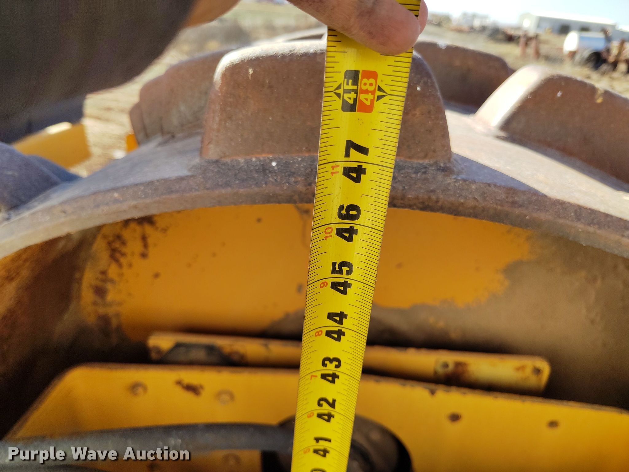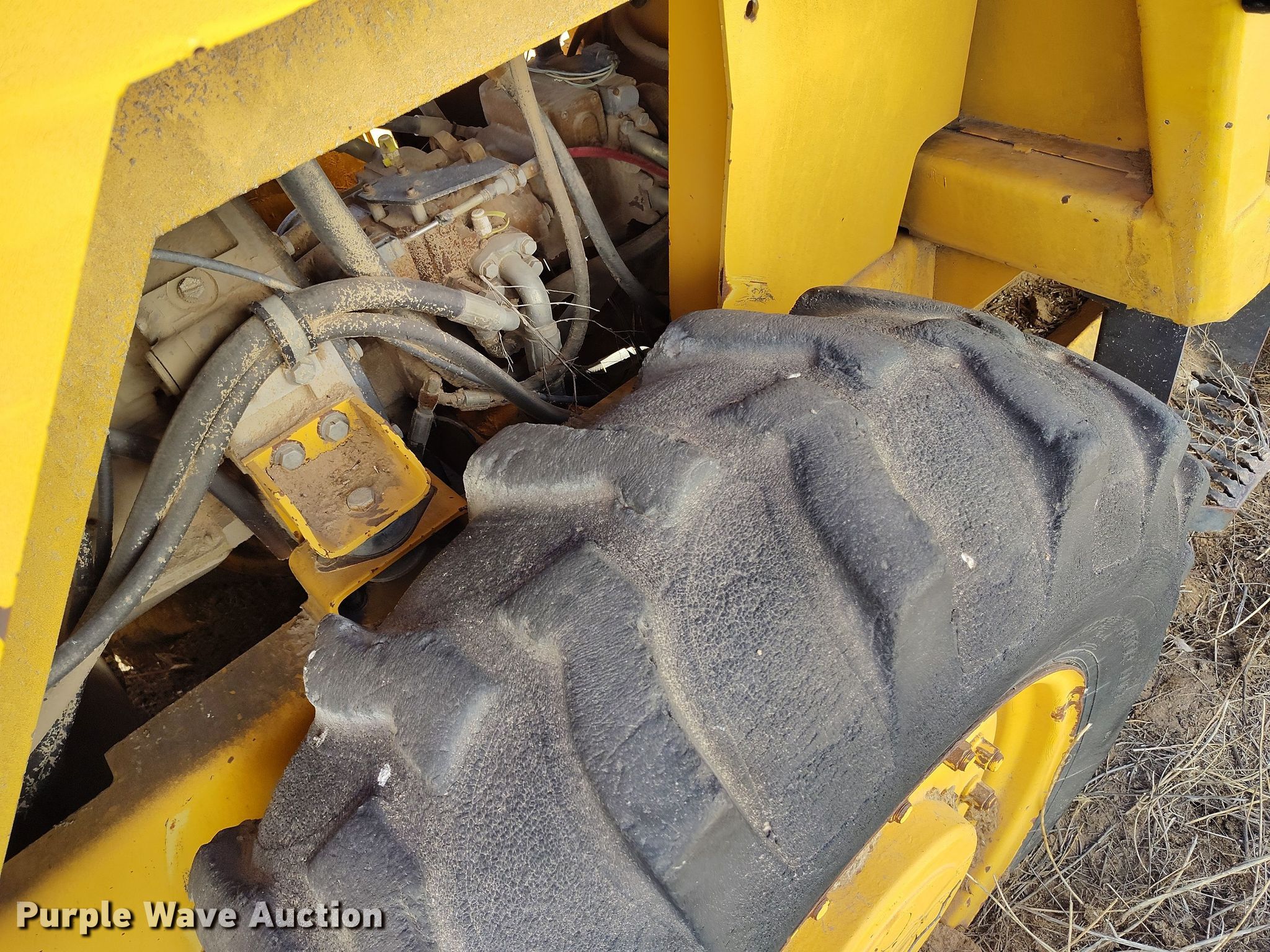 Dynapac CA15 II PD single drum vibratory roller. Hours: 1,850 on meter, Serial: 598018. Engine Cummins, Displacement: 3.9L, Cylinders: 4, Fuel type: Diesel. Transmission Hydrostatic. Features Drum: Padfoot, Vibratory system: Single, Front drum Width: 65", Diameter: 47", Drum scrapers: Front. Tires Size: 14.9/13-24. Notes Dead battery, Parts may be missing, Flat tires, Unknown operating condition. Reinert Hay Company. Hereford, TX 79045