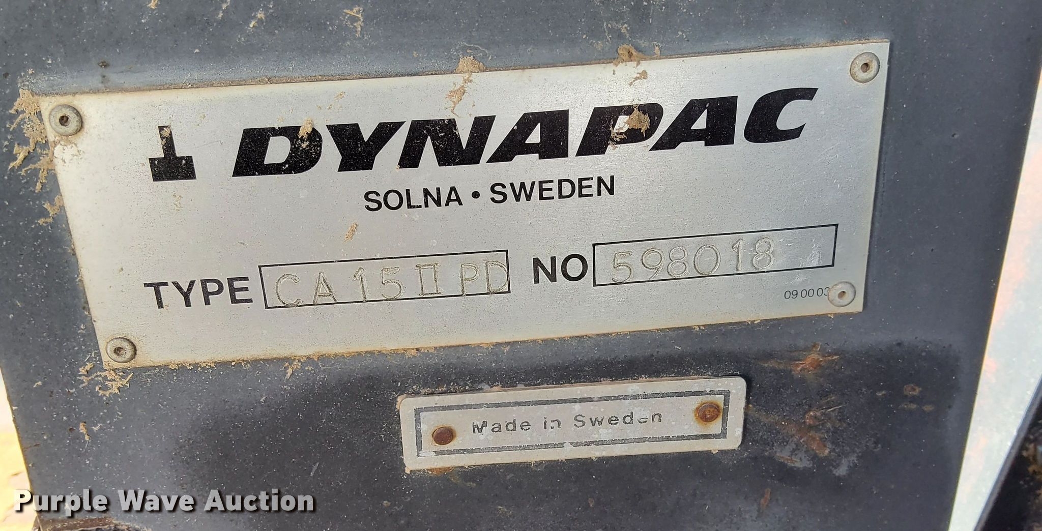 Purple Wave is selling a used Single Drum Roller Compactor in Texas. This item is a Dynapac CA15 II PD single drum vibratory roller with the following: Hours: 1,850 on meter, Serial: 598018