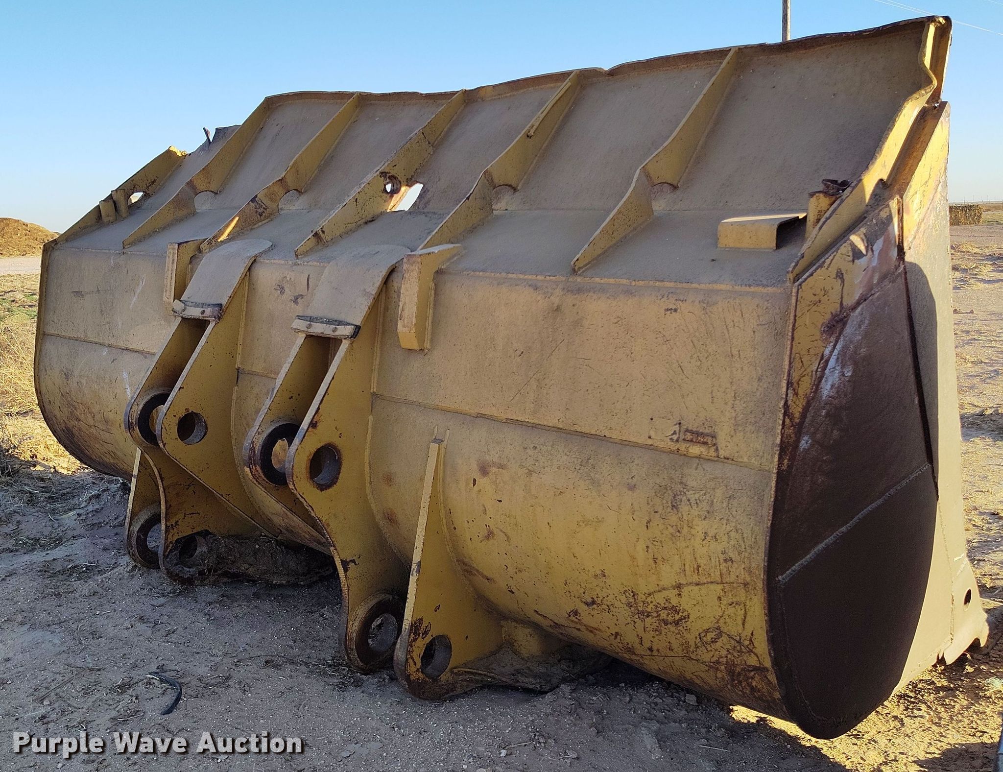 Purple Wave is selling a used Bucket or Loader Attach. in Texas. This item is a 140" W wheel loader bucket with the following: Cutting edge: Bolt-on