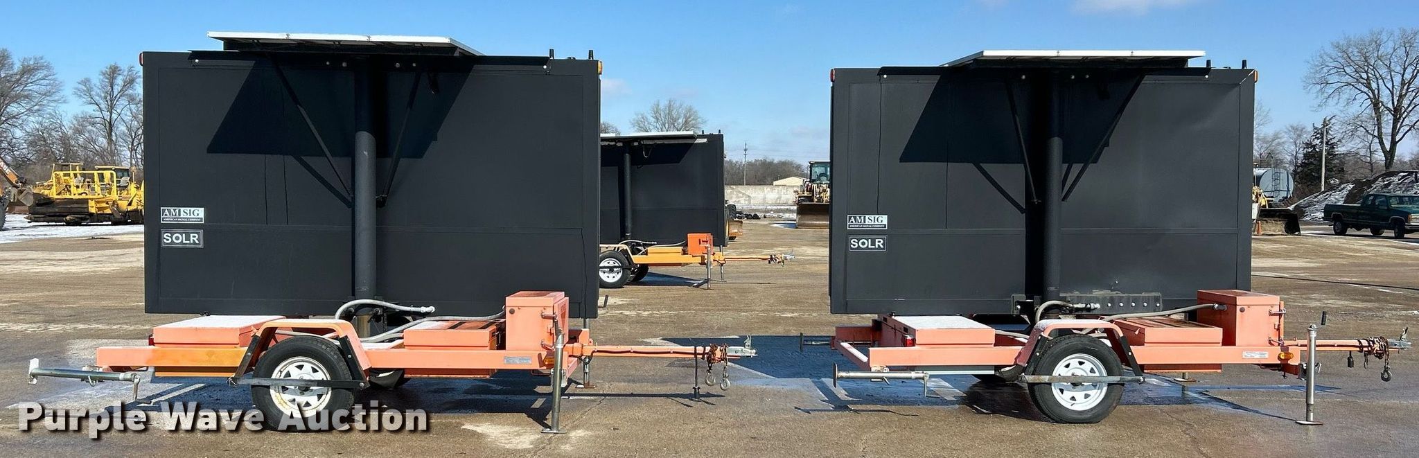 Purple Wave is selling a used Road Safety Equip. in Illinois. This item is a (2) American Signal message board trailers with the following: Overall: 15' L x 80" W