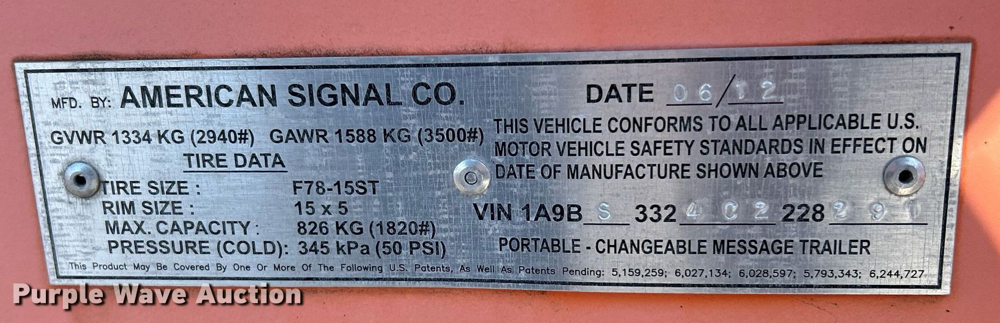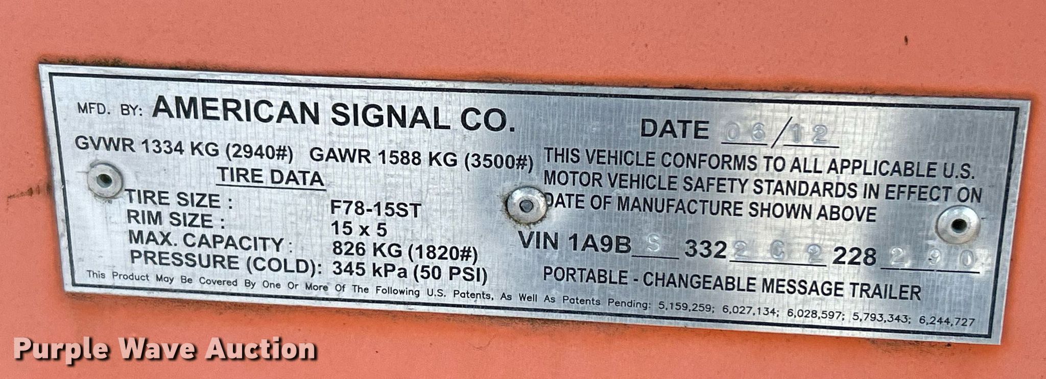 (2) American Signal message board trailers. Dimensions. Overall: 15' L x 80" W. Features Solar panels. Chassis Ball hitch: 2", Landing gear: Dual, Suspension: Spring, Brakes: Electric, GVWR: 3,500 lbs, GAWR: 2,940 lbs. Tires Steel wheels, Size: 205/75R15. Howell Paving. Matoon, IL 61938