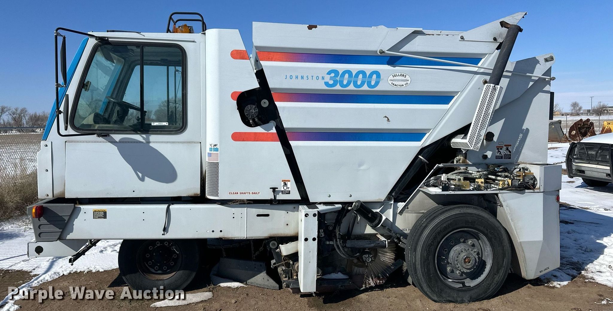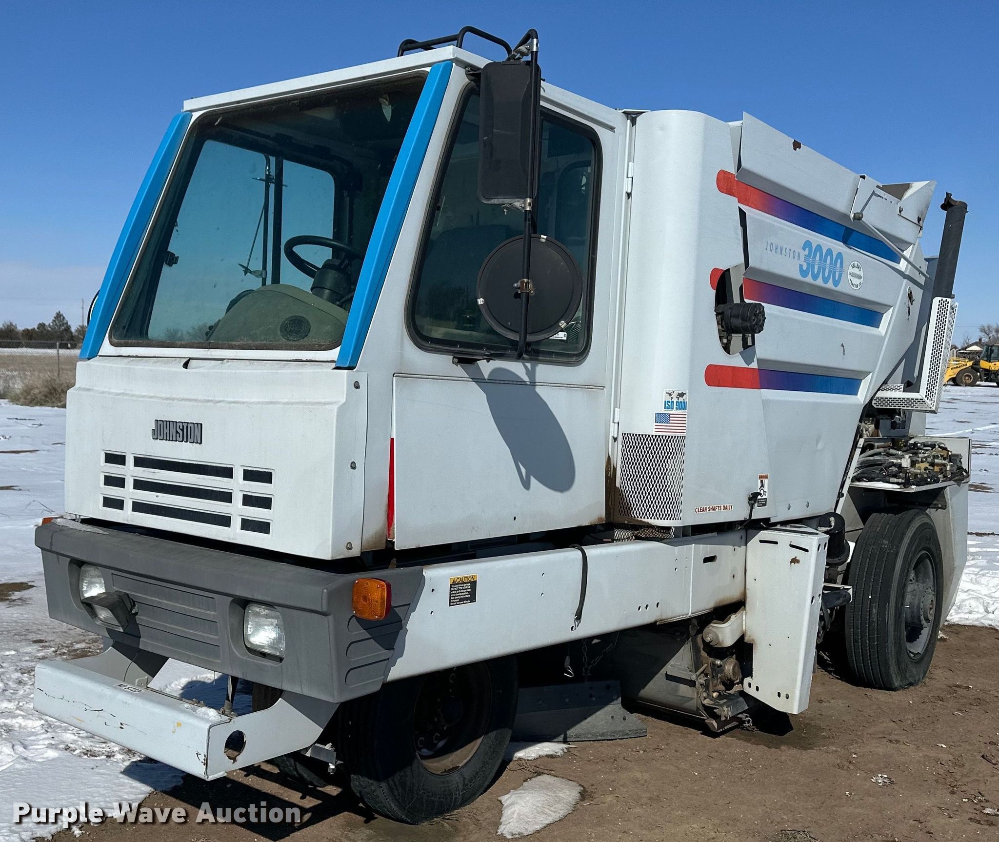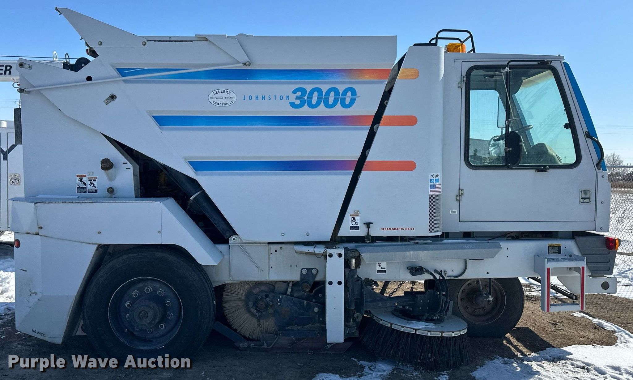 Purple Wave is selling a used Sweeper in Kansas. This item is a 2002 Johnston 3000 street sweeper with the following: Miles: 8,723 on odometer, Hours: 2,695 on meter, VIN: 1J9VM3H672C172018