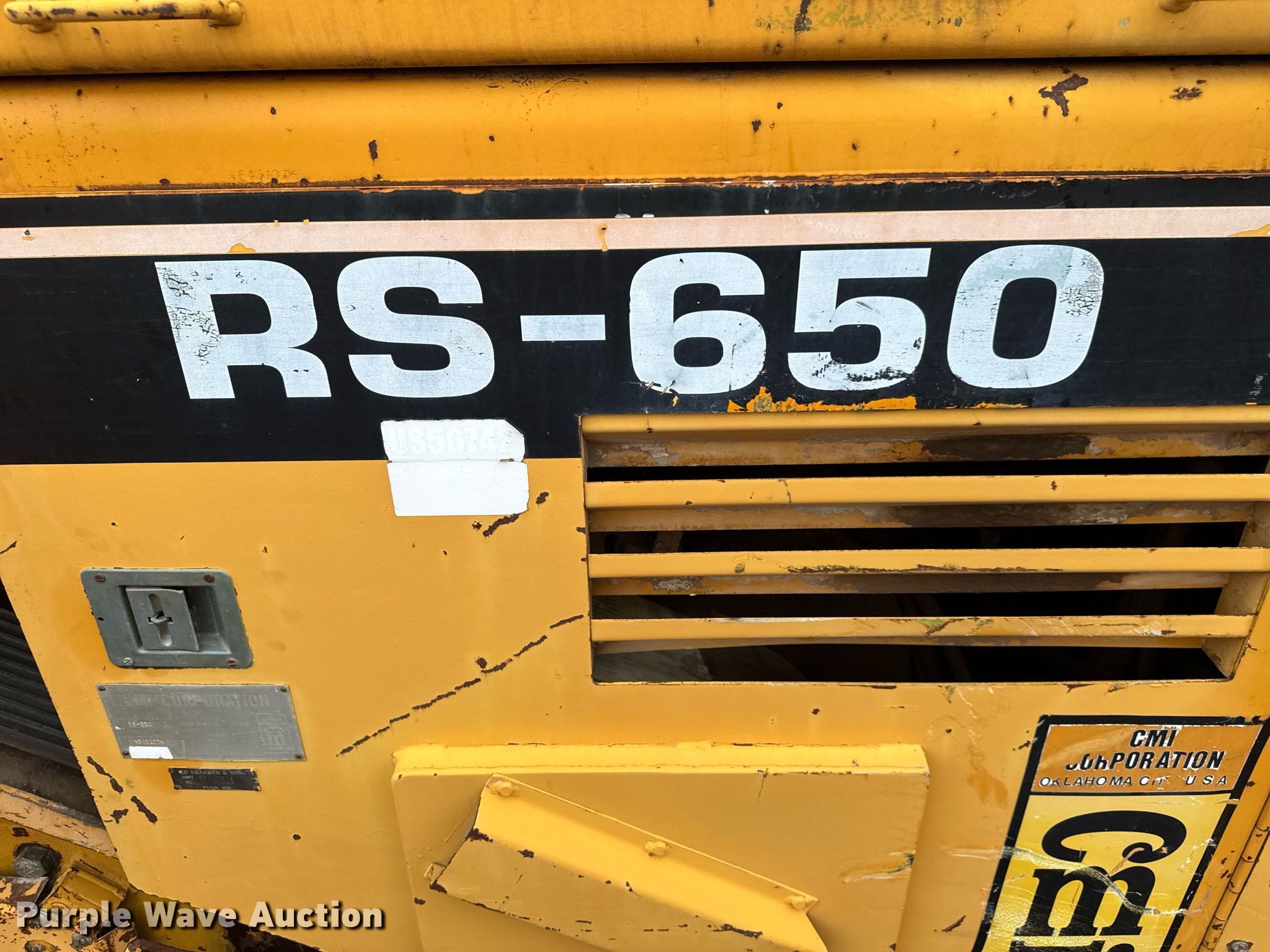 1995 CMI RS-650 soil stabilizer / reclaimer. Hours: Unknown, Serial: 543107. Engine Cylinders: 8, Fuel type: Diesel. Transmission Hydrostatic. Features Cutting head Width: 100". Tires Size: 750/65R25. Notes Parts only, Tire removed but included, Dead battery, Engine issues, Non-operational unit. Buyer responsible for all aspects of removal. Freeman Paving LLC. Wichita Falls, TX 76305